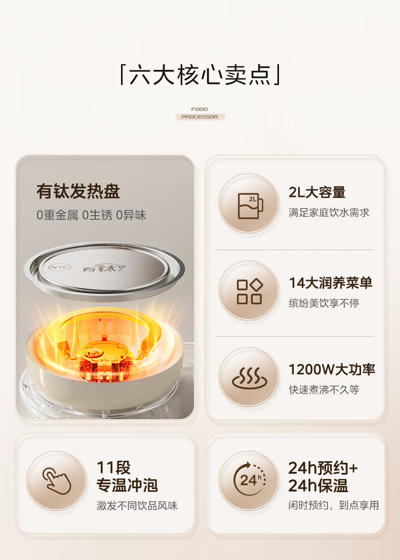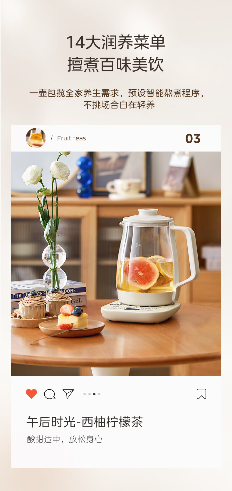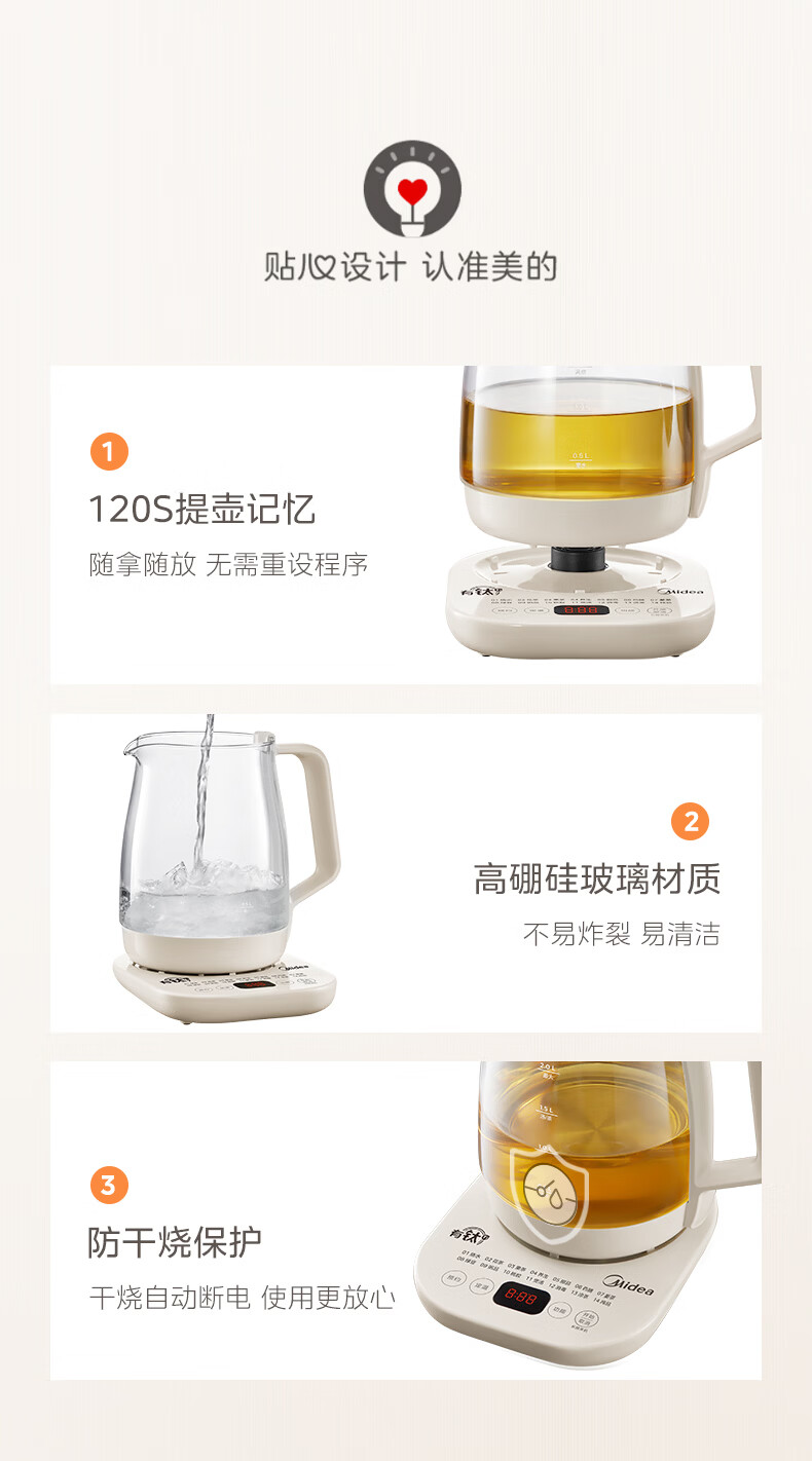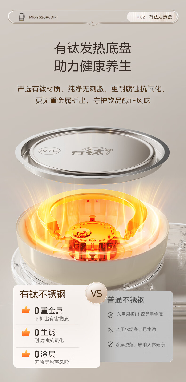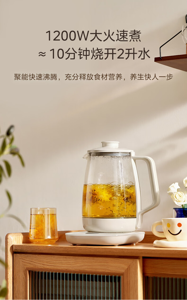 美的(Midea)养生壶2L大容量烧水壶含钛0涂层0胶水电热水壶自动断电保温一体恒温煮茶花茶壶 MK-YS20P601-T