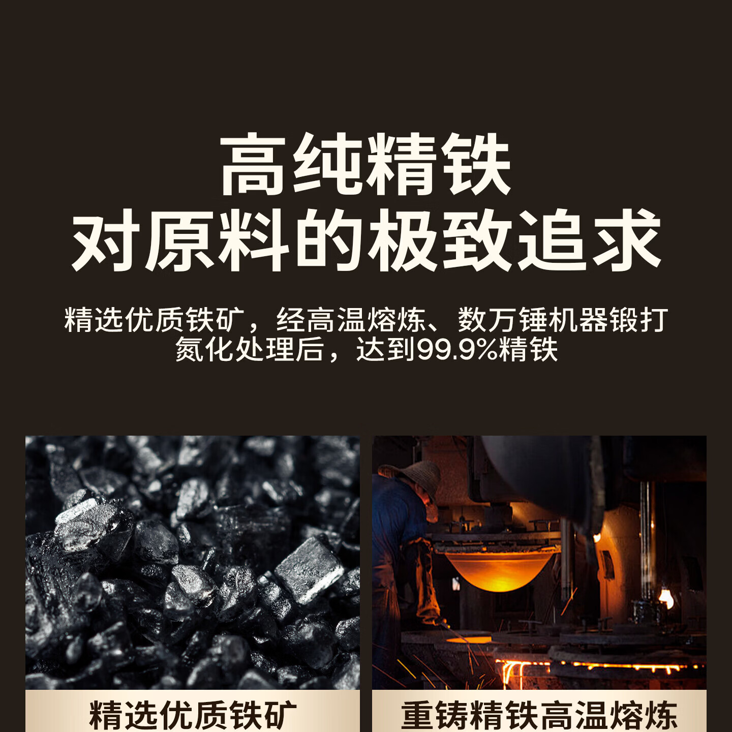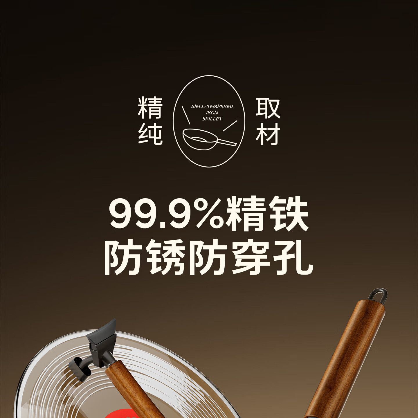 Lovefamily德国品牌精铁锤纹铁锅炒锅0涂层不粘锅免开锅 古法手工锻打传家锅 免开锅 传承版【圆底无耳】+玻璃盖 32cm