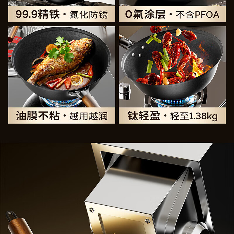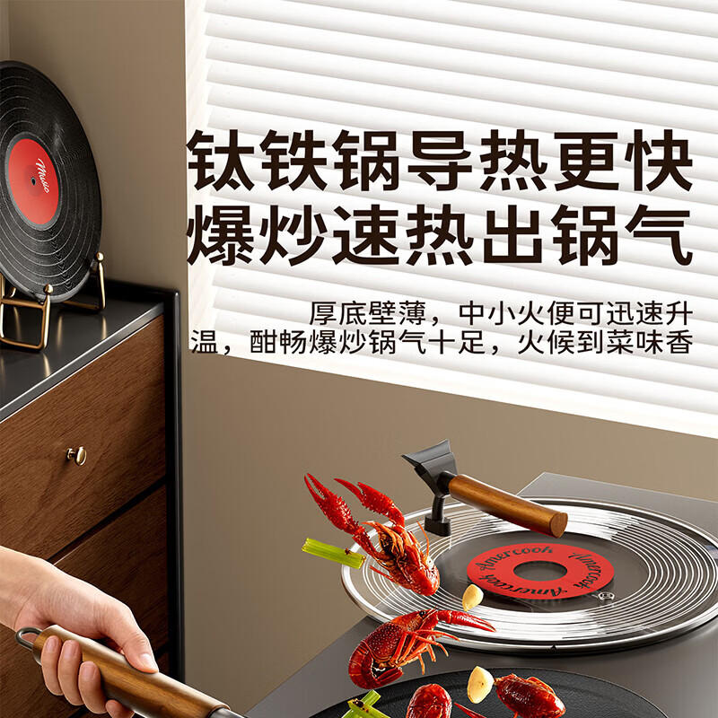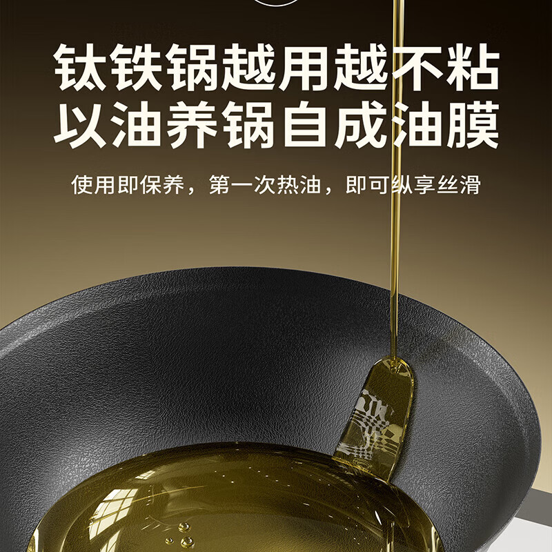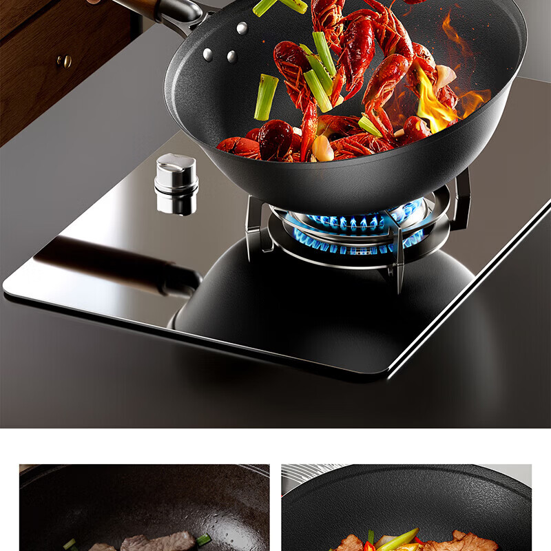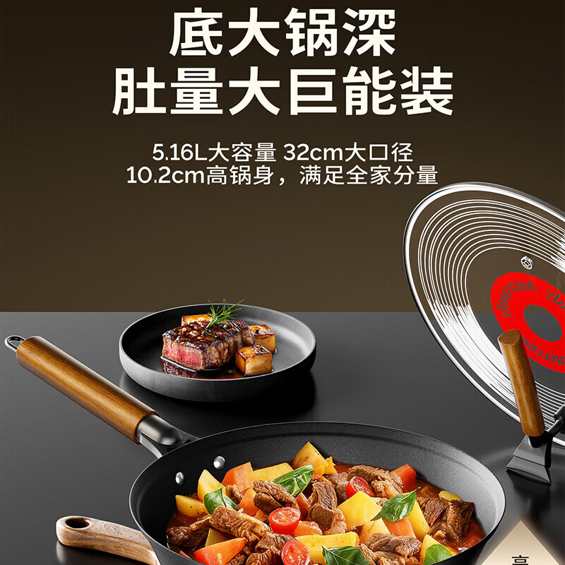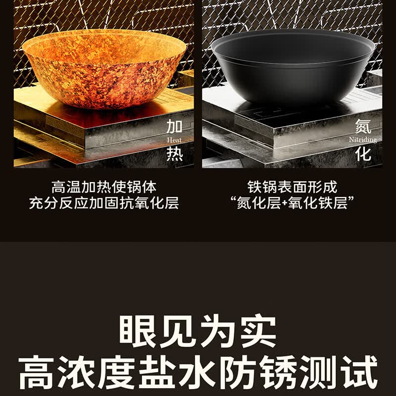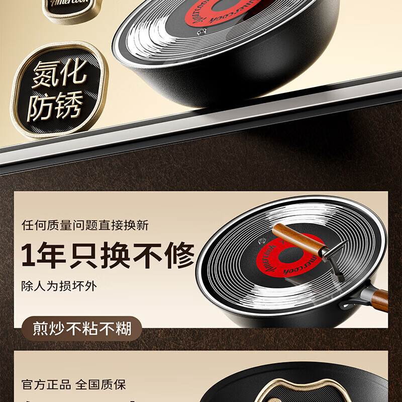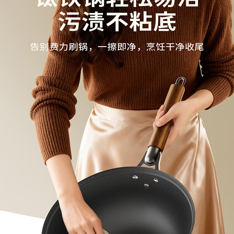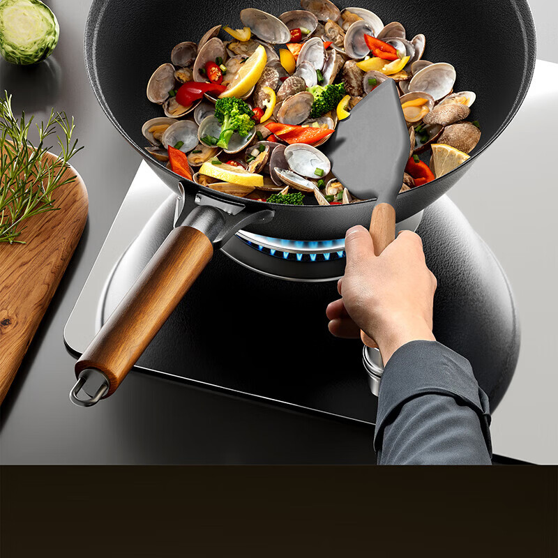 Amercook铁锅炒锅无涂层平底钛铁锅防锈爆炒不粘锅炒菜锅家用电磁炉燃气用