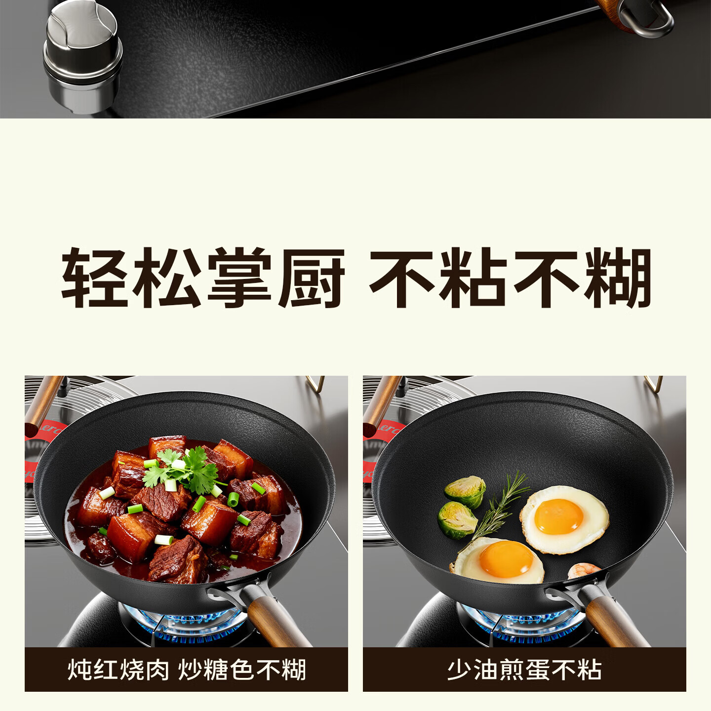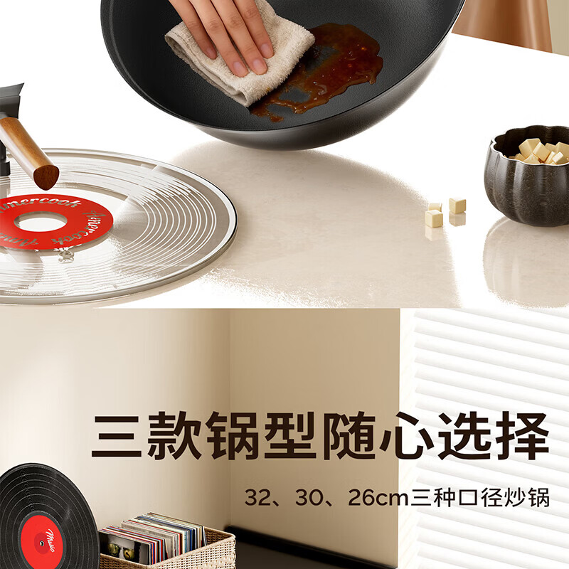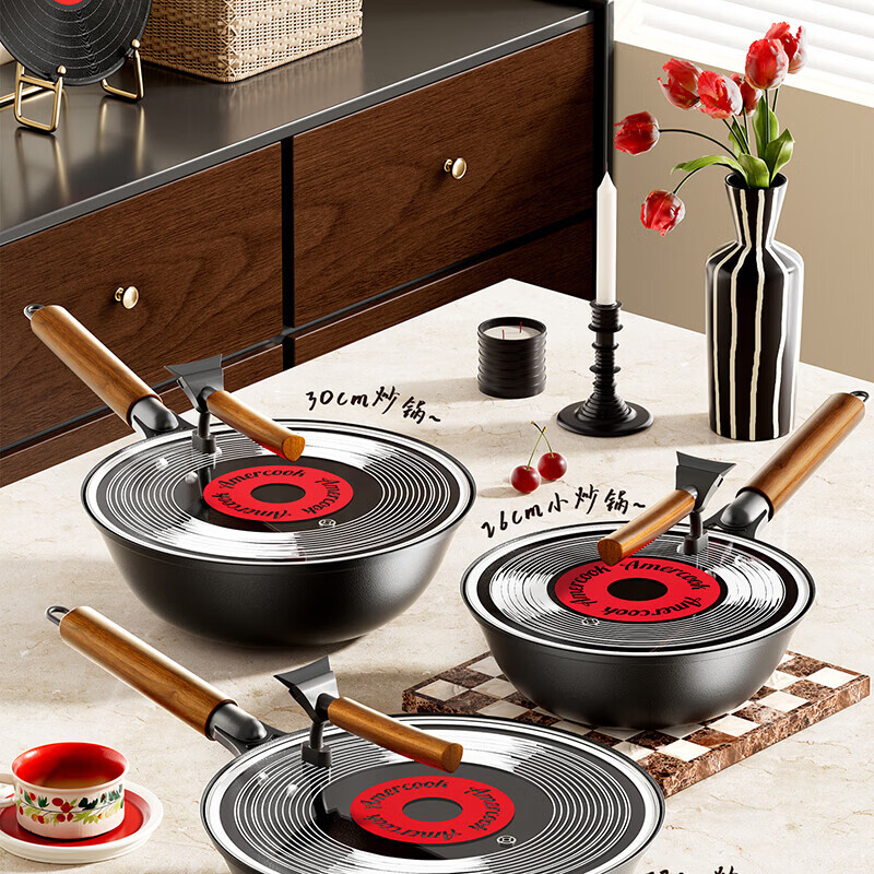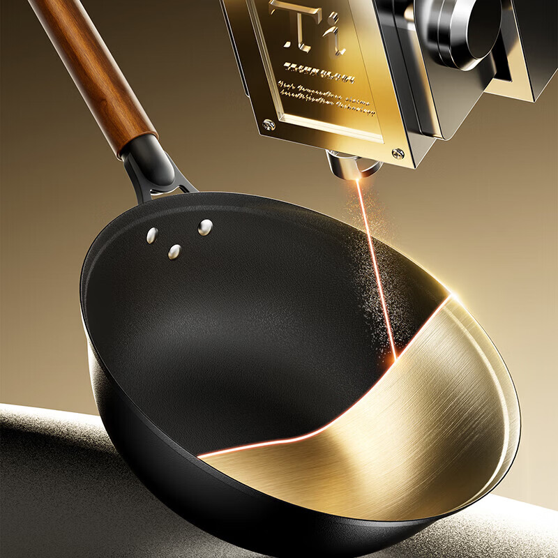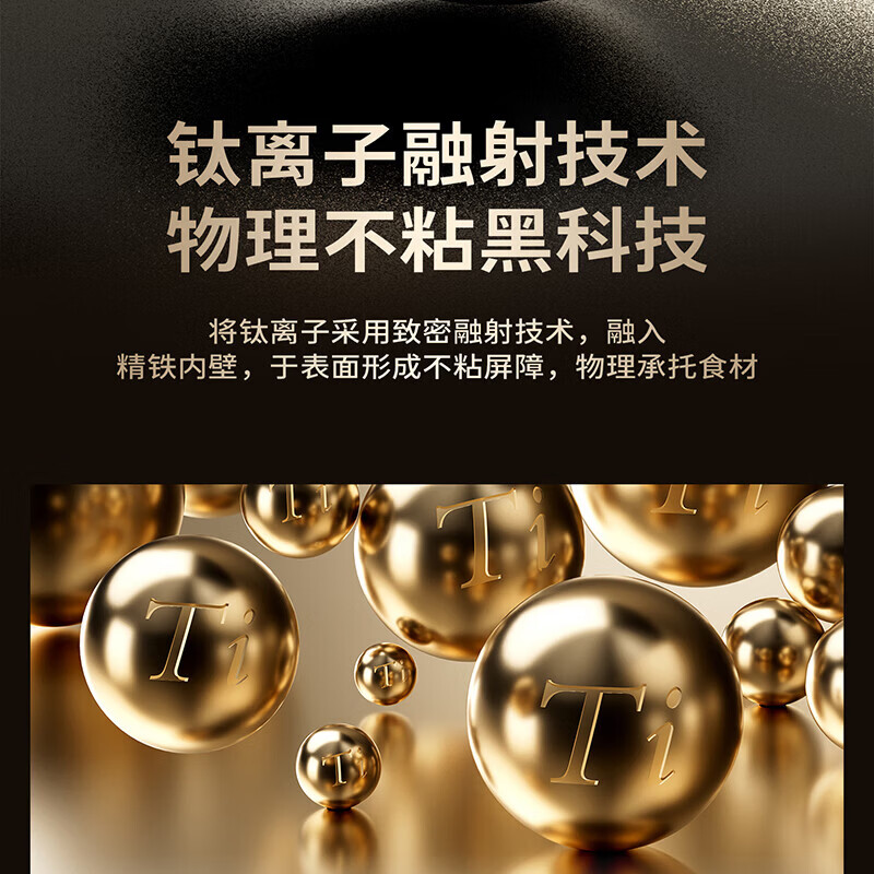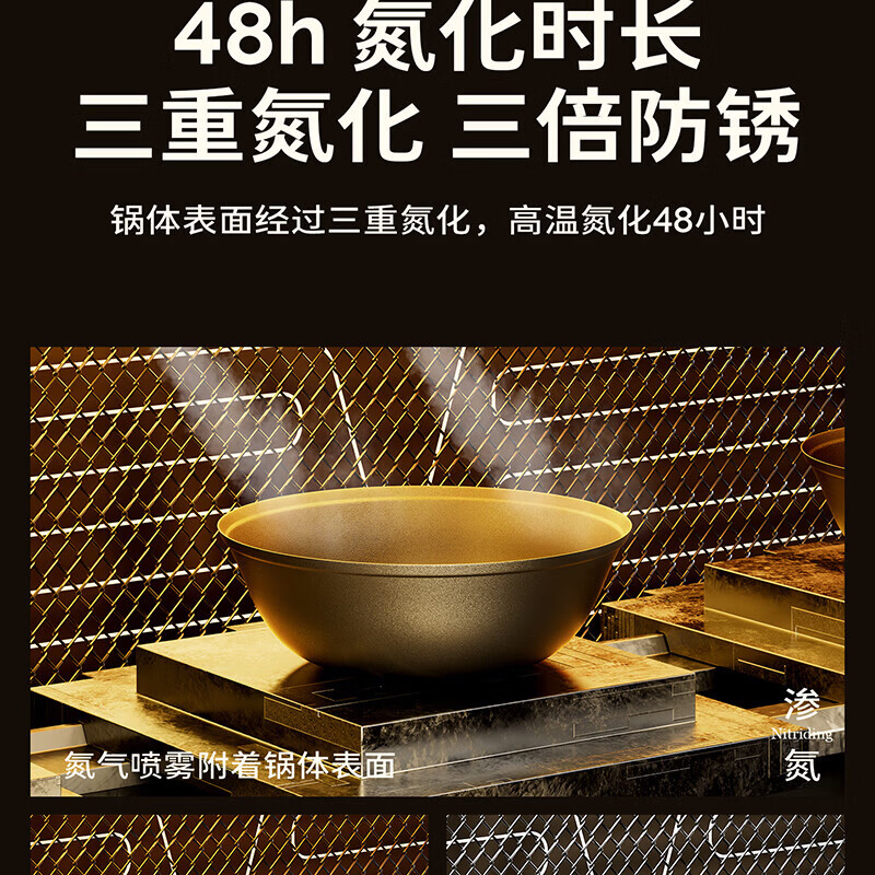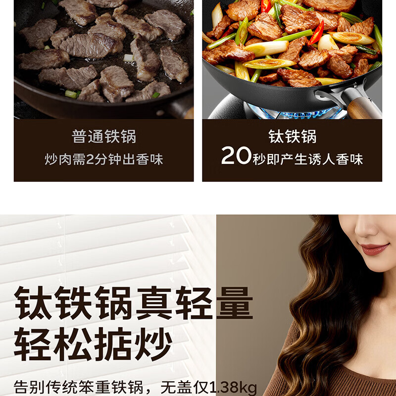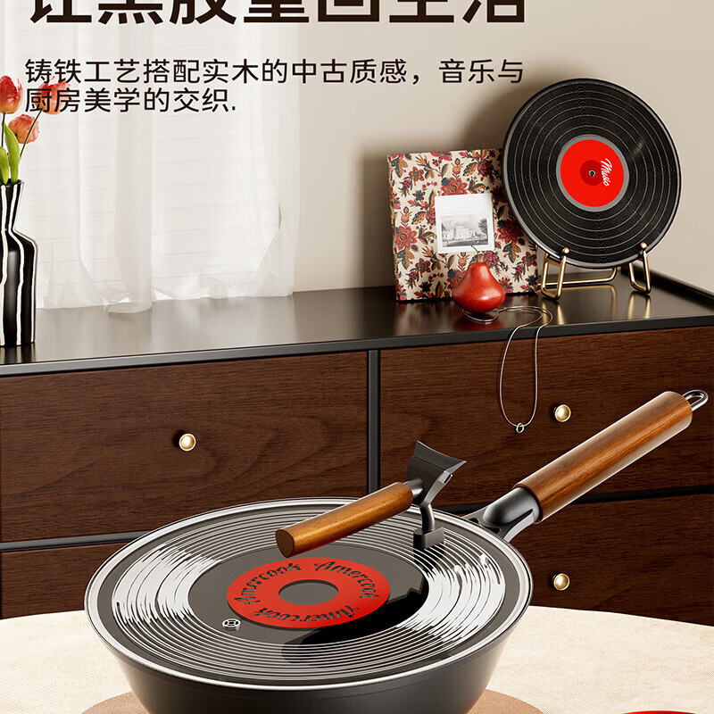 Amercook铁锅炒锅无涂层平底钛铁锅防锈爆炒不粘锅炒菜锅家用电磁炉燃气用