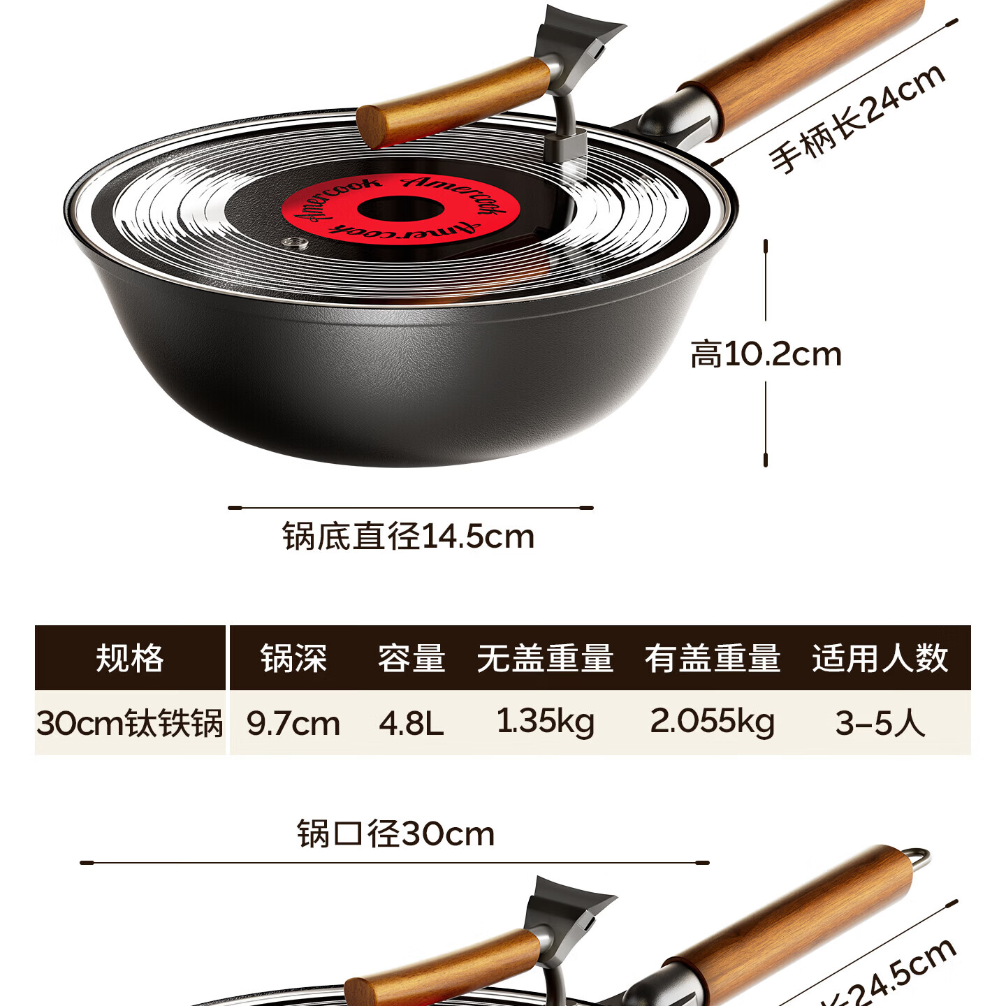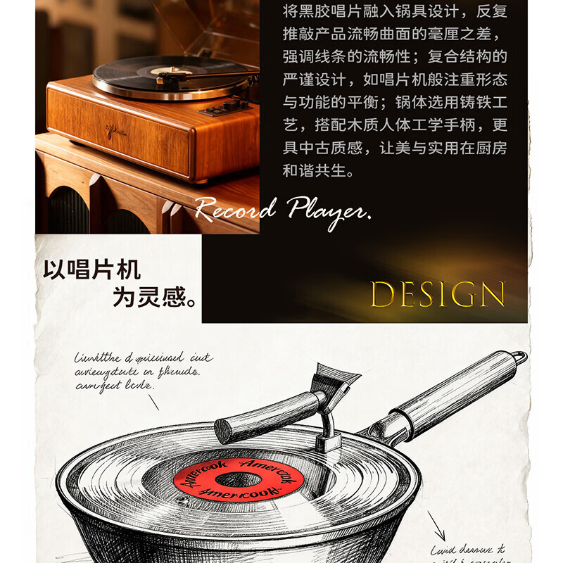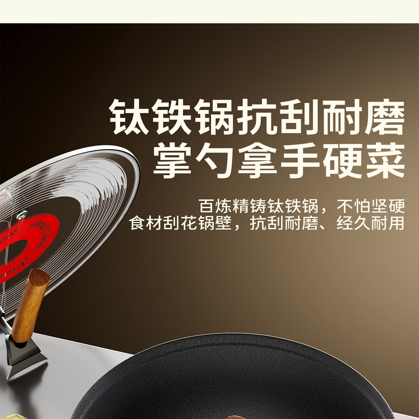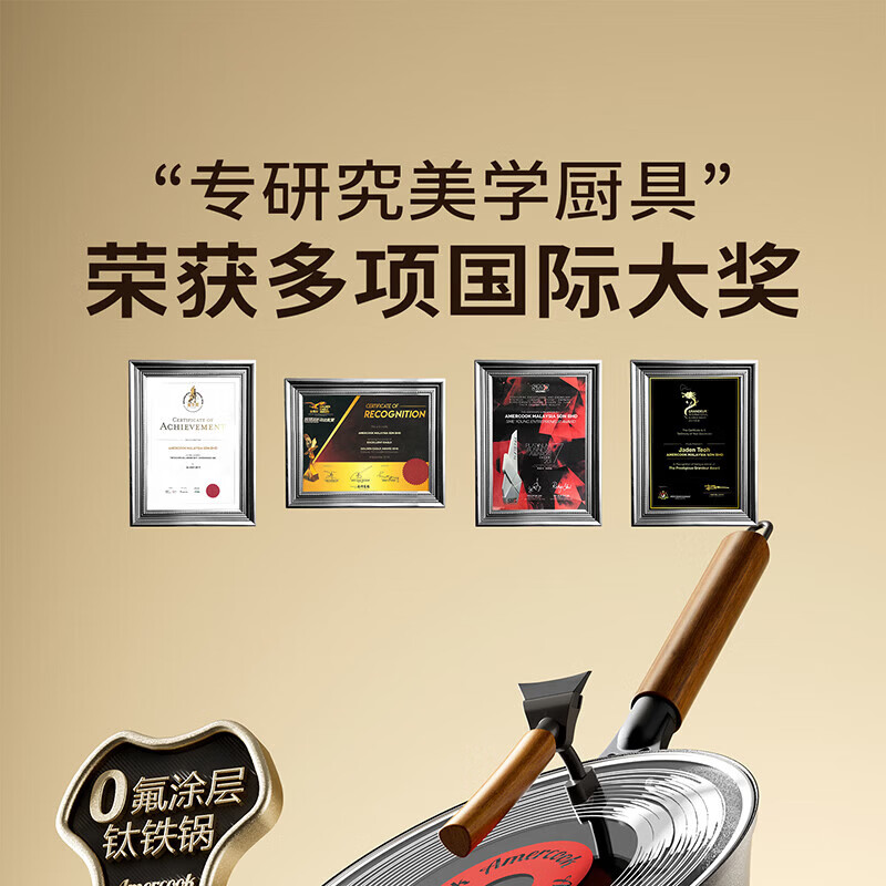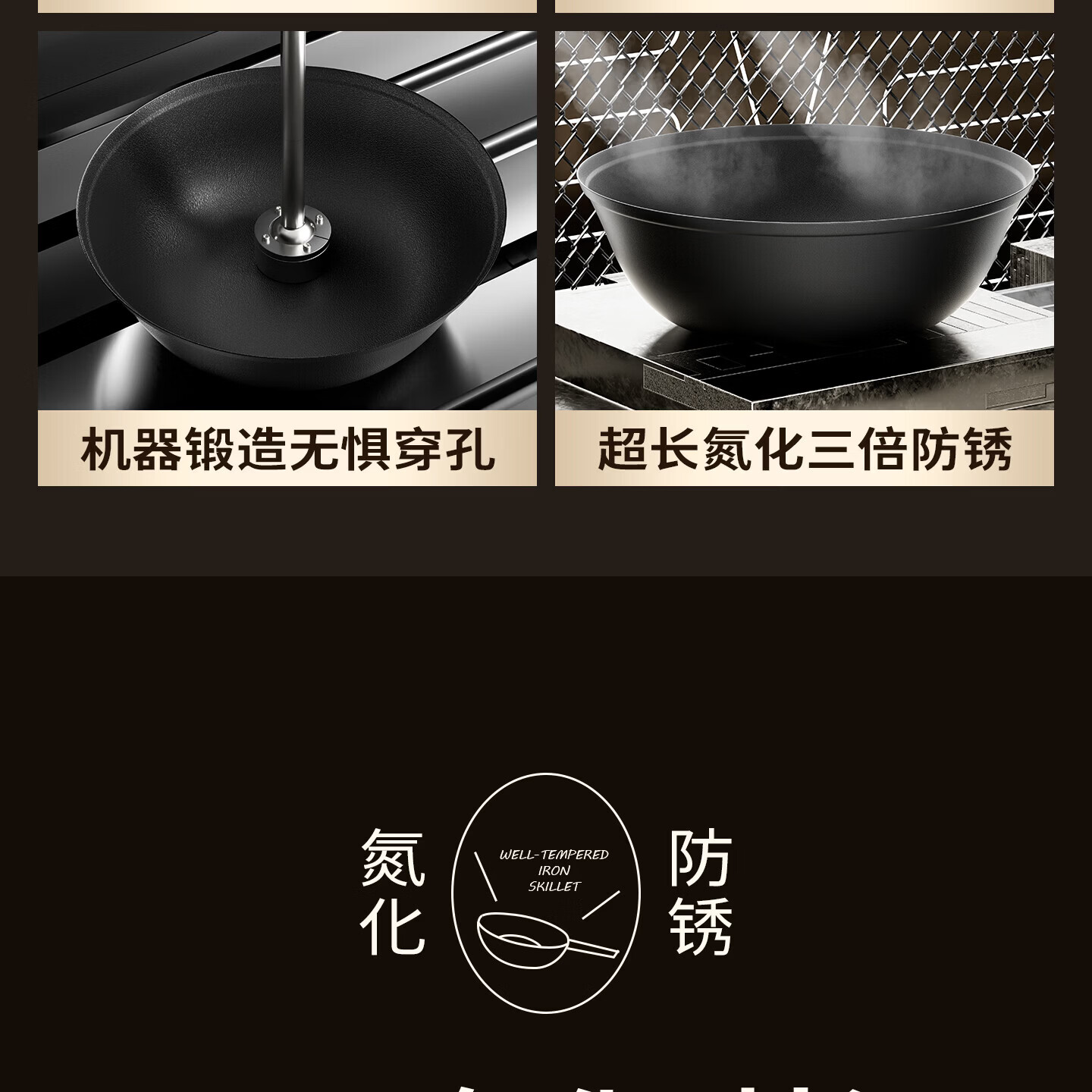 Amercook铁锅炒锅无涂层平底钛铁锅防锈爆炒不粘锅炒菜锅家用电磁炉燃气用