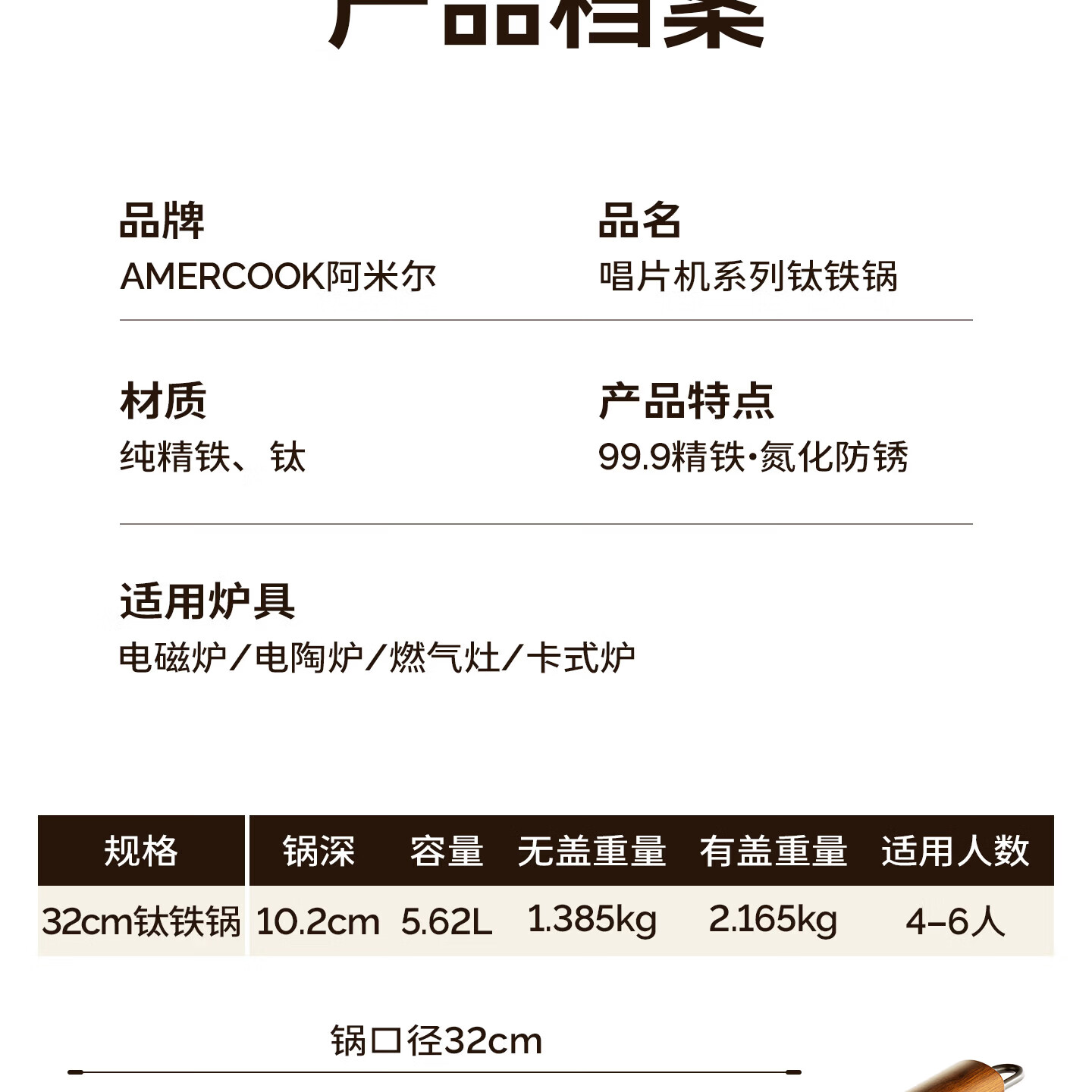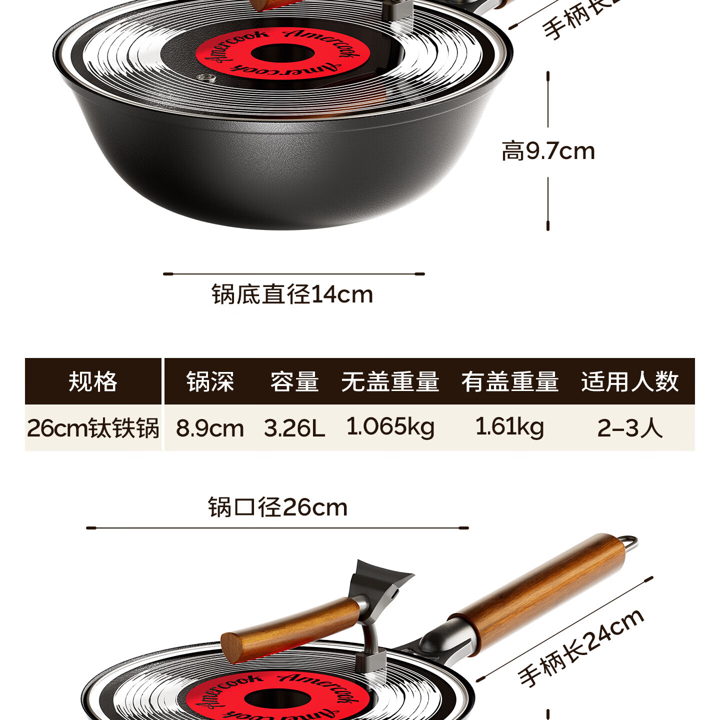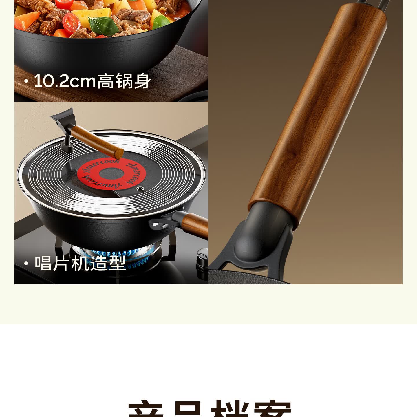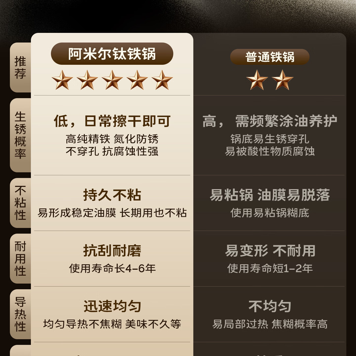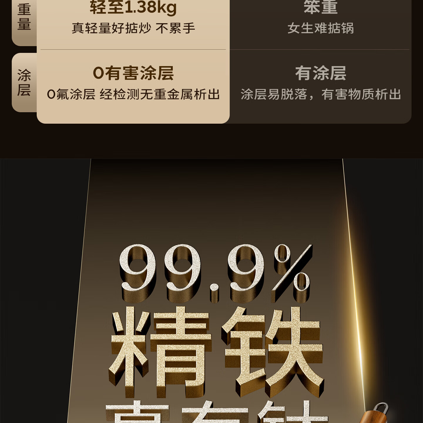 Amercook铁锅炒锅无涂层平底钛铁锅防锈爆炒不粘锅炒菜锅家用电磁炉燃气用
