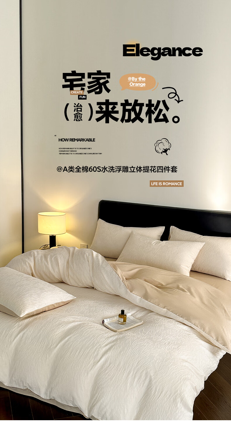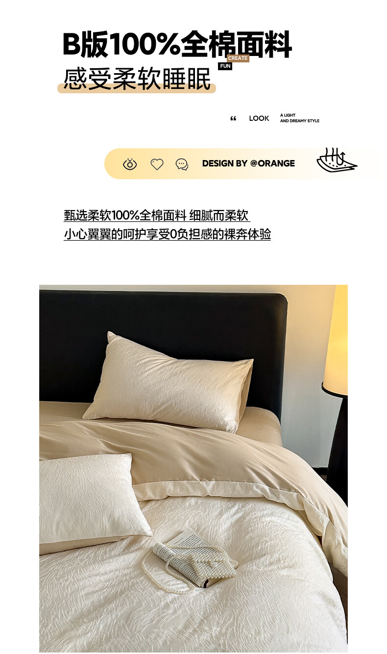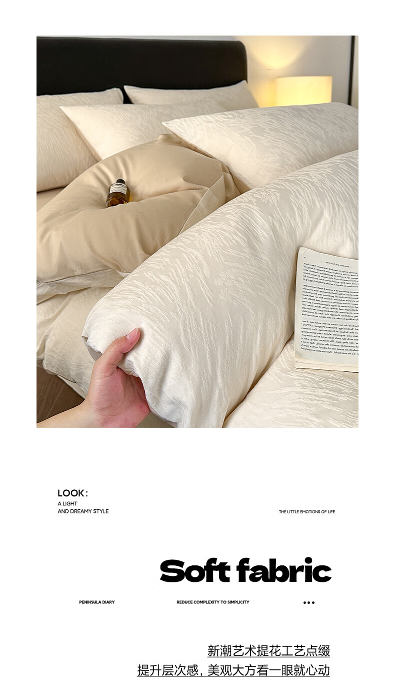 无印良品A类提花纯棉床上四件套高级轻奢2026新款床单被套四季通用可裸睡4 克拉拉-米【A类母婴 100%新疆棉全棉】 1.8m 床单款 四件套-被套200x230cm