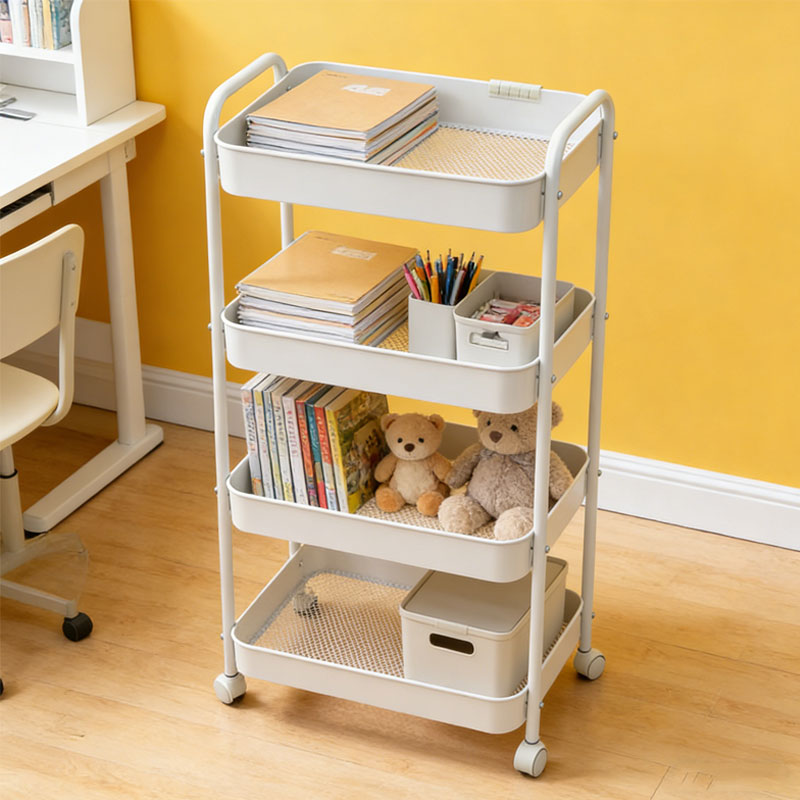 简友探可移动小推车家用收纳架家用多层落地厨房擦无置物架客厅零食收纳 碳钢小推车 3层 41*29.5*73cm 黑色 1个