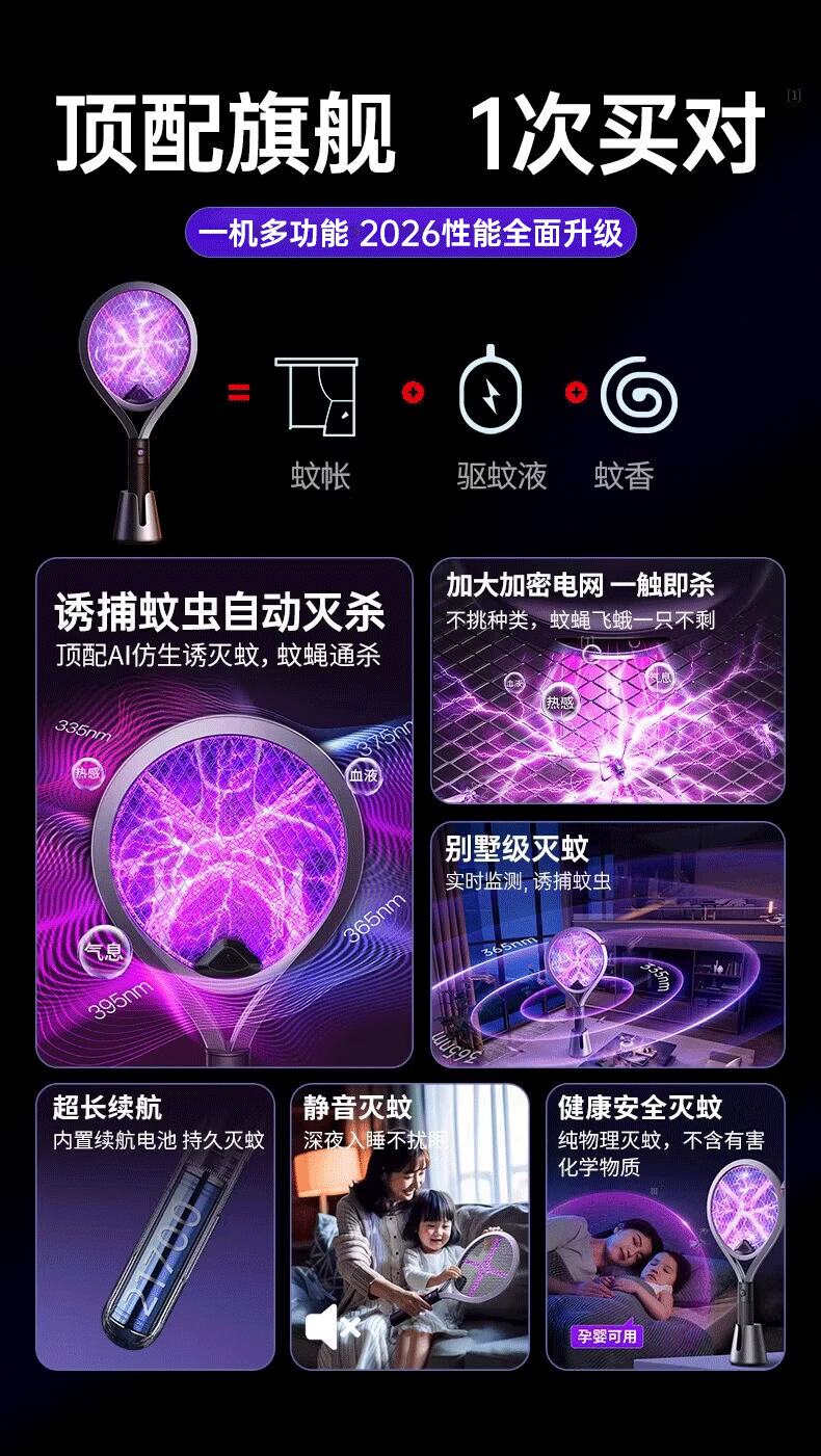 权尚【家用杀蚊神器】电蚊拍驱蚊器室内防灭蚊灯电子蝇户外诱2026新款 【灭蚊旗舰款】别墅级蚊蝇自动灭净丨静音无声 自动灭蚊丨静音无声丨持立两用