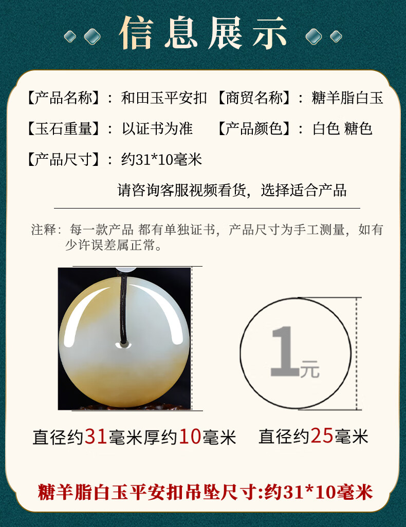 神翠鸟和田玉平安扣吊坠糖羊脂玉无事圆牌孤品玉坠象征诸事皆宜 配绳子 【约34mm】款九QYH2729f