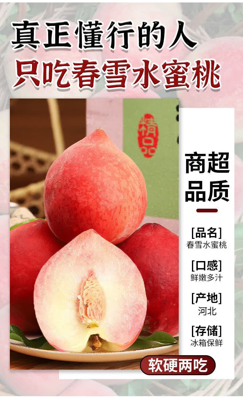 三萌果蔬 春雪水蜜桃【JD顺丰-多地次日达】河北当季脆桃新鲜桃子水果礼盒 A+级【单果150-200g】精品果 净重3斤装【多人复购-超划算】