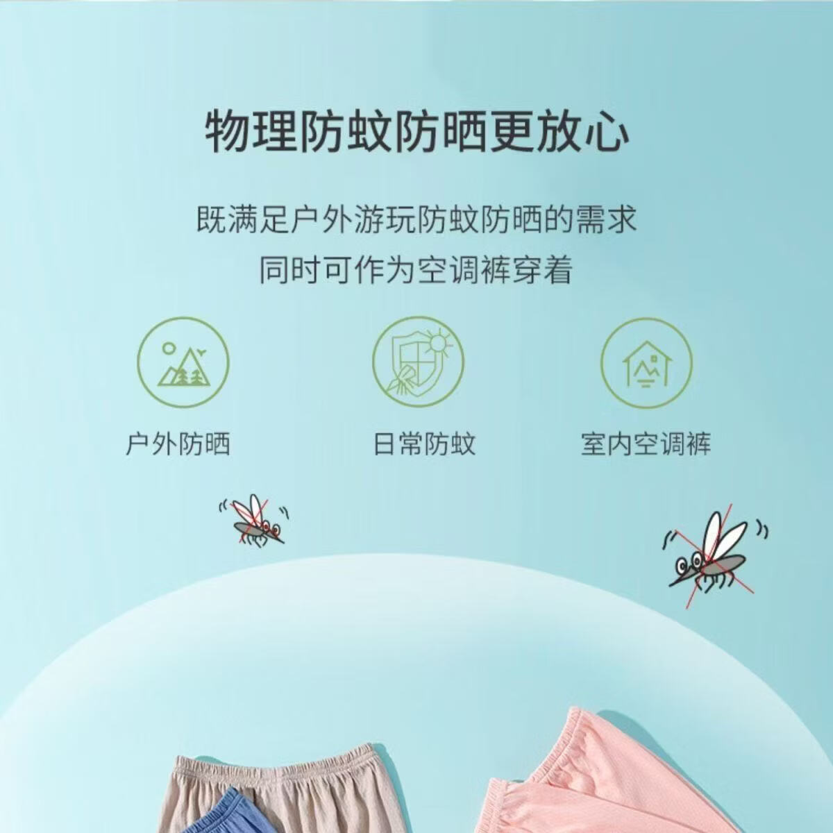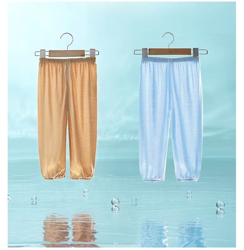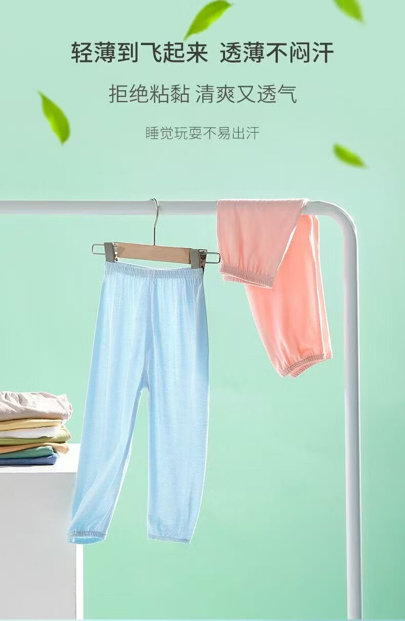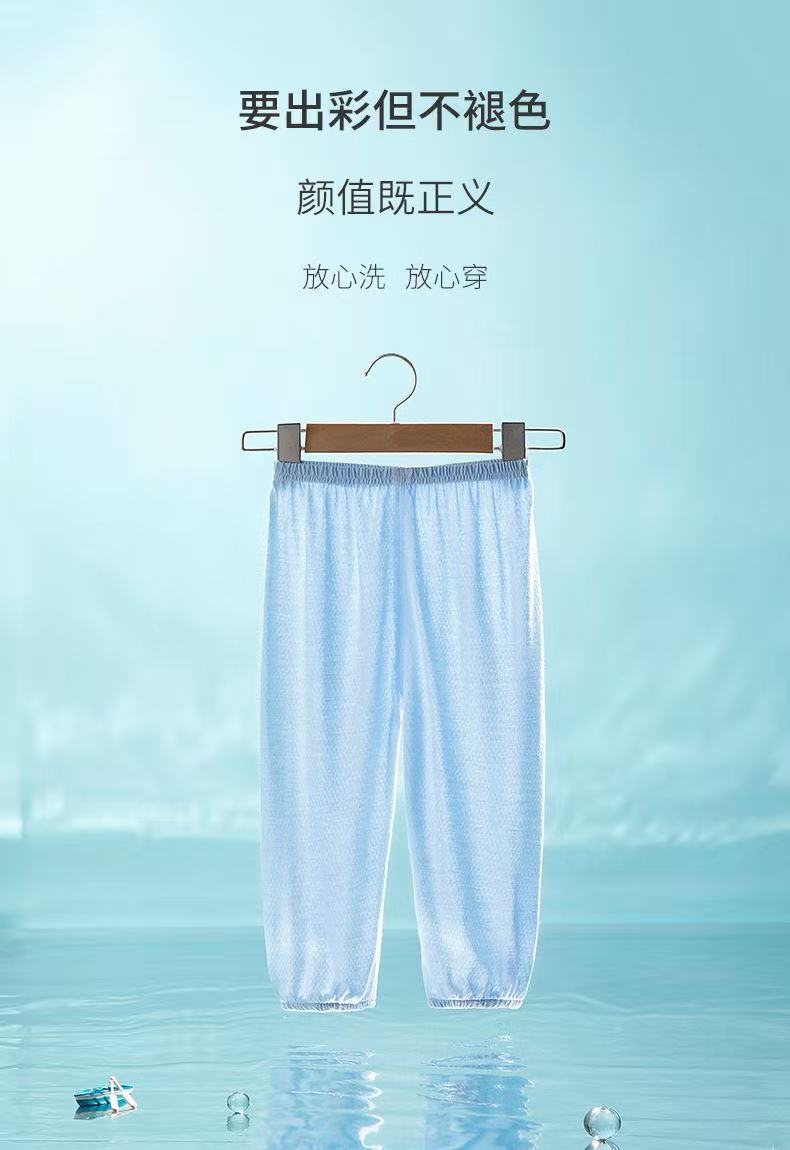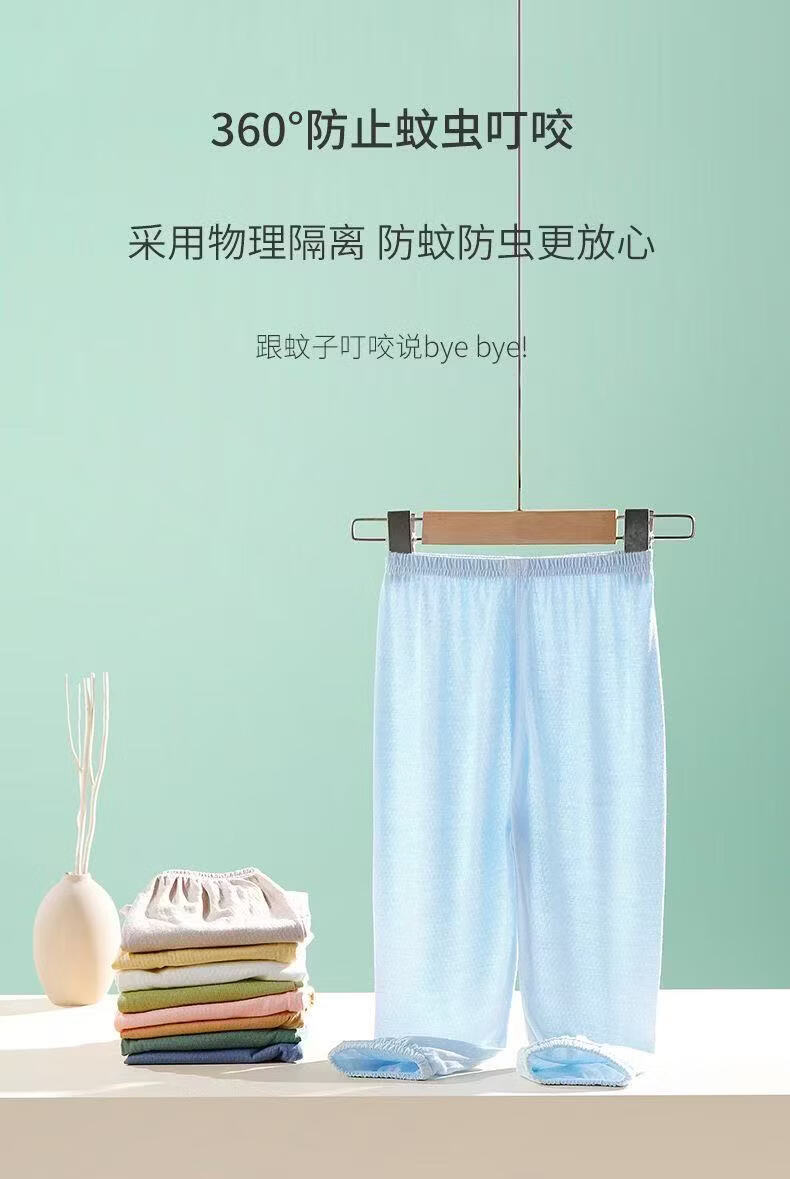 小猪班纳(PEPCO)2026夏季薄款防蚊裤男童女童纯棉裤子网眼透气宝宝休闲裤 蓝-彩虹 100 (尺码偏小,建议拍大)