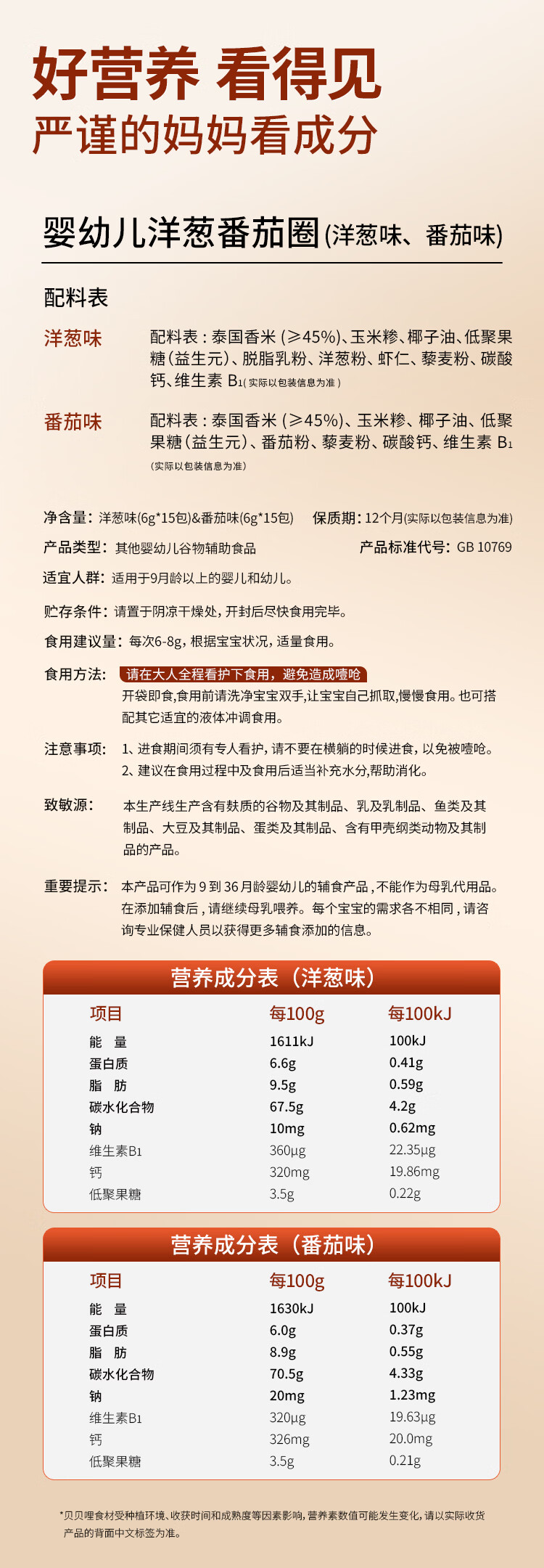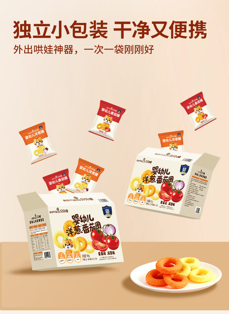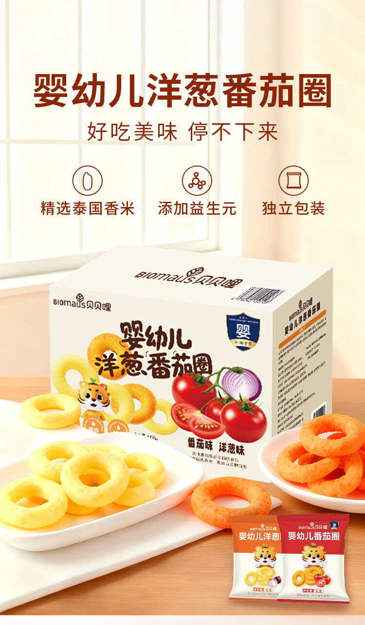 贝贝哩婴幼儿洋葱番茄圈180g 婴儿宝宝零食泡芙圈谷物圈0添加独立小包装