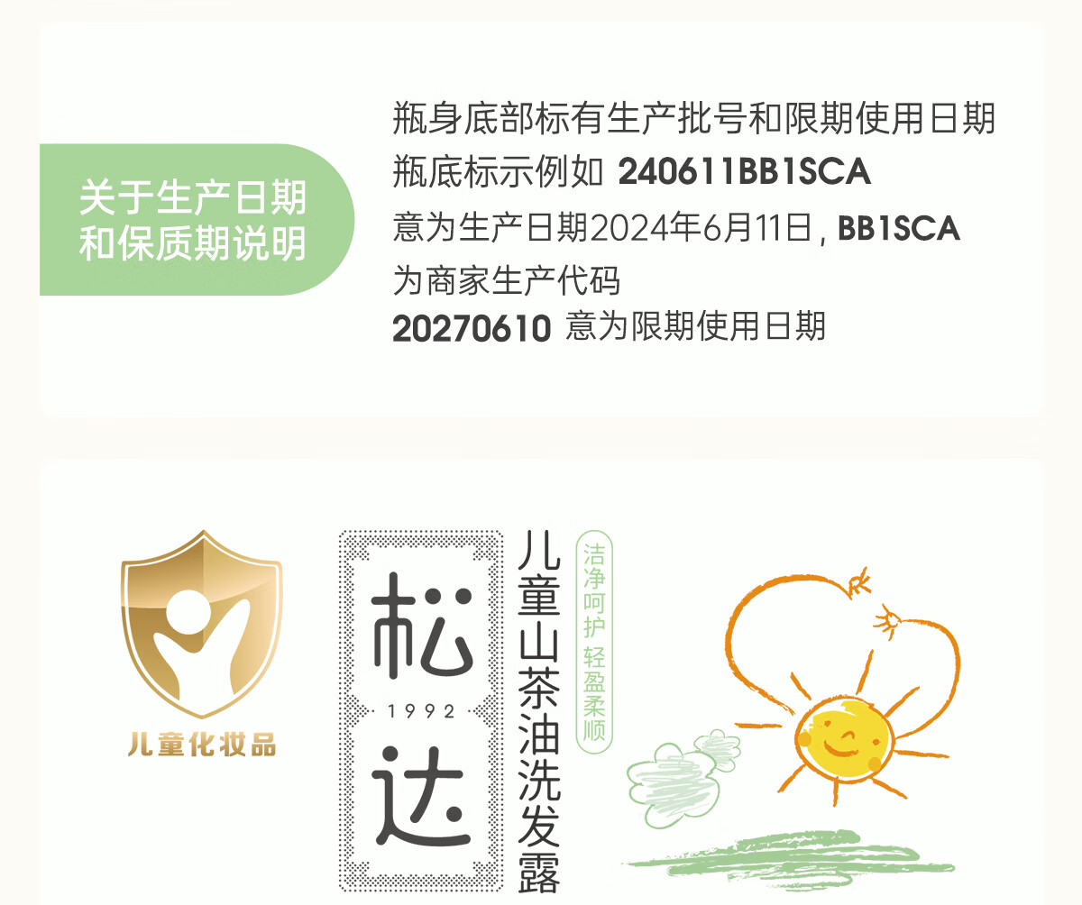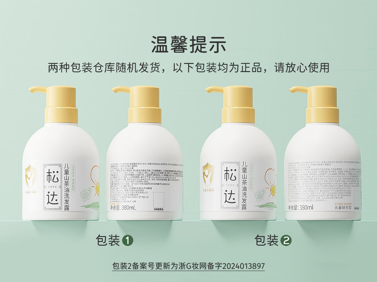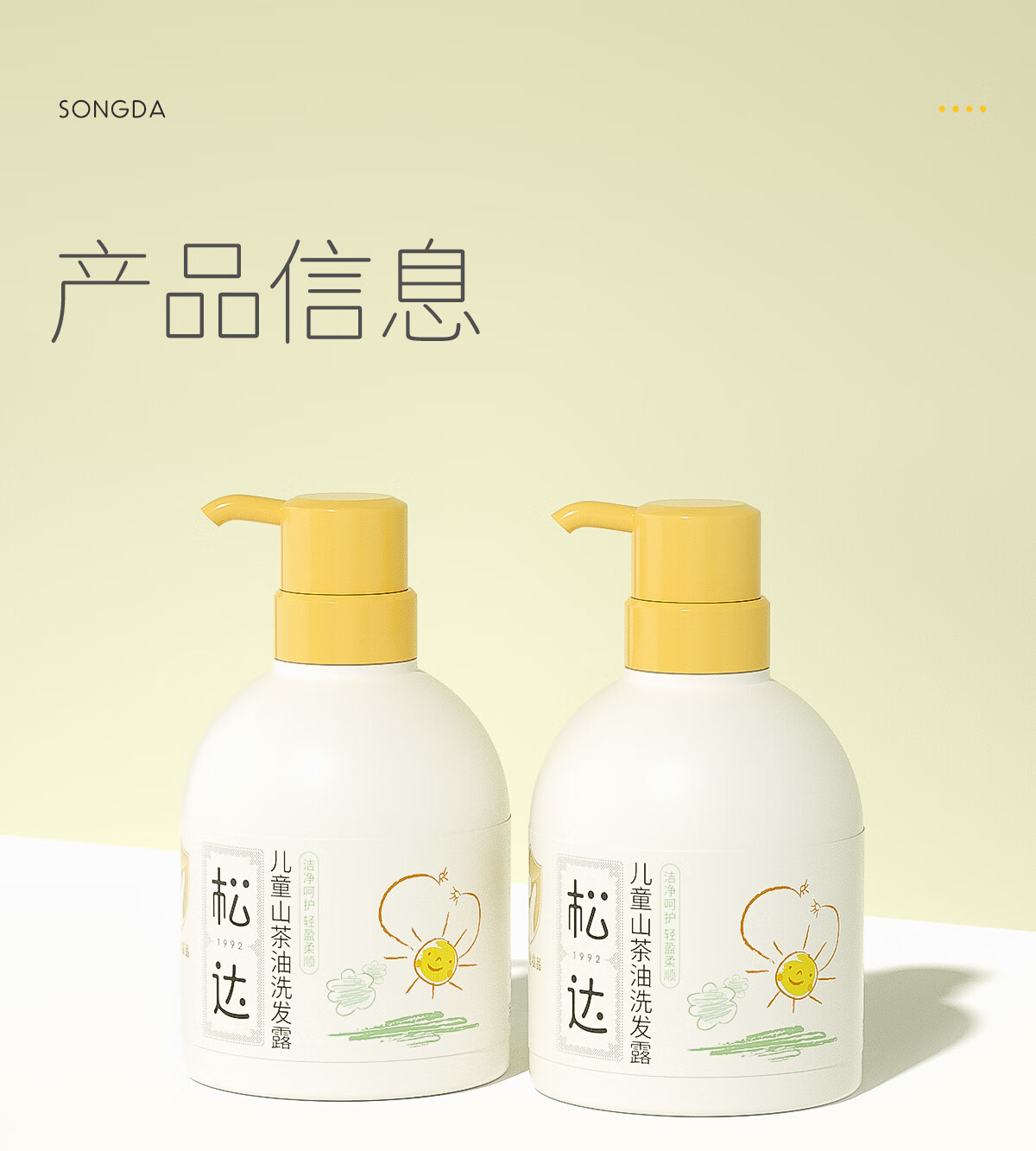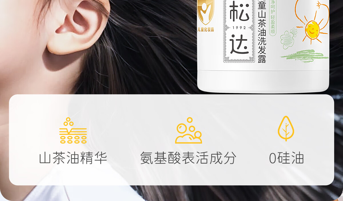 松达儿童洗发水3-6-12-16岁宝宝青少年山茶油洗发露无硅油380ml