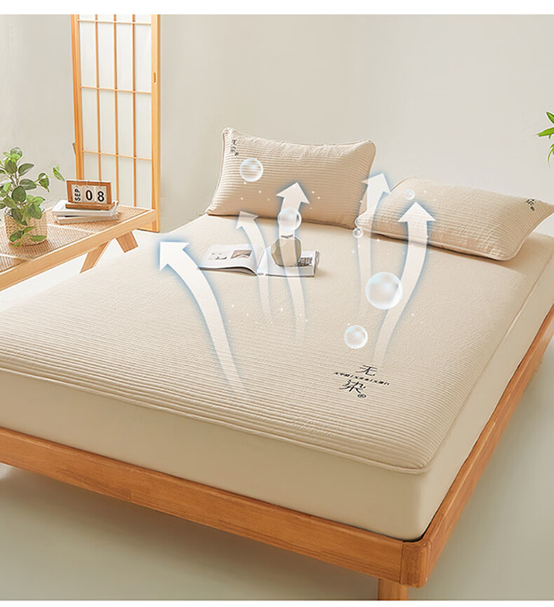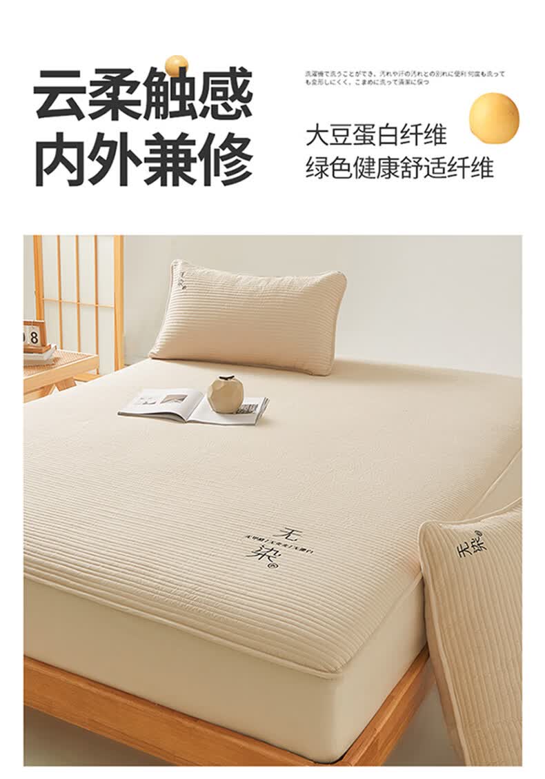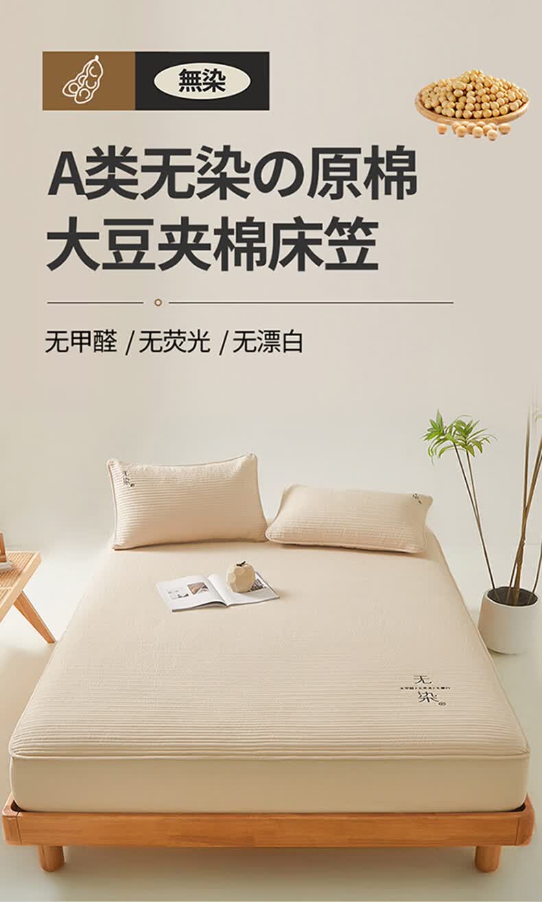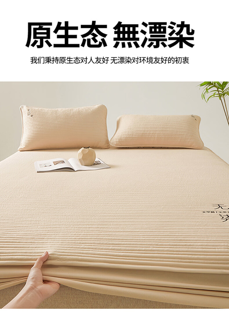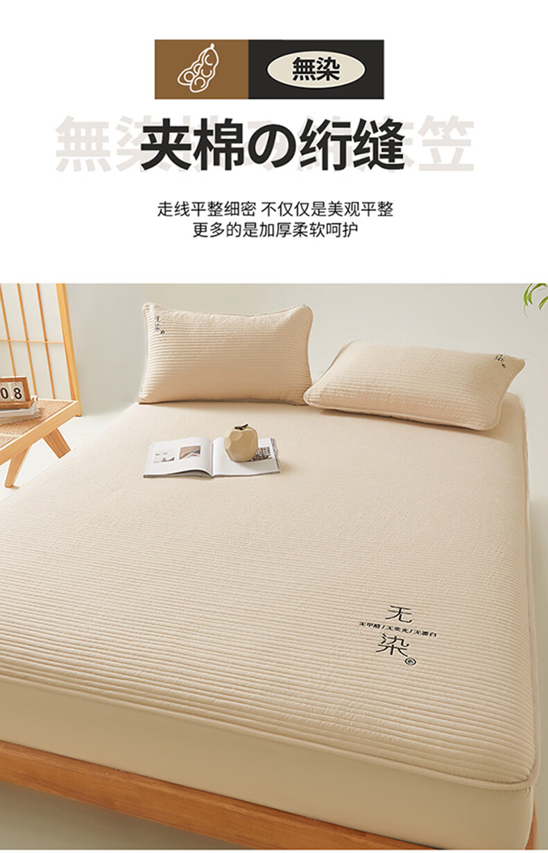 无印良品A类刺绣夹棉床笠1.8米x2米床罩床垫保护套全包家用三件套床上用品 无染-米杏【A类母婴级 大豆夹棉填充】 180cm*200cm 单床笠