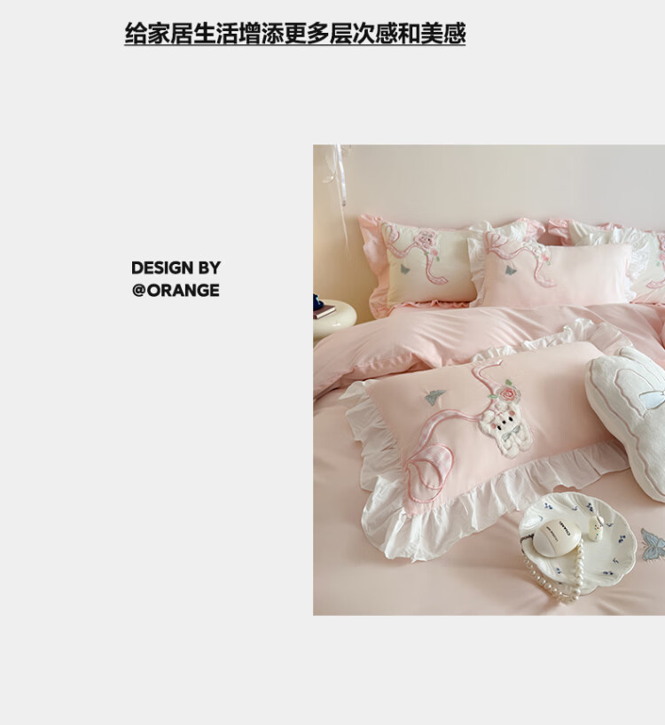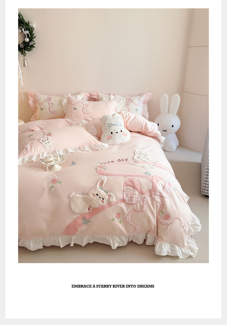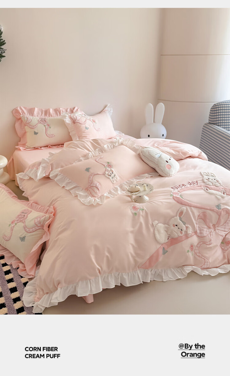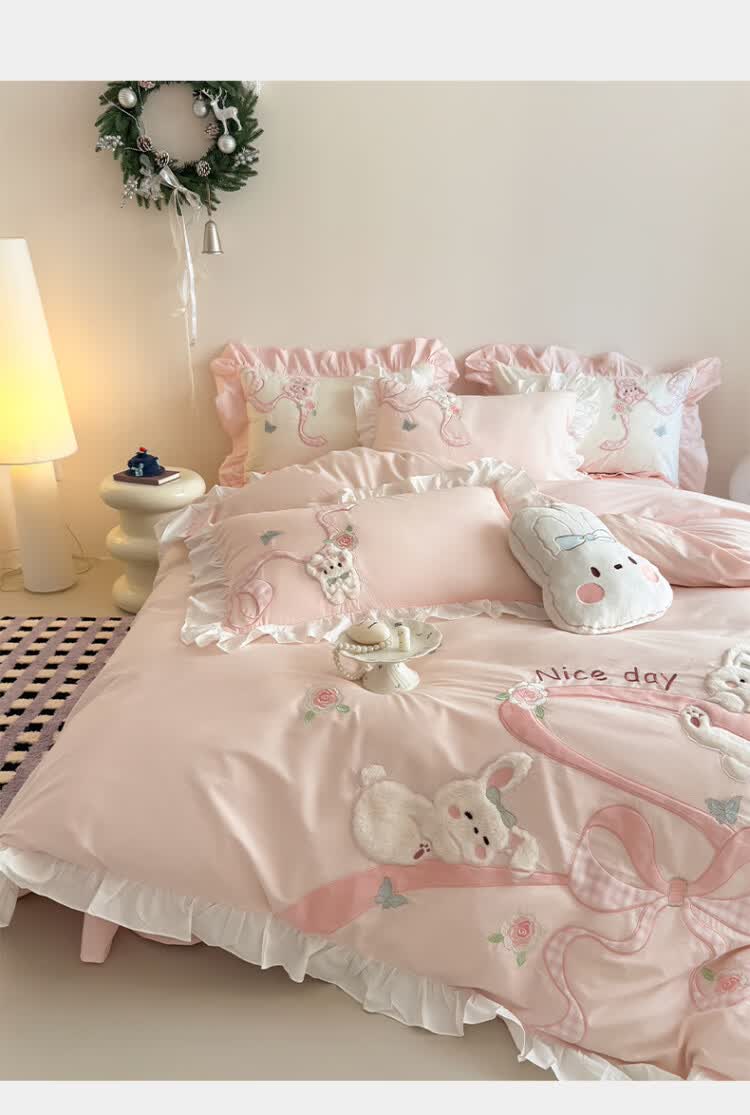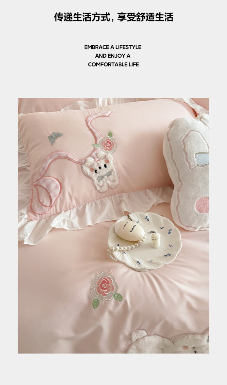 ROLAND LIVE奶萌兔子全棉水洗棉四件套卡通可爱软糯纯棉被套床单床上用品 WL 全棉水洗棉套件-棉趴趴兔【送同款抱枕】 1.2米床 床单款 【被套150*200cm】