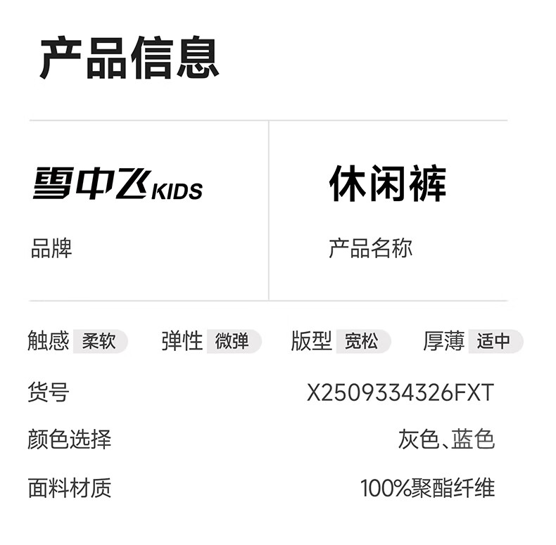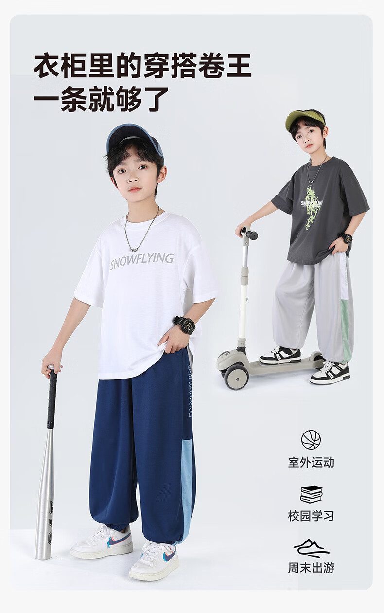 雪中飞(SNOWFLYING)儿童裤子2026新款男童夏季薄款速干透气长裤童装运动裤 灰色 160