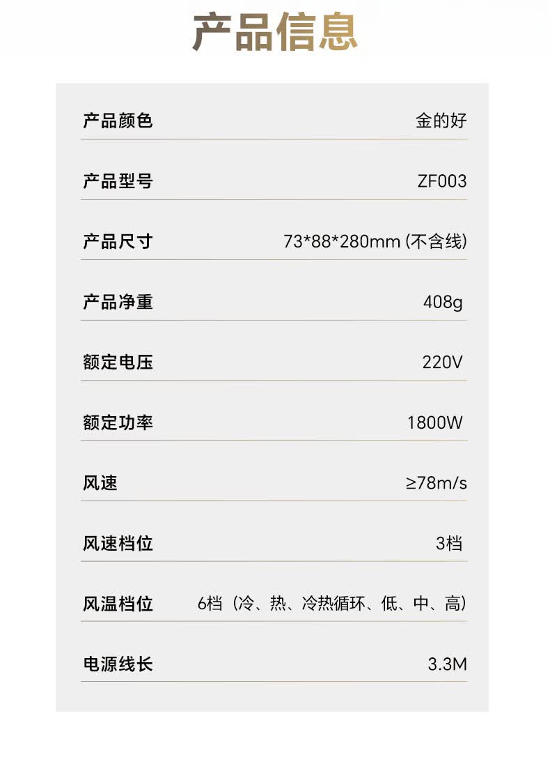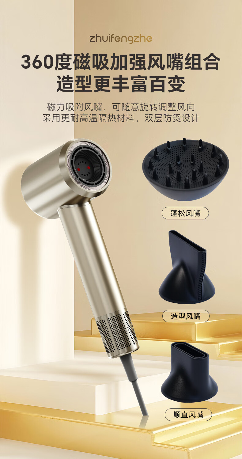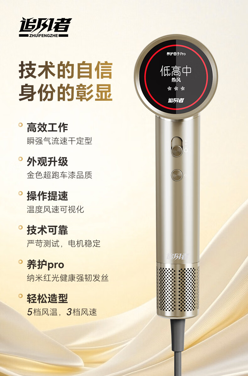 追风者大功率电吹风 家用理发店发廊专用吹风筒 负离子高速护发吹风机 国家补贴 生日礼物 金的好