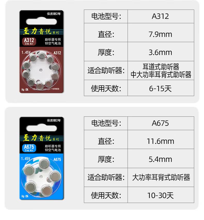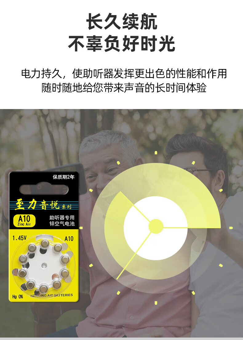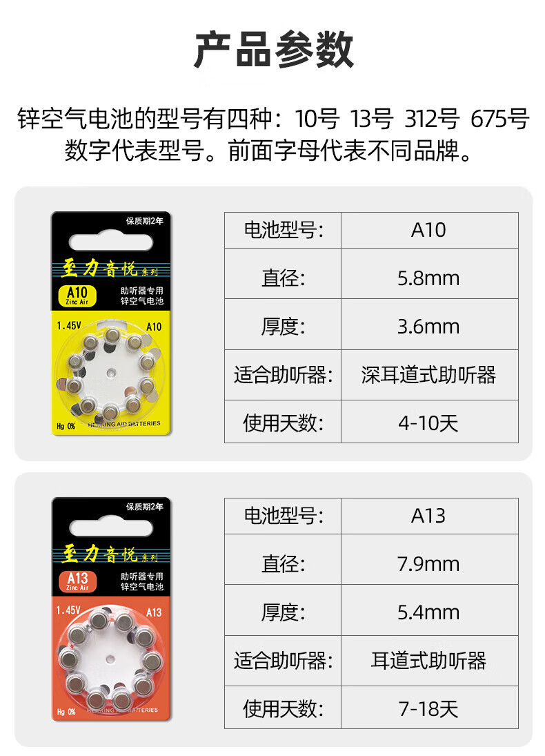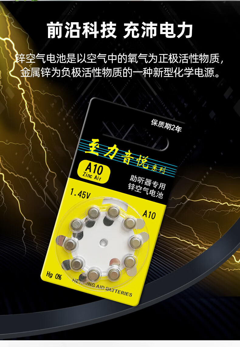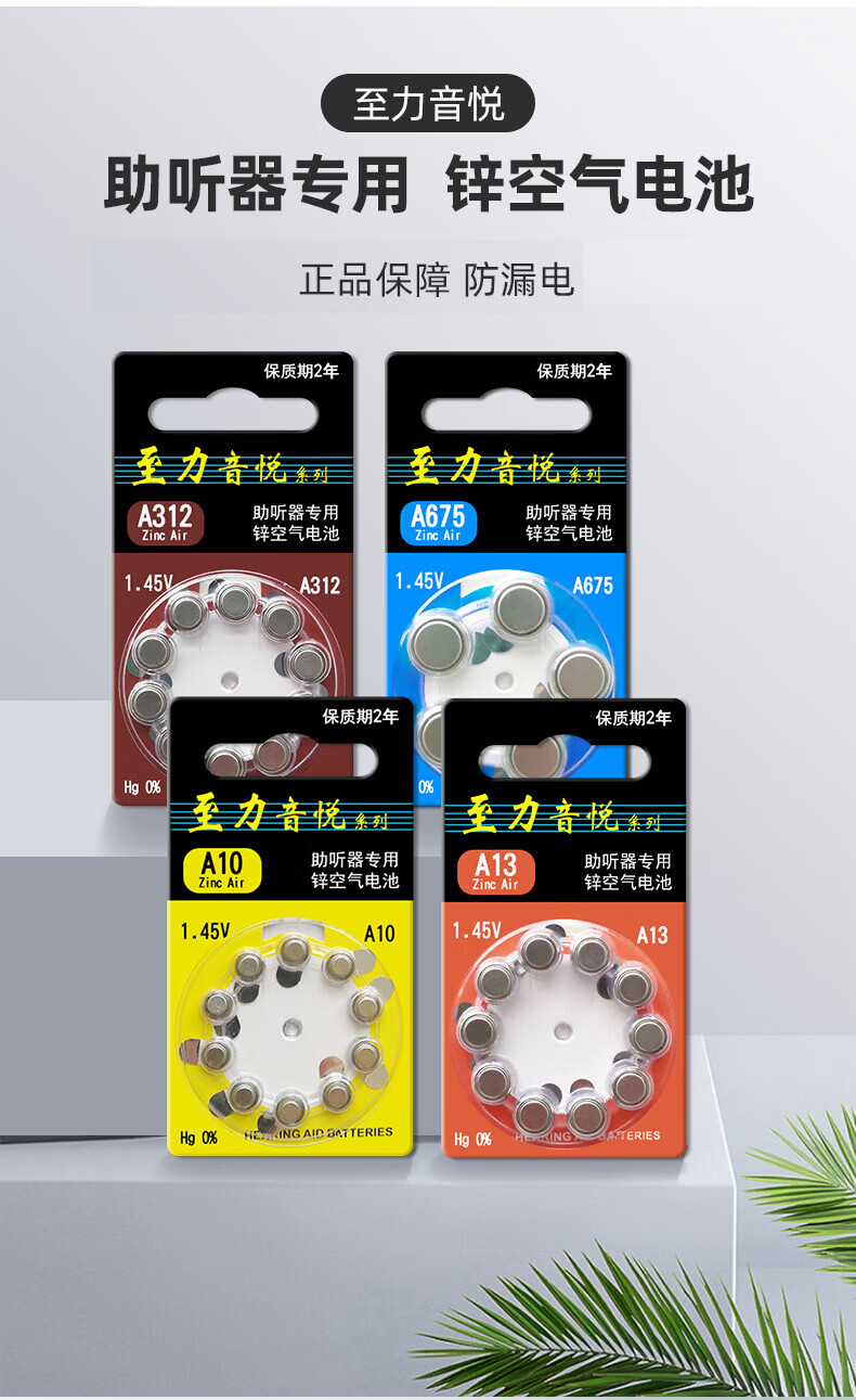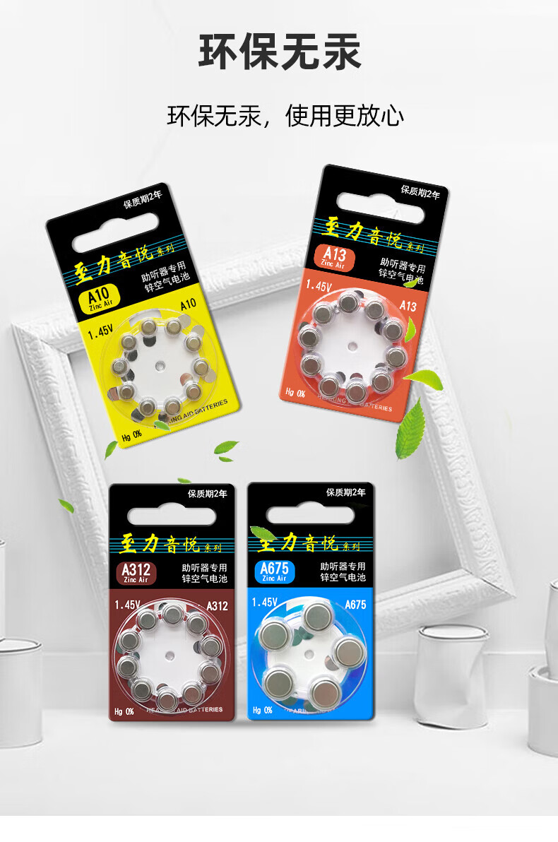 通用音悦助听器电池专用原装纽扣电子A13A10A312A675原装锌空气 至力音悦 A10【10板100颗】