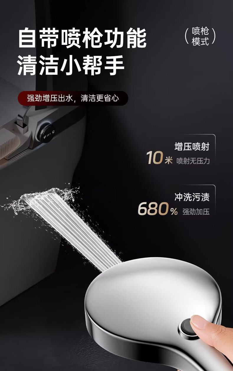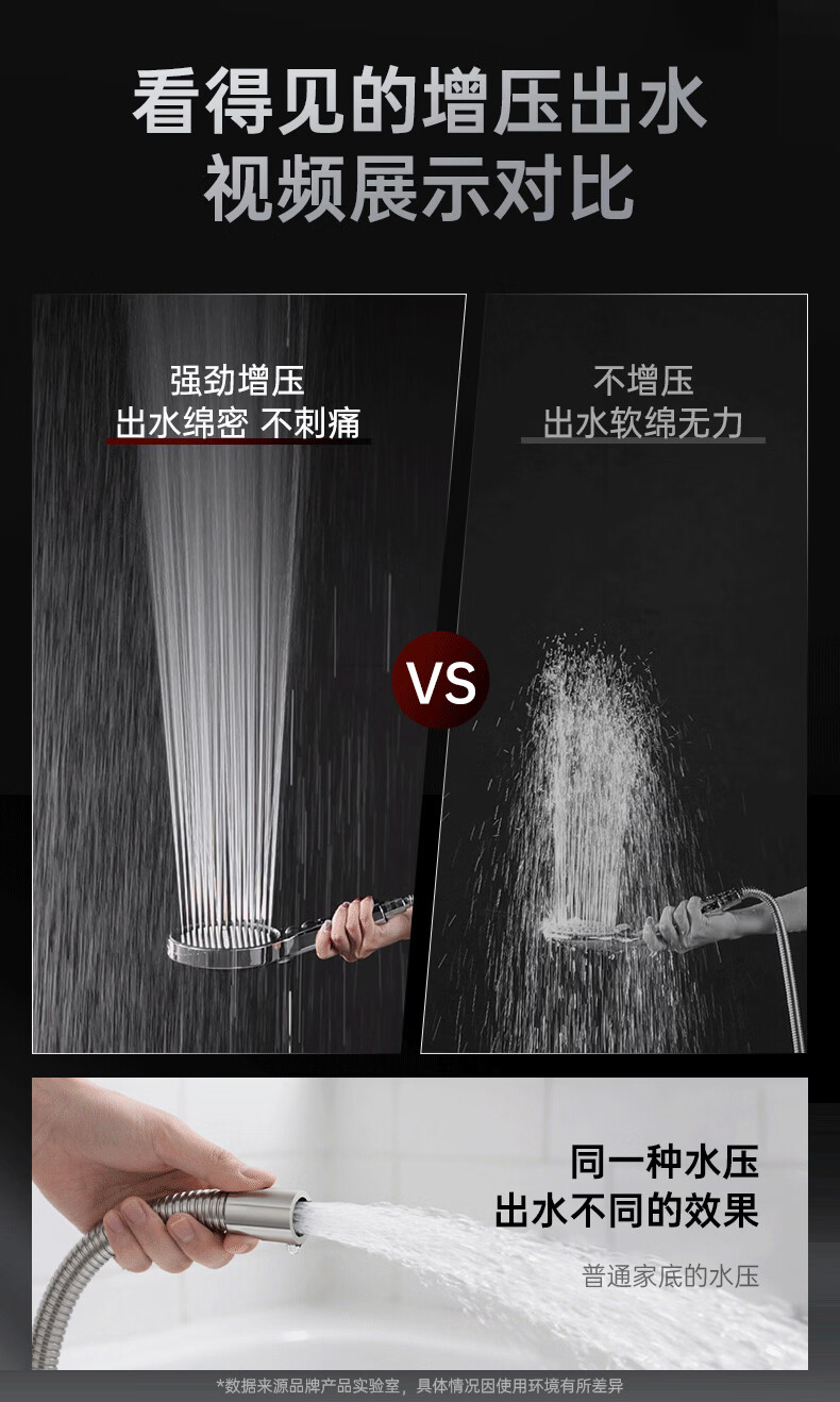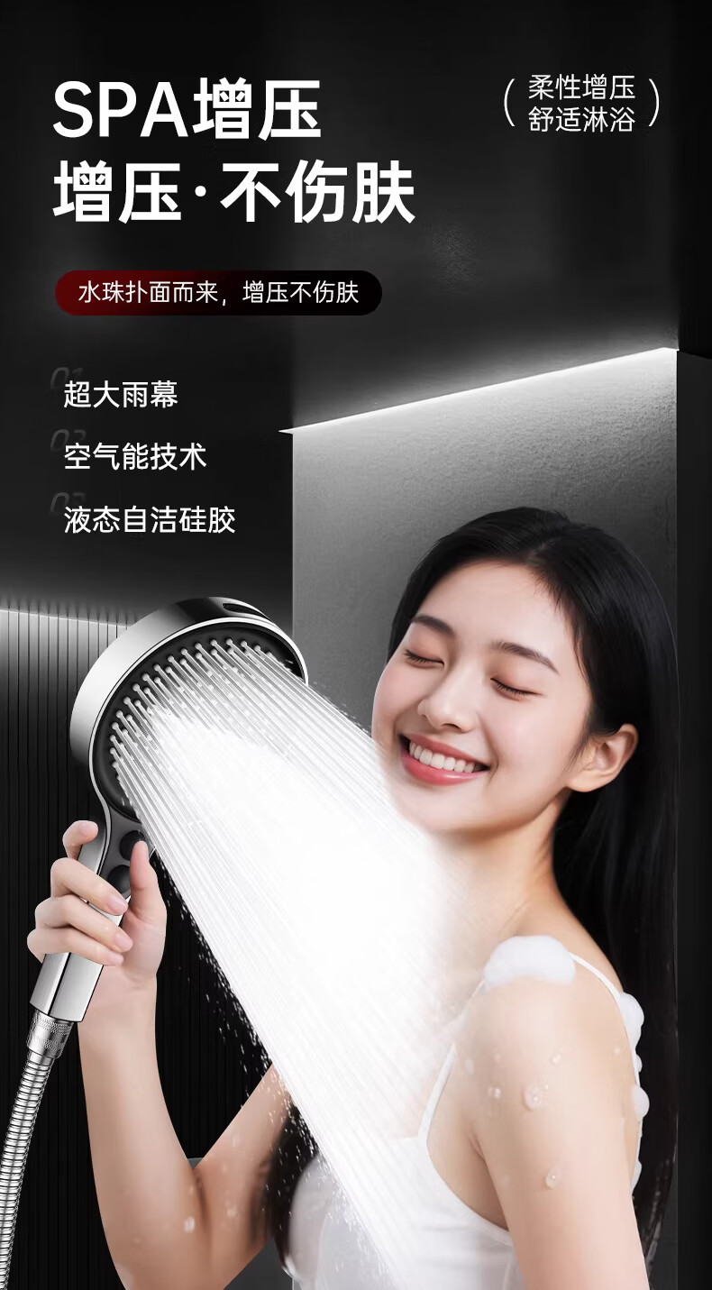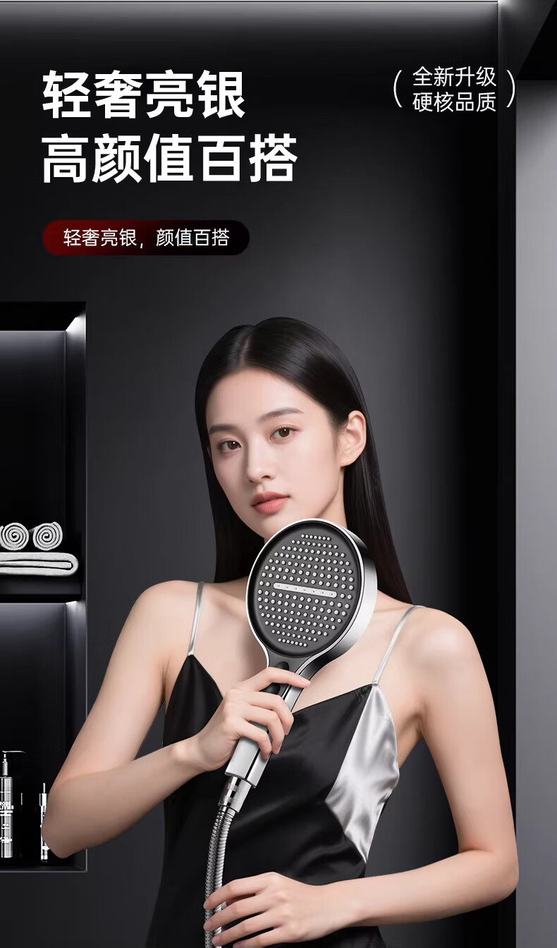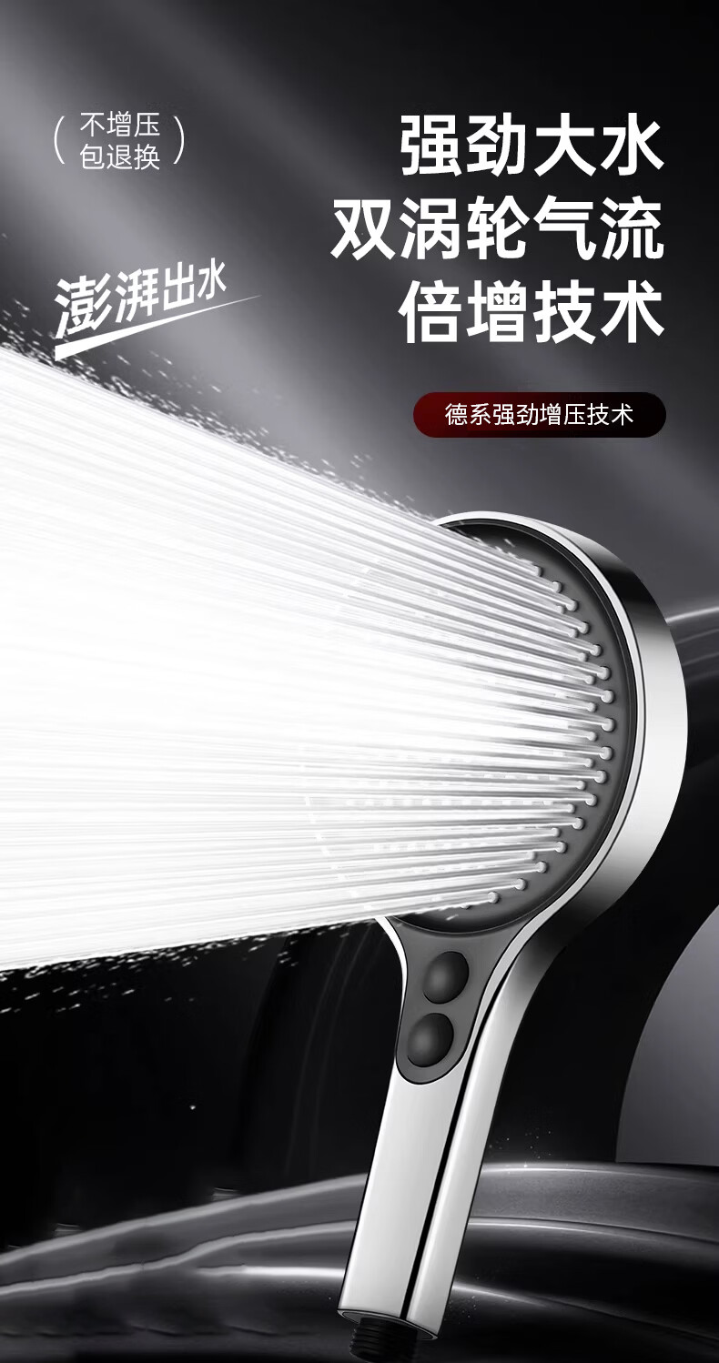 GuGuGo【德国】增压淋浴花洒喷头带软管一套超强高压大出水手持蓬莲头 雨淋增压花洒【铂钻银】 强劲双涡轮增压丨享SPA级淋浴体验