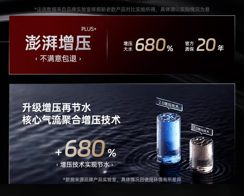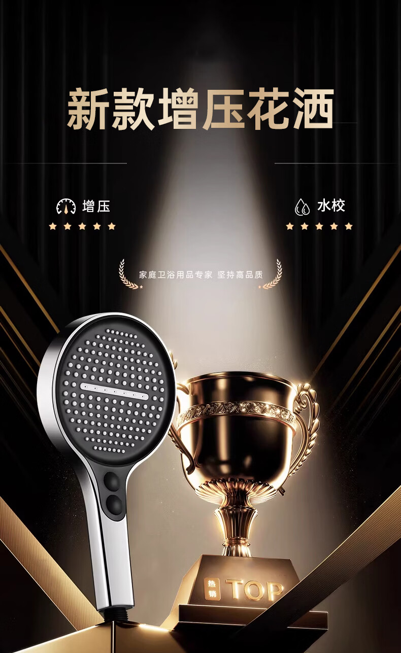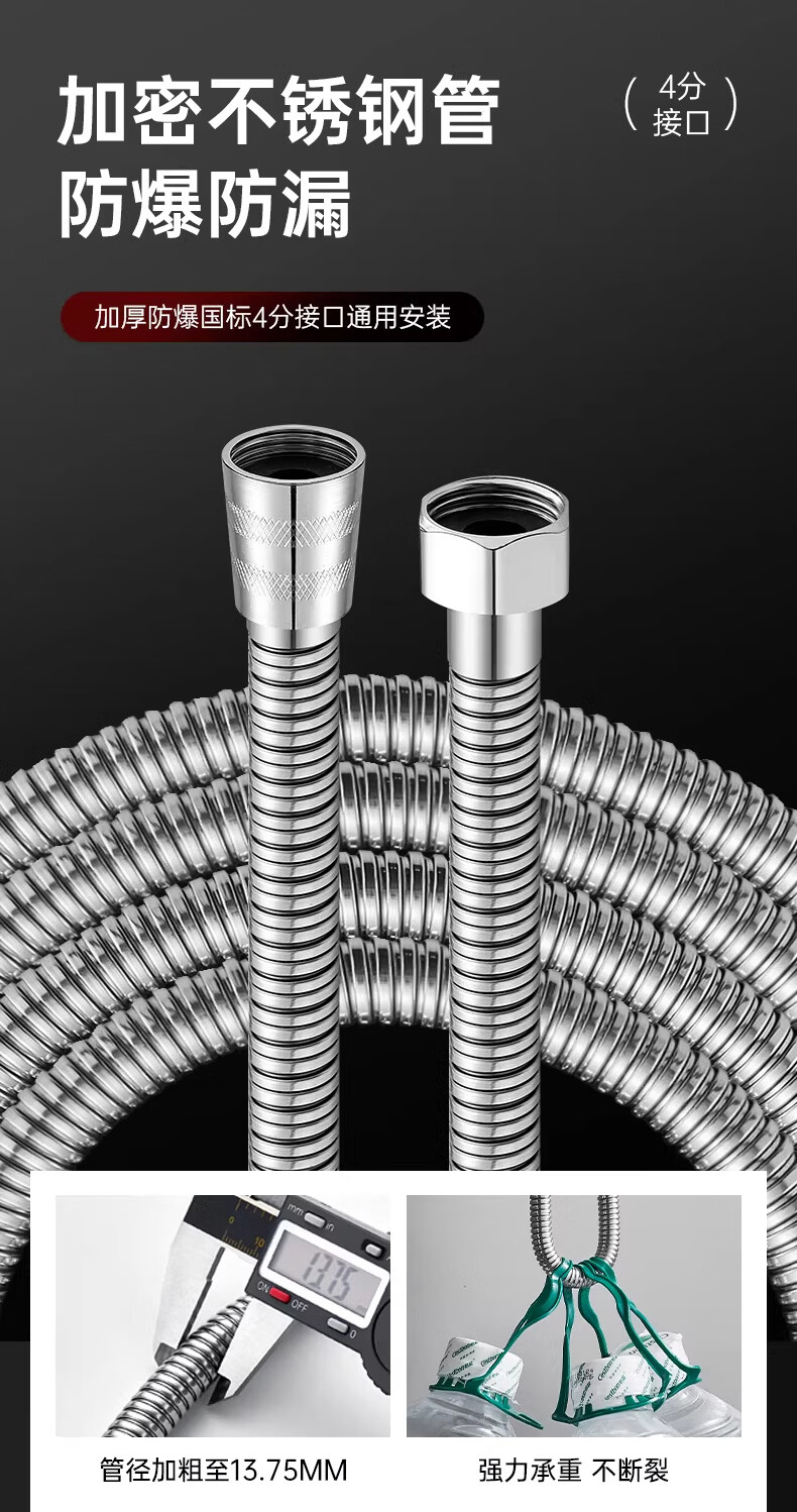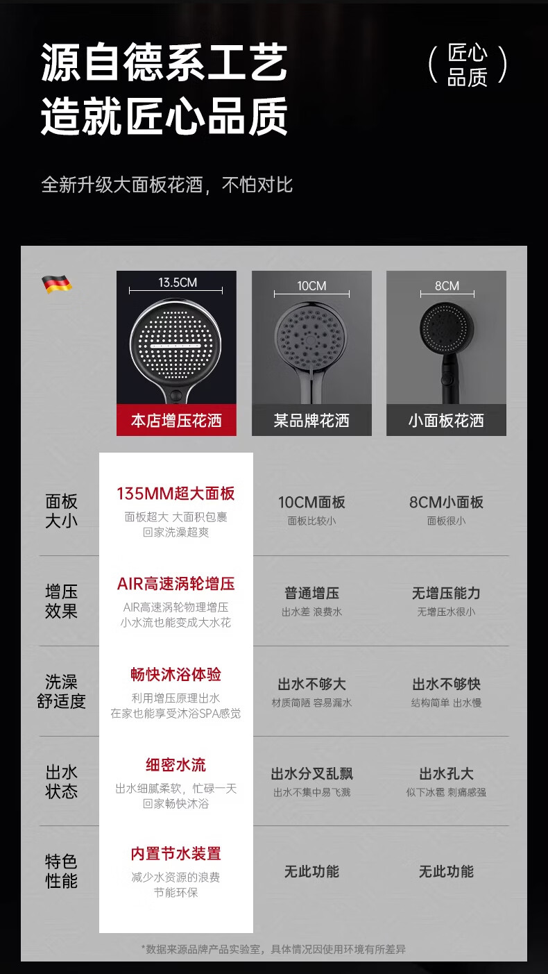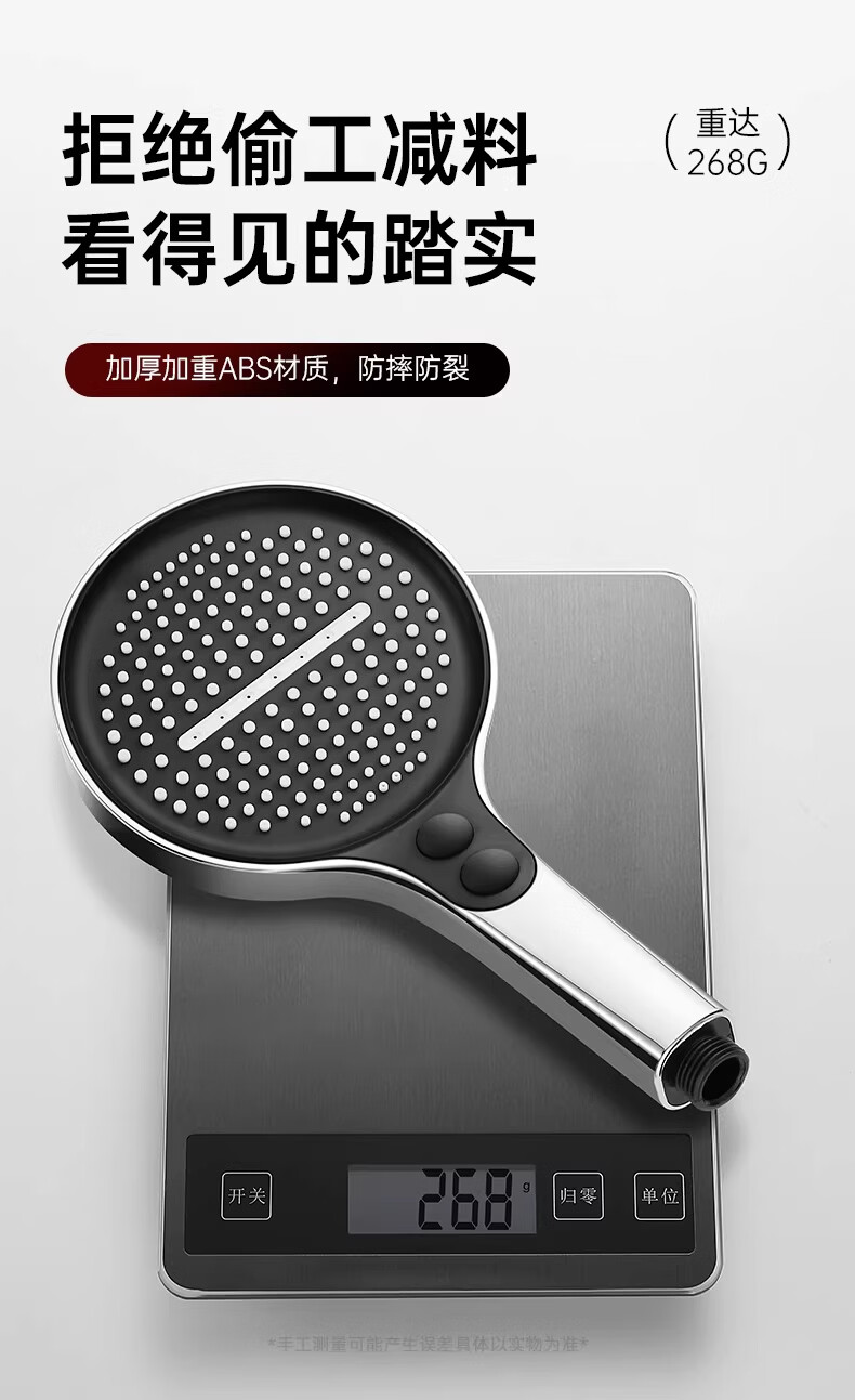 GuGuGo【德国】增压淋浴花洒喷头带软管一套超强高压大出水手持蓬莲头 雨淋增压花洒【铂钻银】 强劲双涡轮增压丨享SPA级淋浴体验