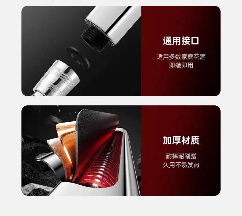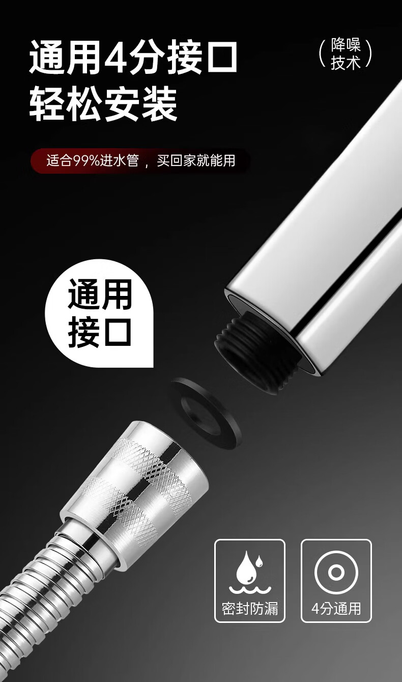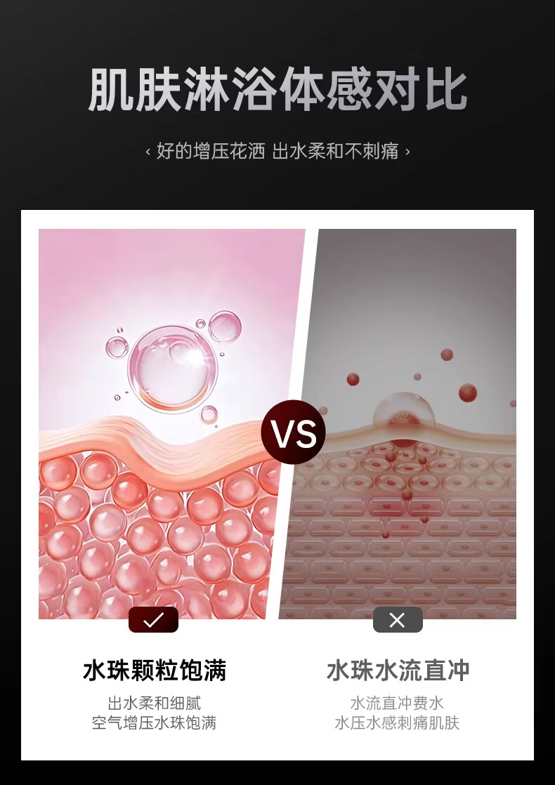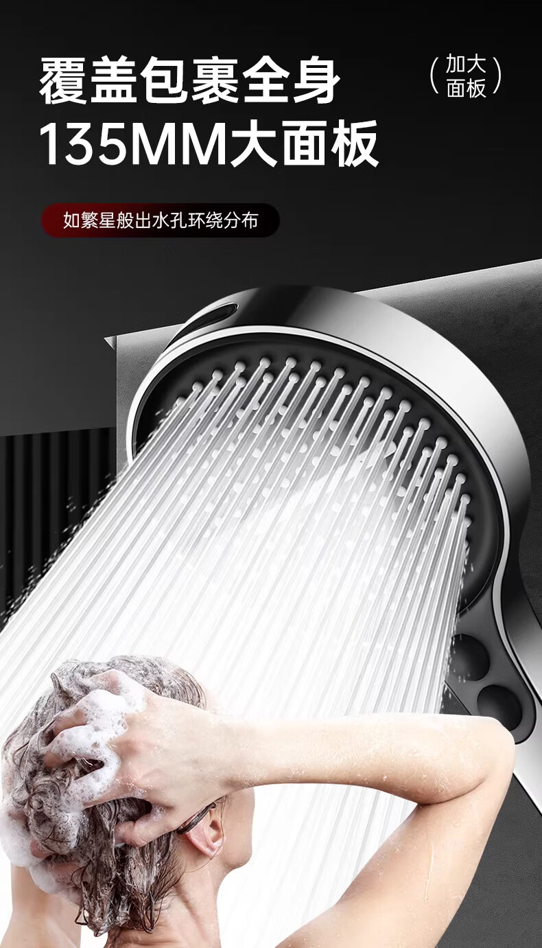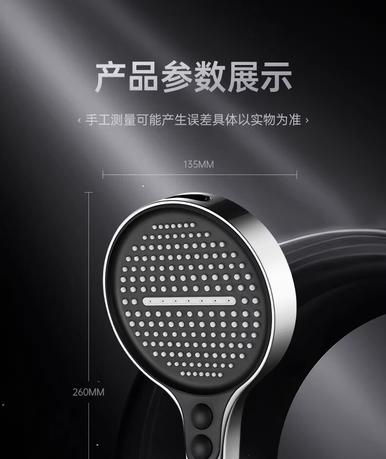 CUNKOY【德国】淋浴增压花洒喷头带软管一套浴室洗澡加压莲蓬花洒头套装 五档增压花洒+1.5米软管【雅黑】 强劲增压丨密集大出水