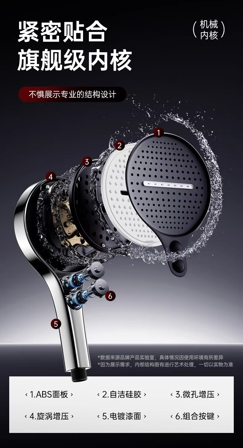 摩恩【迷住专属】手持花洒防指纹花洒喷头六出水方式浴室淋浴花洒配件 摩恩防指纹手持花洒
