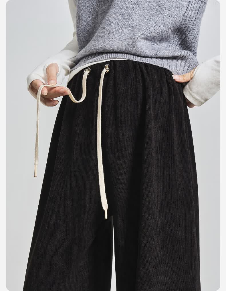 十月结晶孕妇裤春秋抽绳式阔腿裤直筒宽松休闲裤大码孕妇装 黑色M码