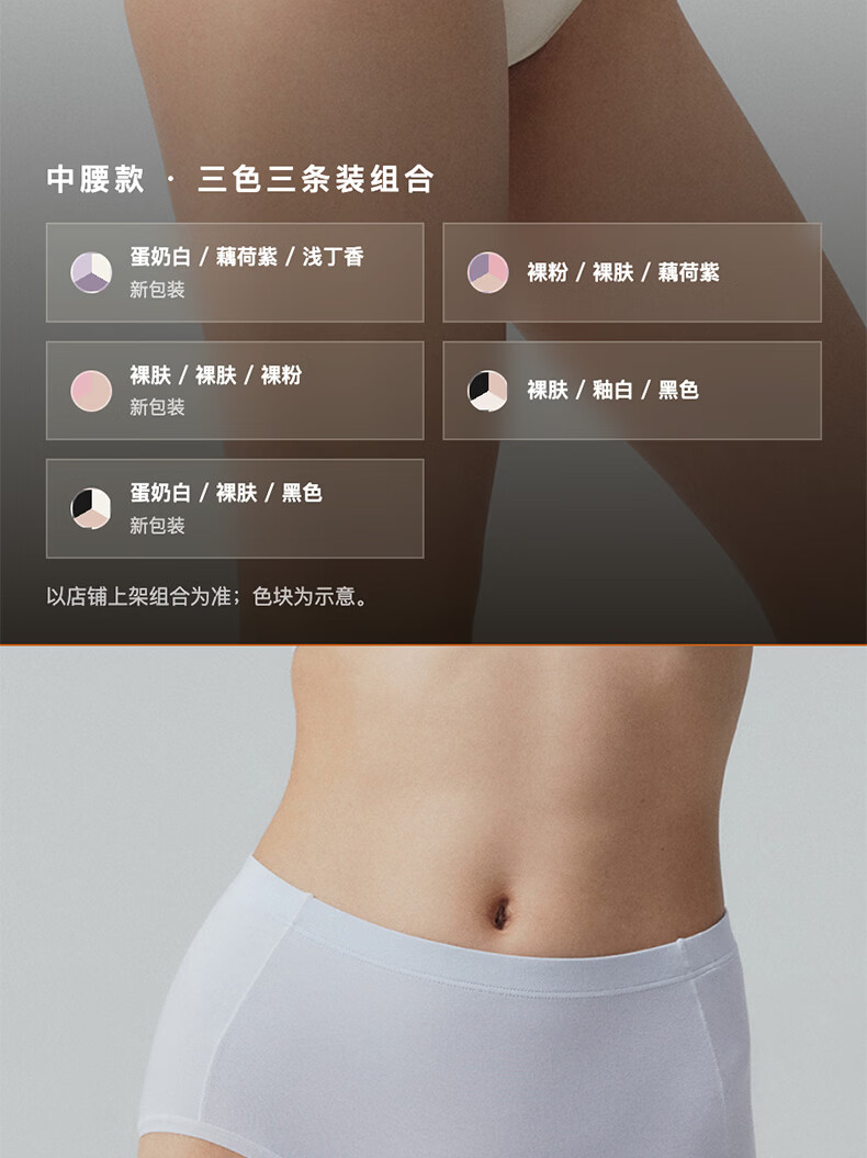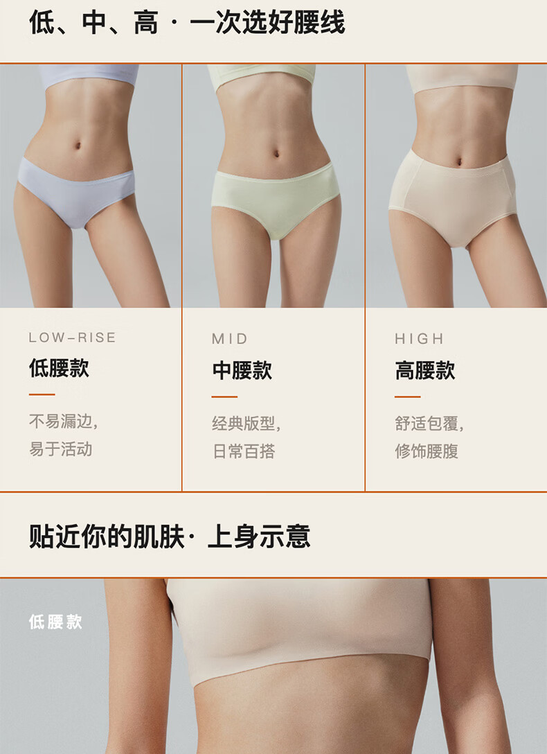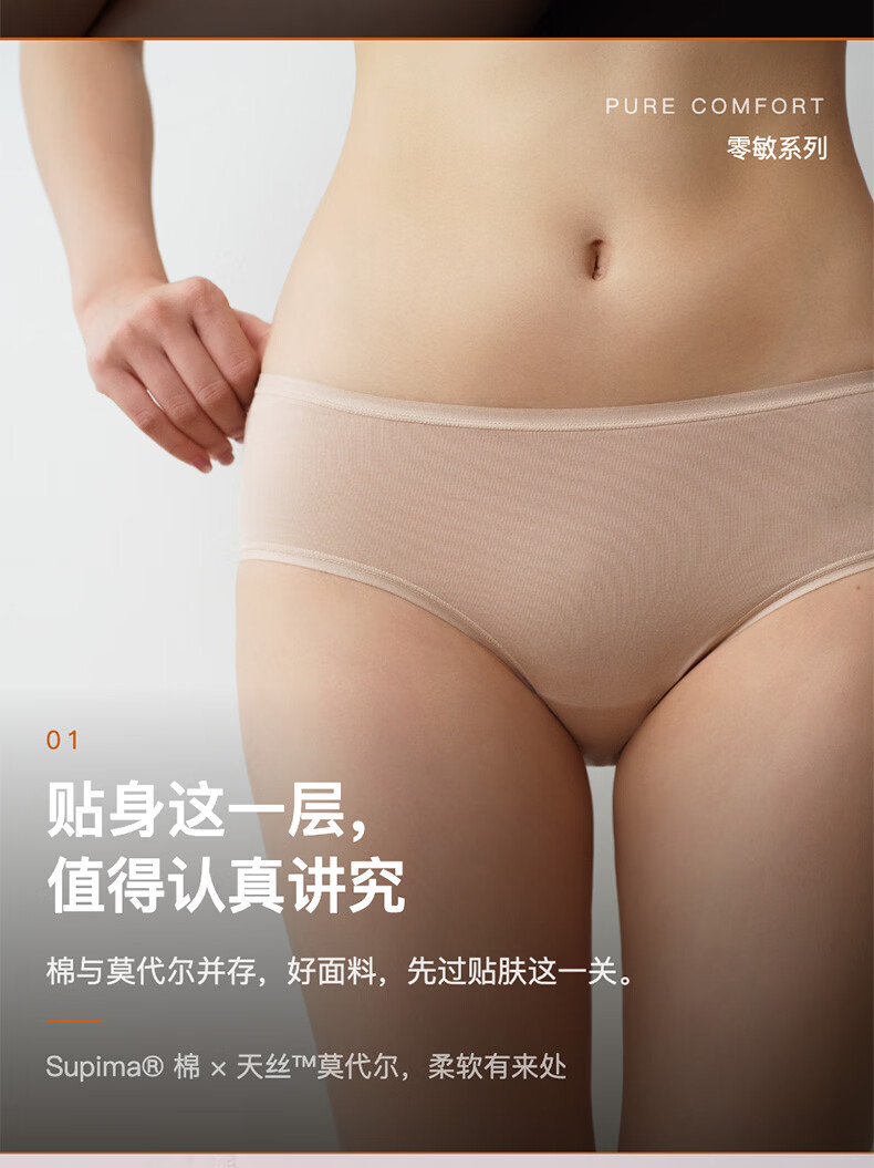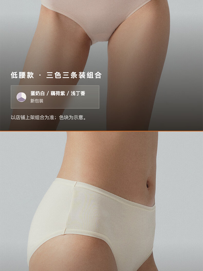 内外橙标3条装80支棉莫零敏内裤女弹力亲肤吸汗透气防夹臀送女生礼物 中腰-裸粉/裸肤/藕荷紫 3条 M