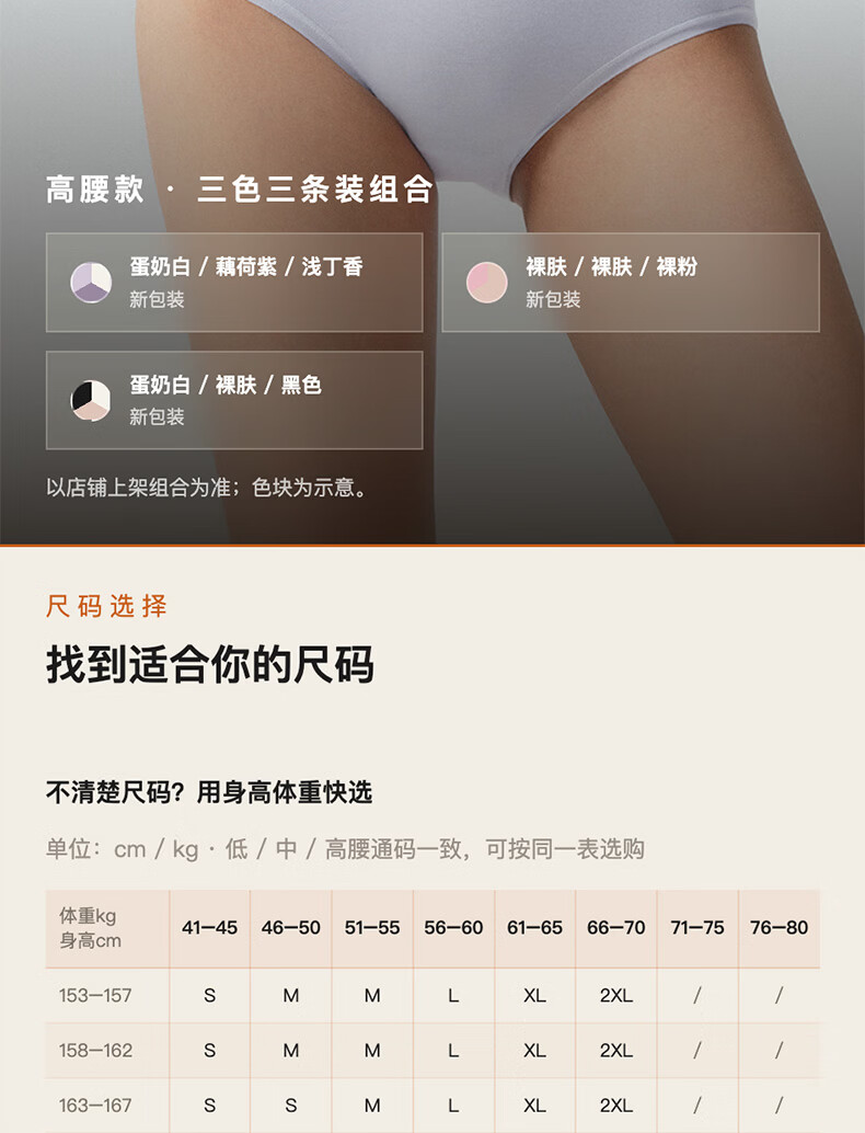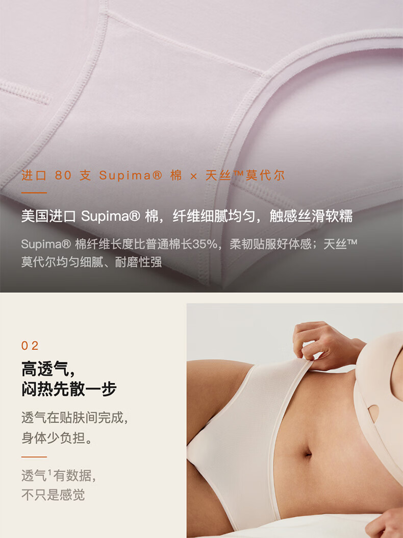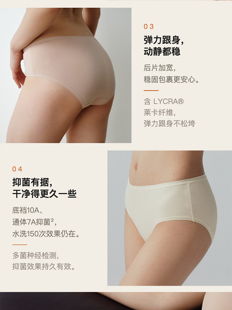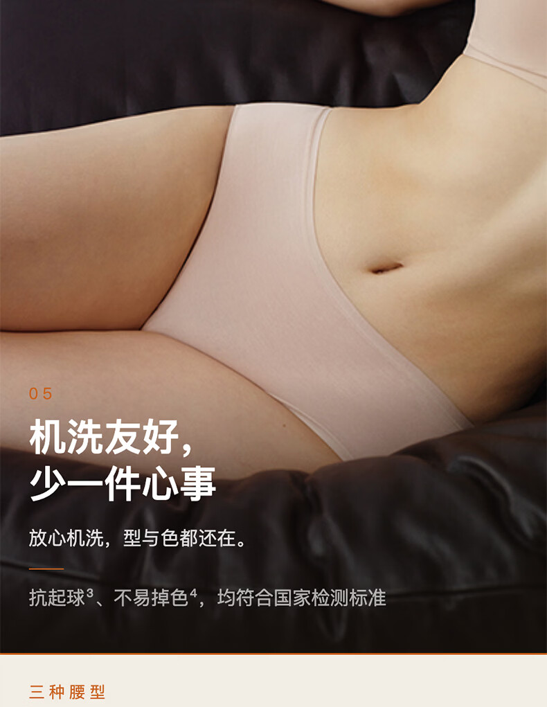 内外橙标3条装80支棉莫零敏内裤女弹力亲肤吸汗透气防夹臀送女生礼物 中腰-裸粉/裸肤/藕荷紫 3条 M