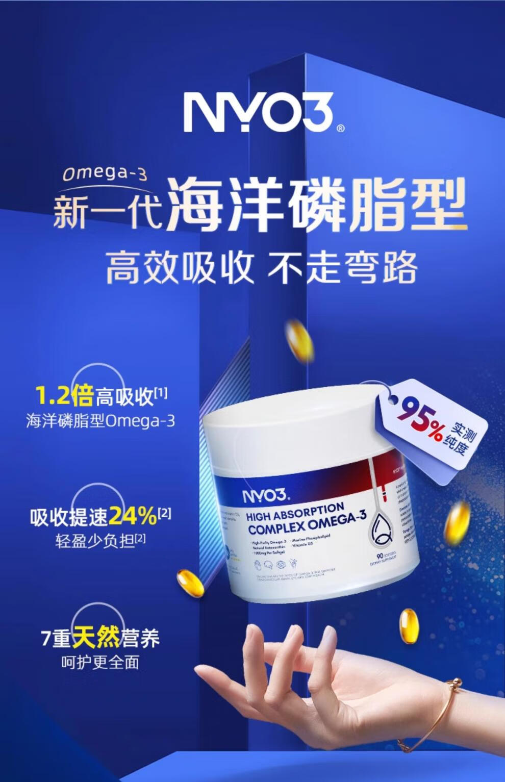 安健蓓深海鱼油软胶囊omega3中老年成人助力免疫辅助血脂血压护眼 深海鱼油中老年人助力免疫力 60粒*3瓶