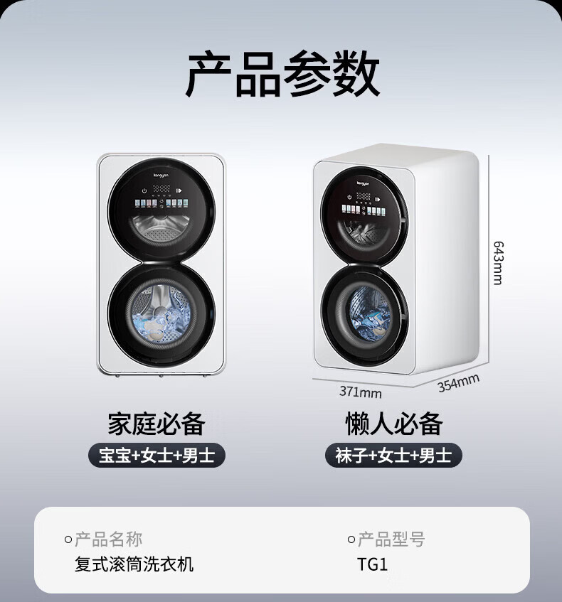KANGYAN双桶分区洗护洗衣机 无刷电机静音 除菌除螨 99.99% 全自动小型洗脱一体机 【桌面款】洗烘一体机IAI自动投液I新风系统 一级能效IAI智能洗烘