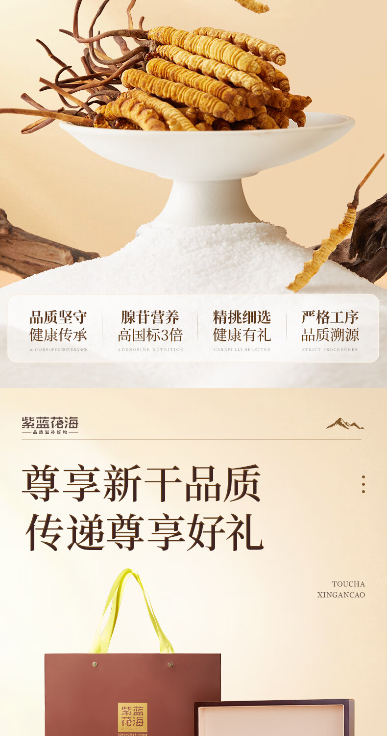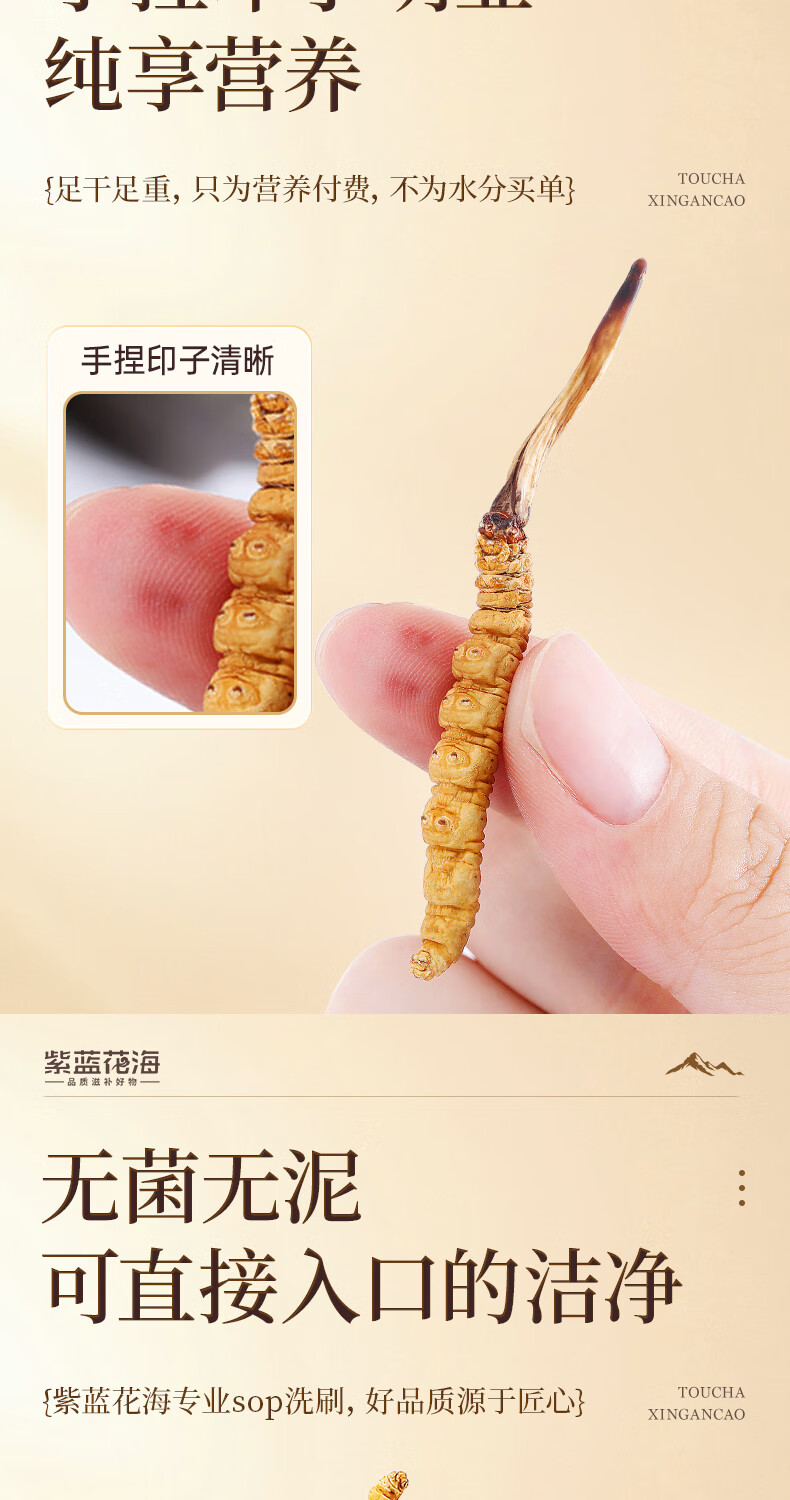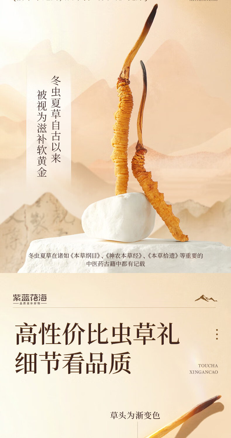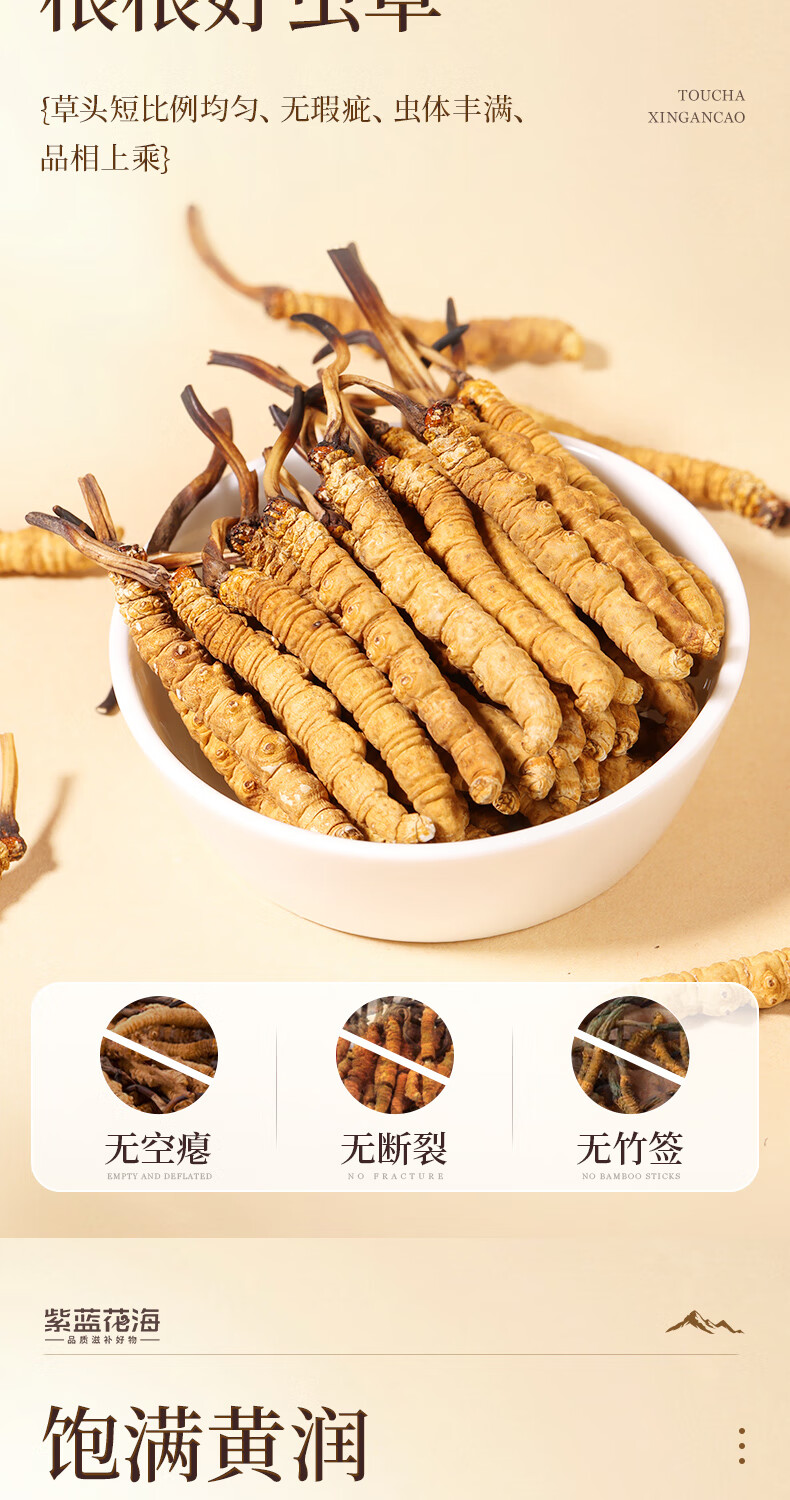 紫蓝花海冬虫夏草 4-5根/g20根冬虫草高海拔新干虫草滋补品【健康礼盒】