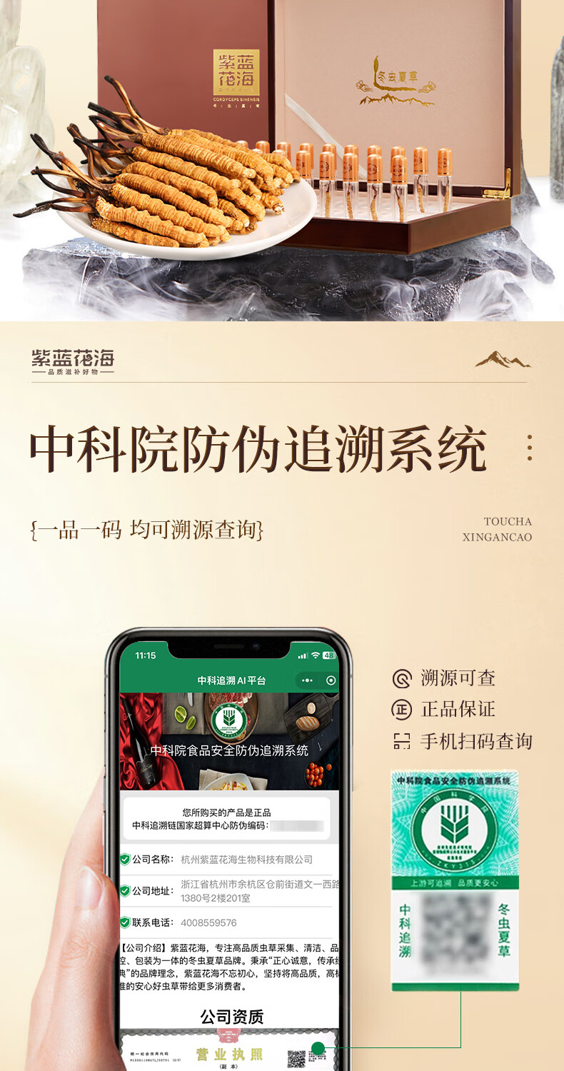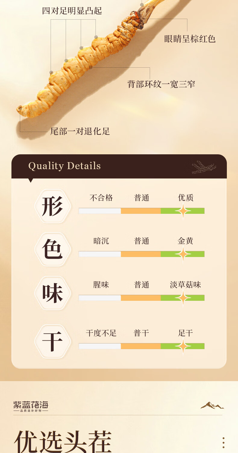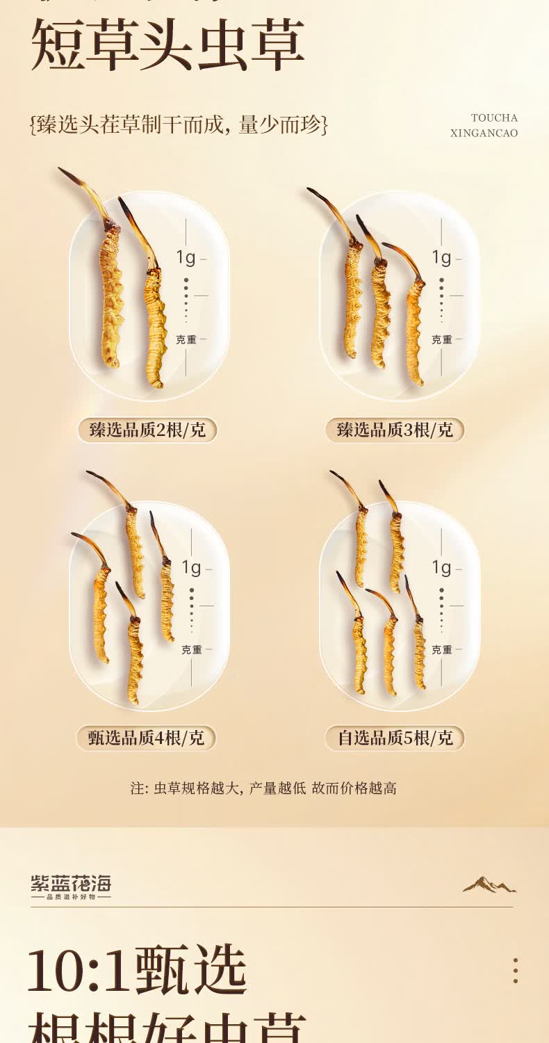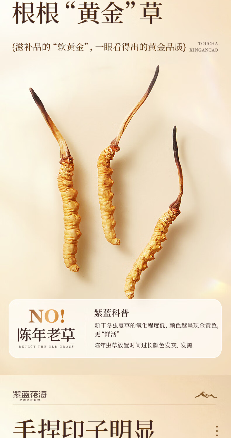 紫蓝花海冬虫夏草 4-5根/g20根冬虫草高海拔新干虫草滋补品【健康礼盒】