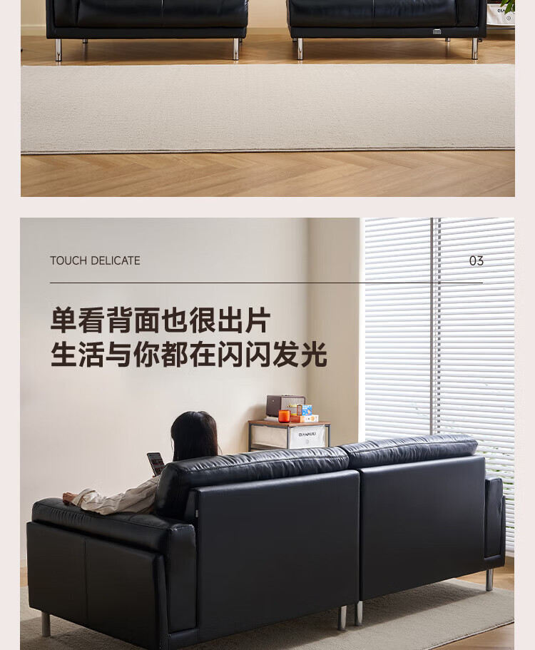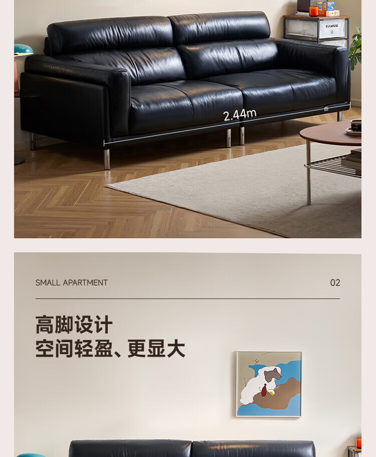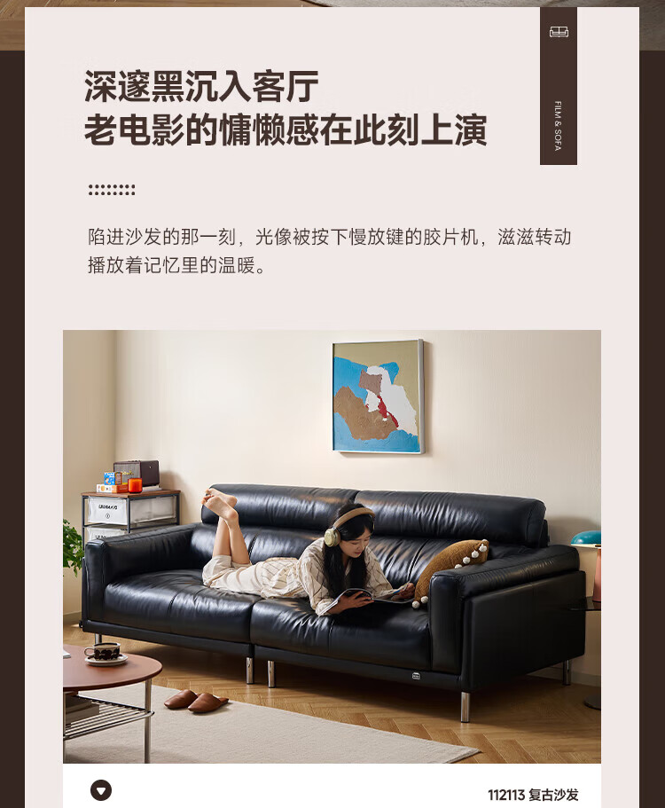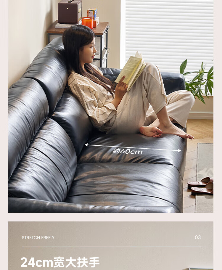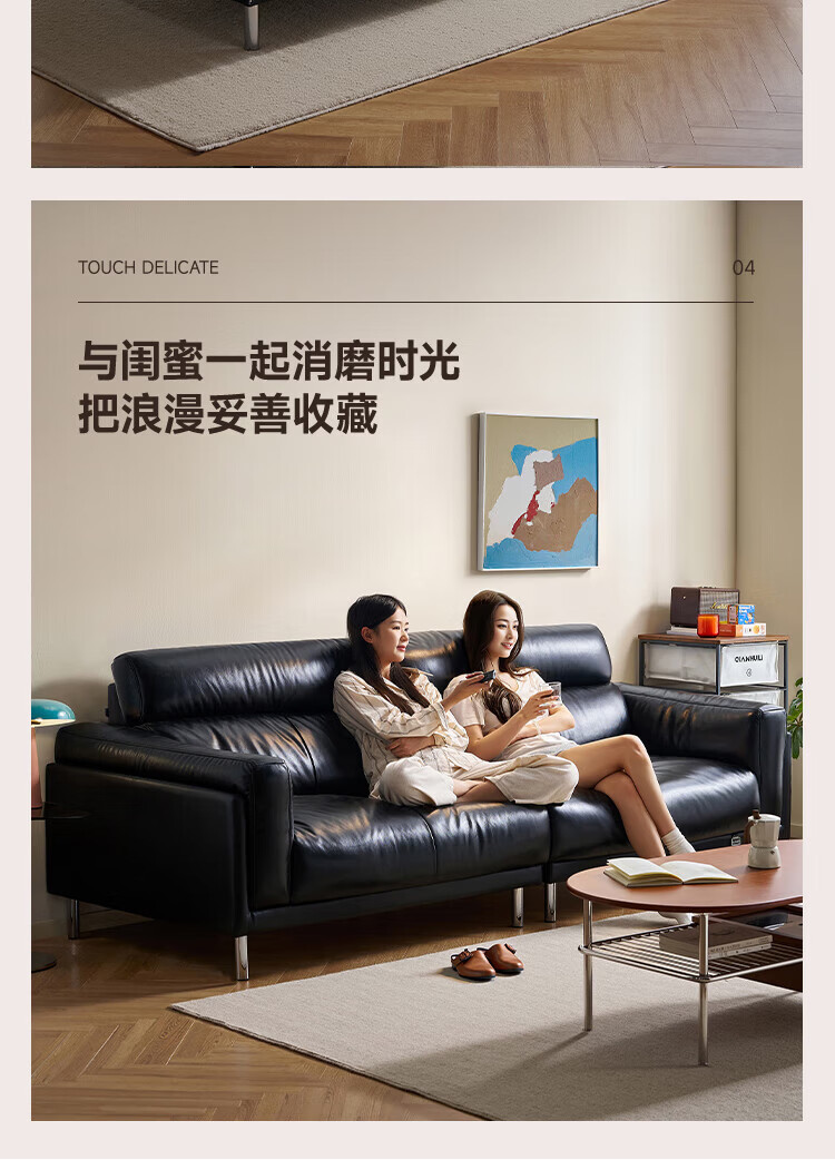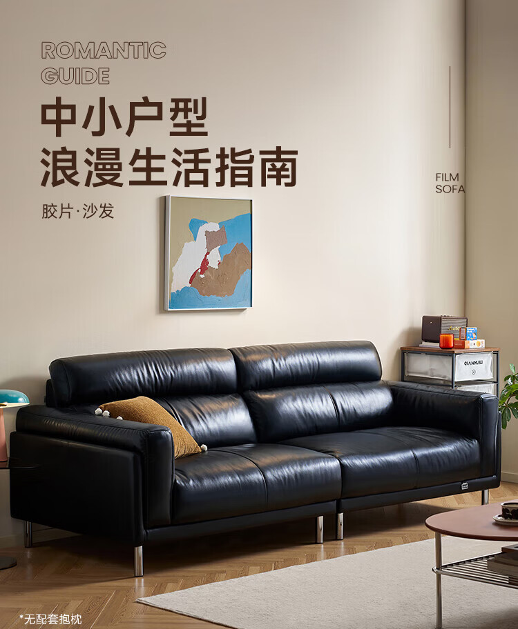 全友(QUANU)【迷瞪清仓货盘】中古风沙发客厅2025新款头层牛皮全真皮直排沙发 【黑色|牛皮】2.44m沙发
