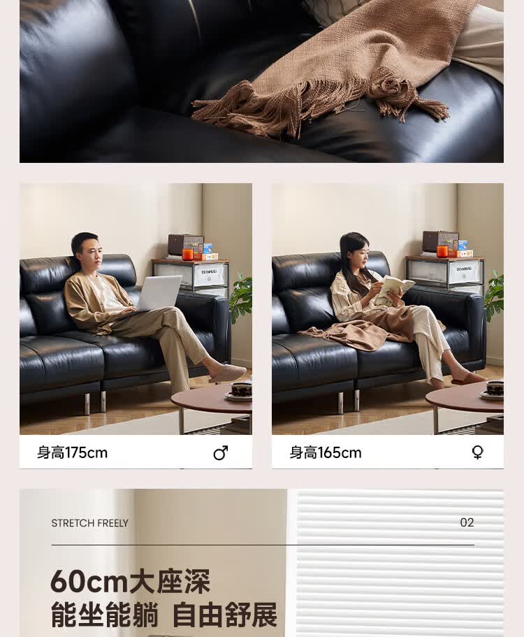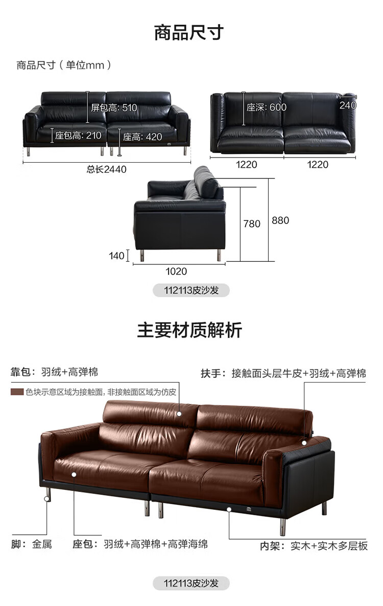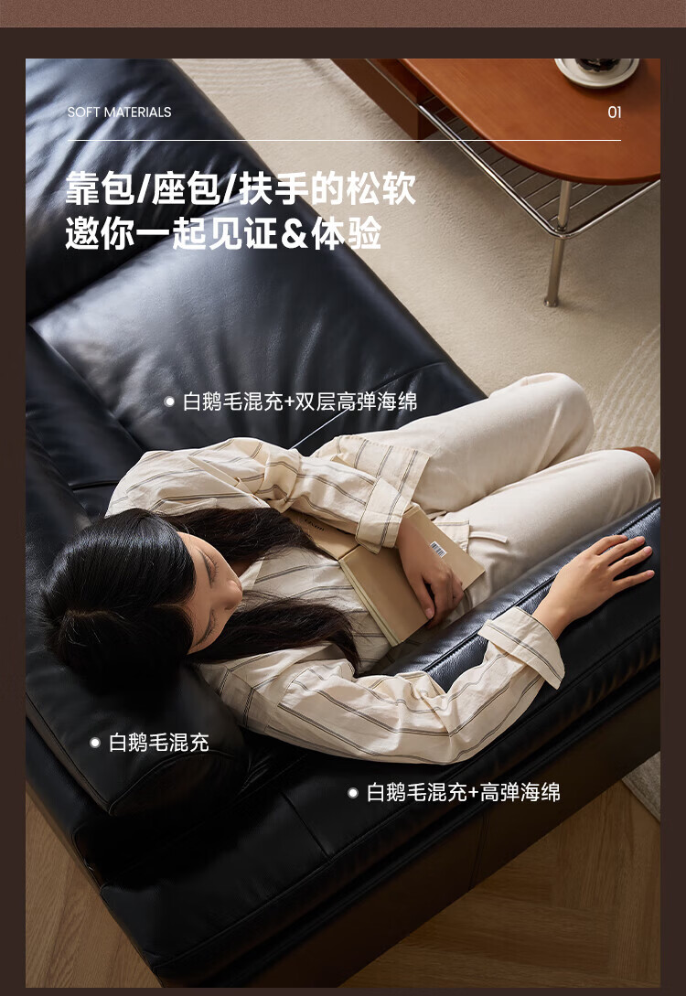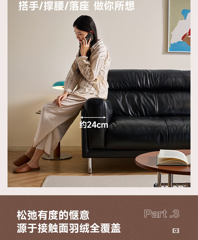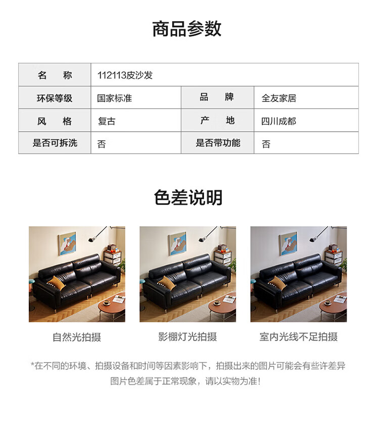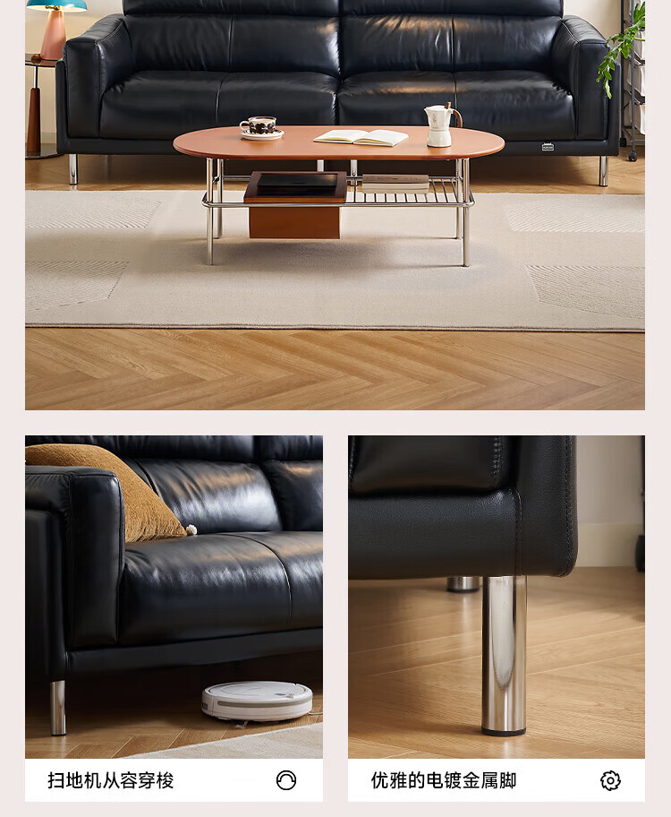 全友(QUANU)【迷瞪清仓货盘】中古风沙发客厅2025新款头层牛皮全真皮直排沙发 【黑色|牛皮】2.44m沙发