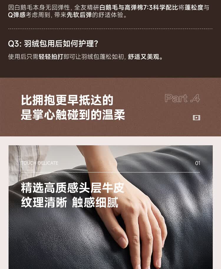 全友家居现代简约茉伊真皮床轻奢高级感2026年新款头层牛皮软包靠背床 【牛皮 | 米白 | 平移+上翻开合电动储物款】 1.8米x2米 床+床头柜*1