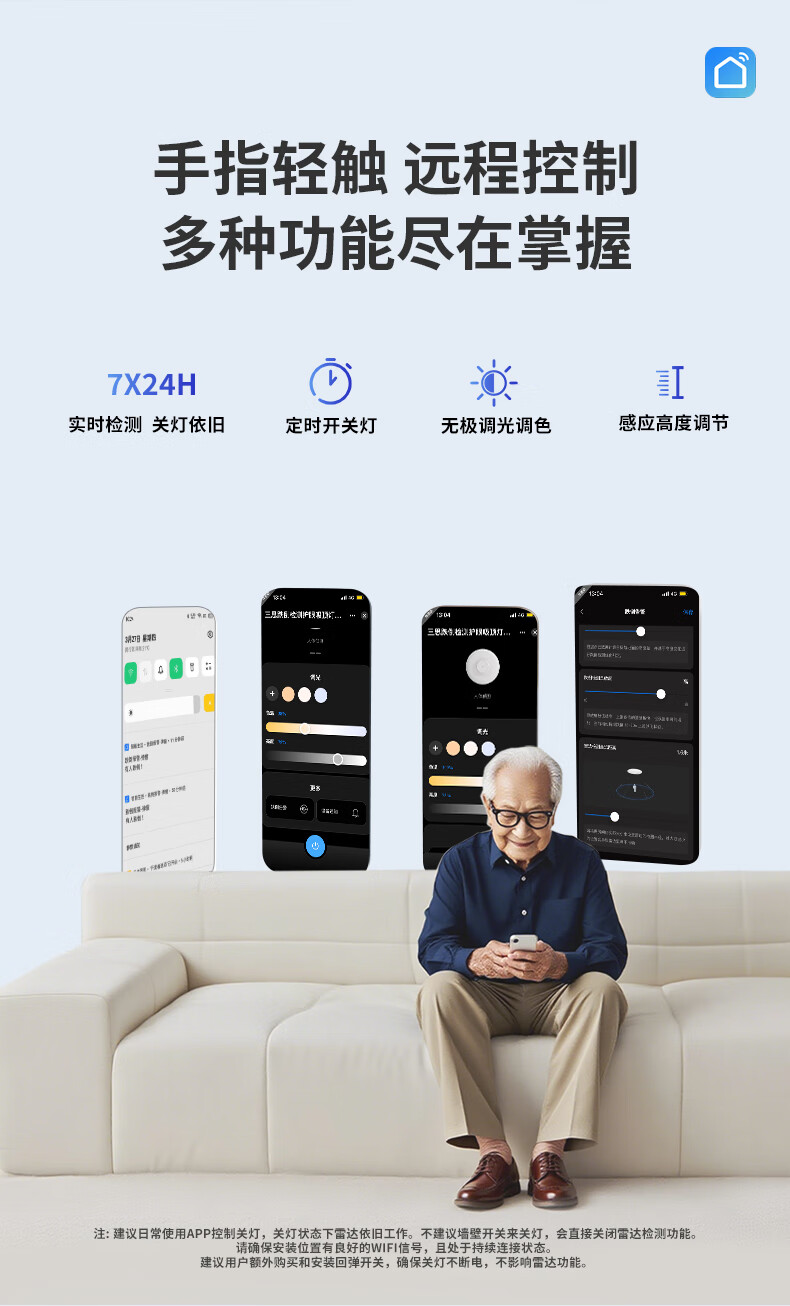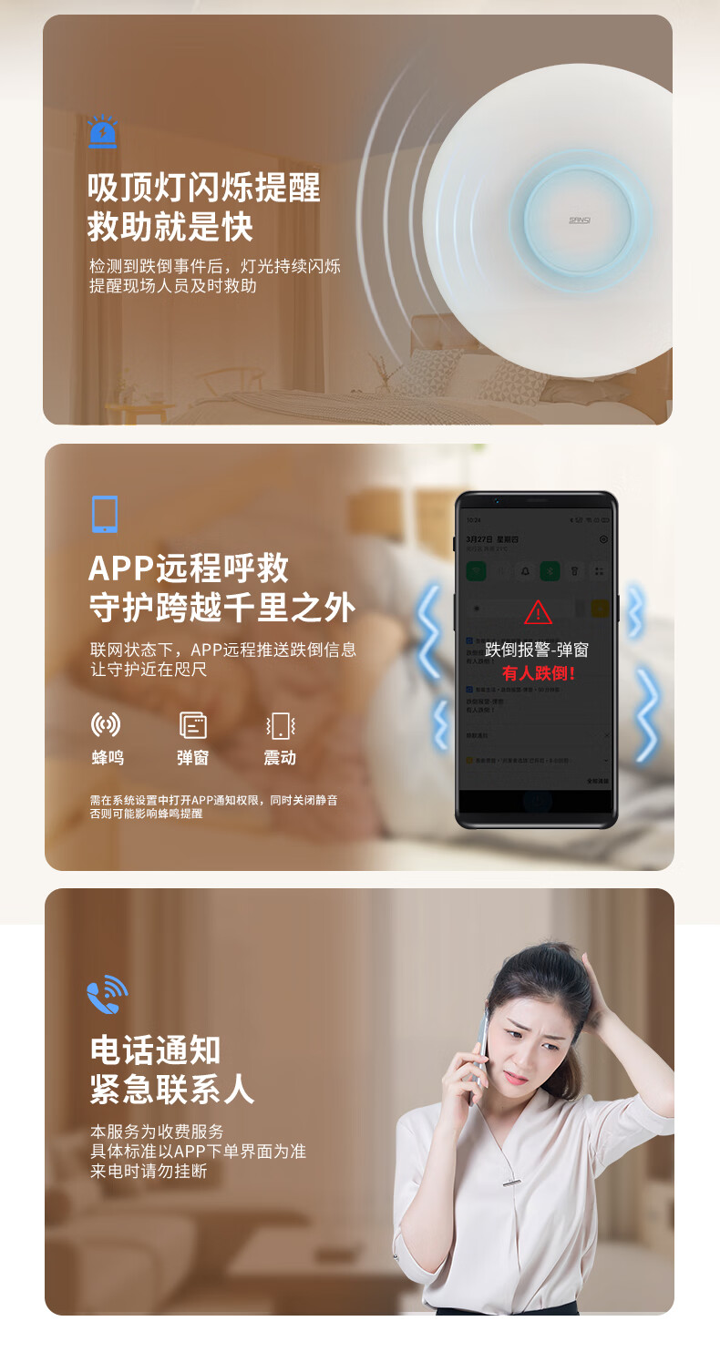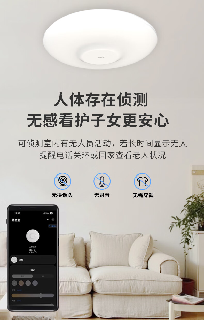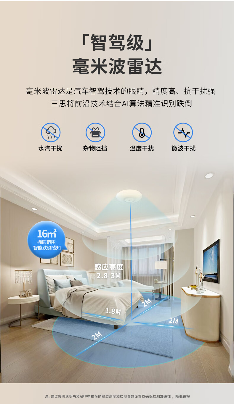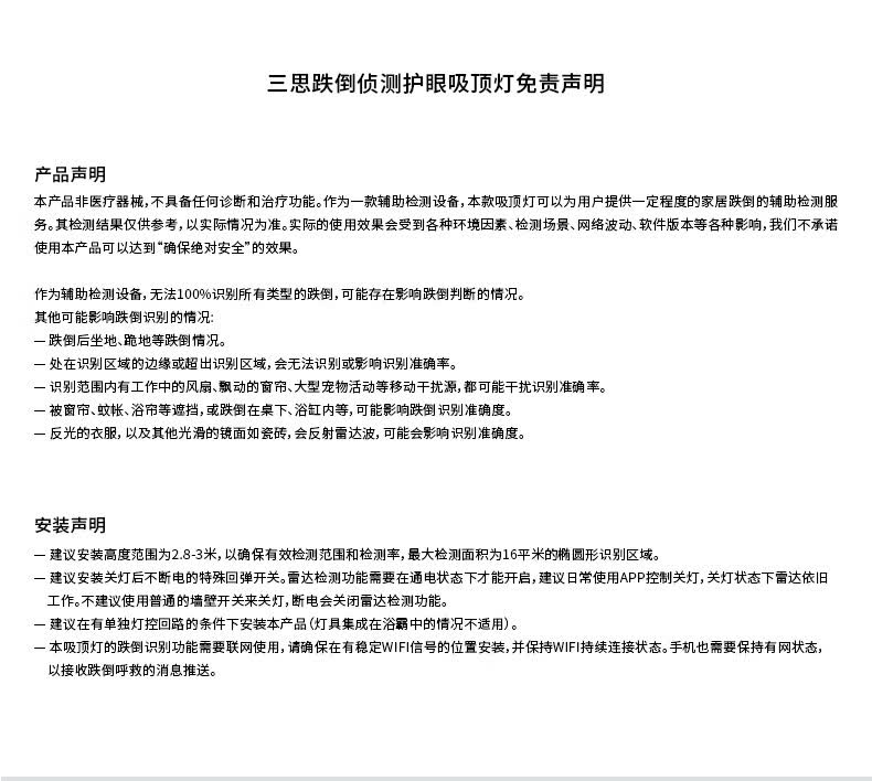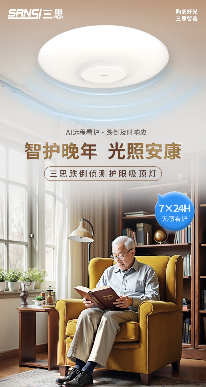 三思吸顶灯雷达感应跌倒侦测远程告警客厅卧室灯卫生间厨房包拆旧安装 18W 15㎡内适用 1800lm 跌倒侦测
