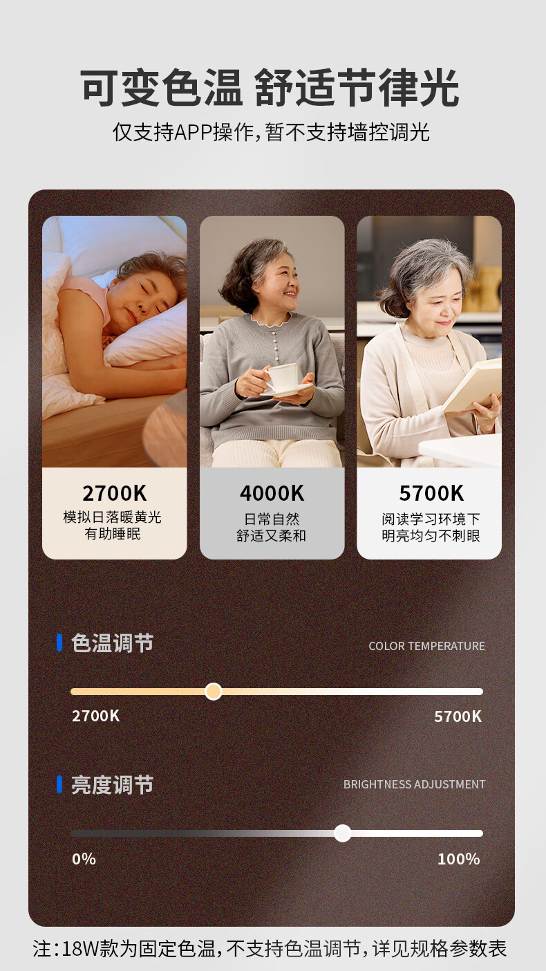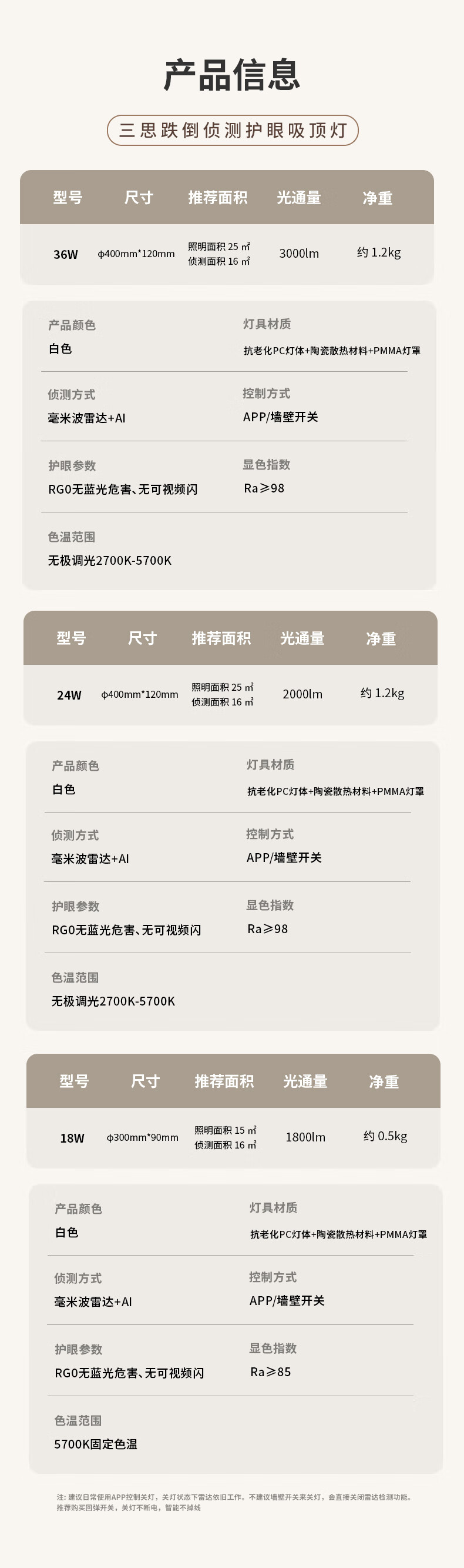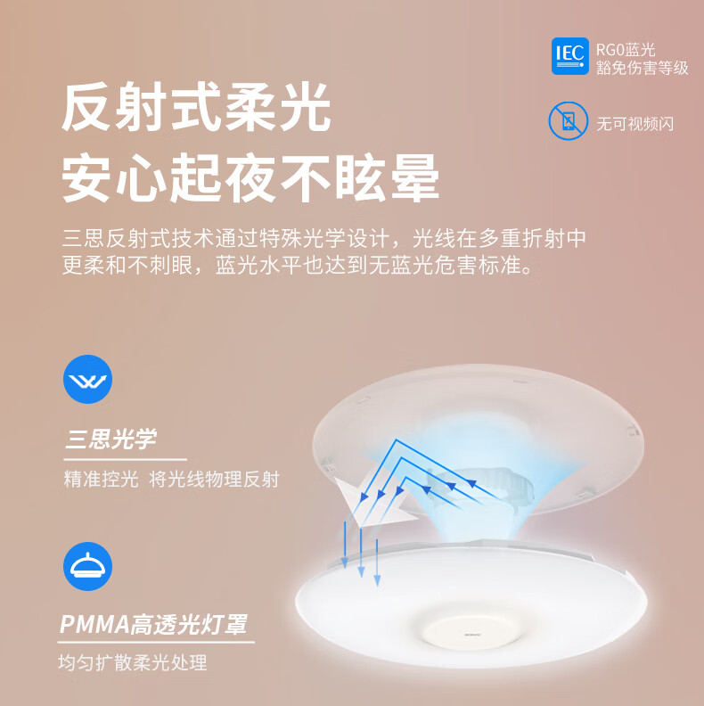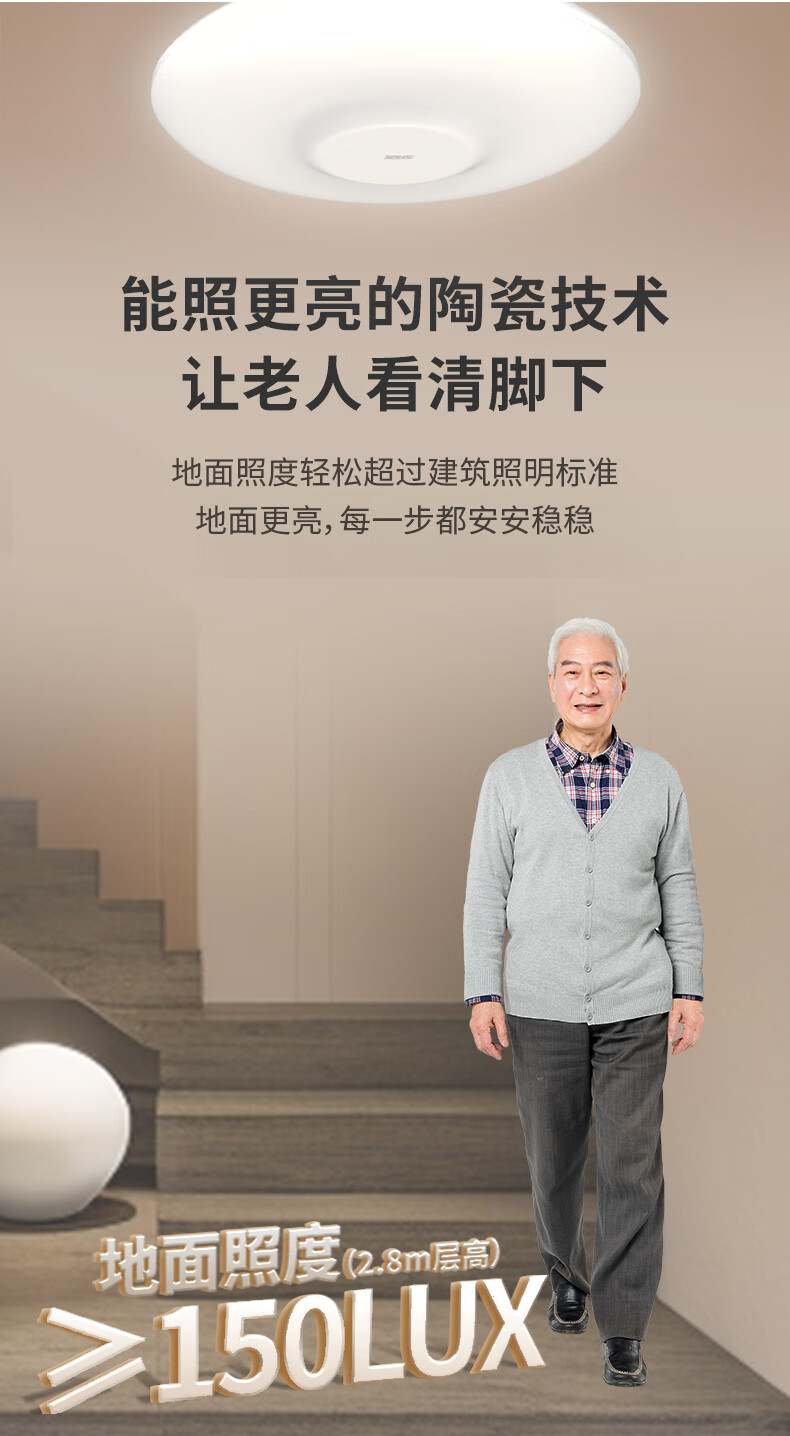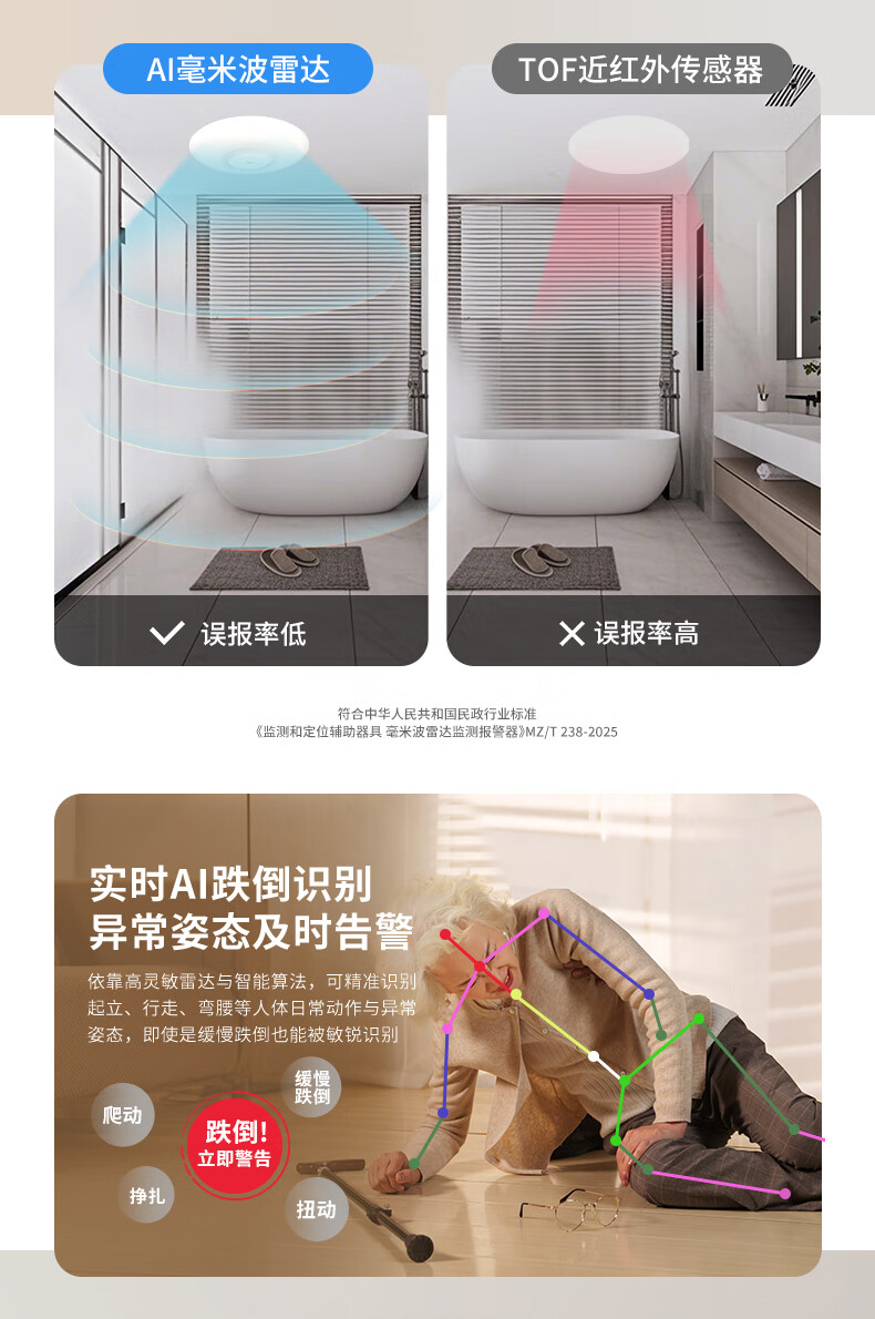 三思吸顶灯雷达感应跌倒侦测远程告警客厅卧室灯卫生间厨房包拆旧安装 18W 15㎡内适用 1800lm 跌倒侦测