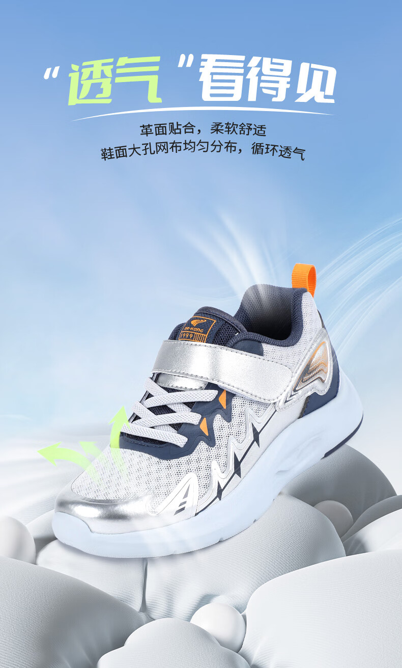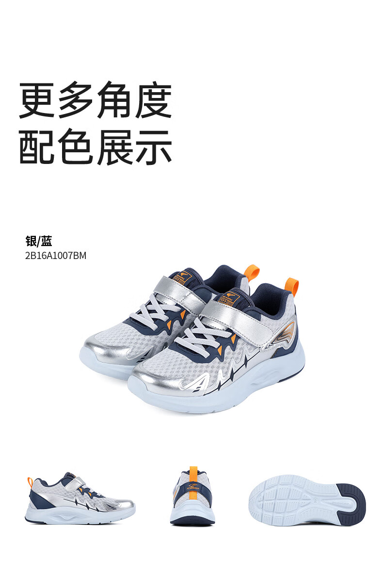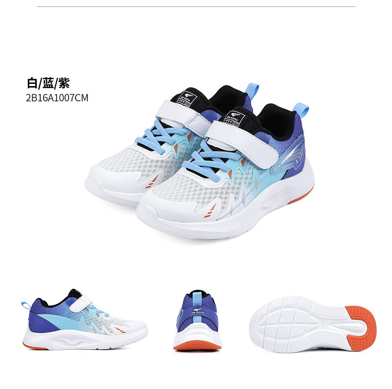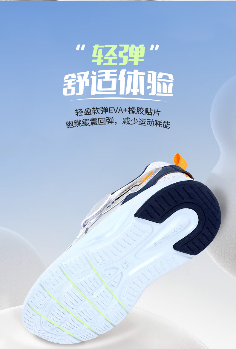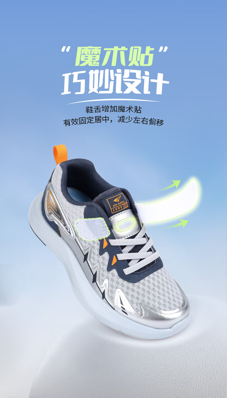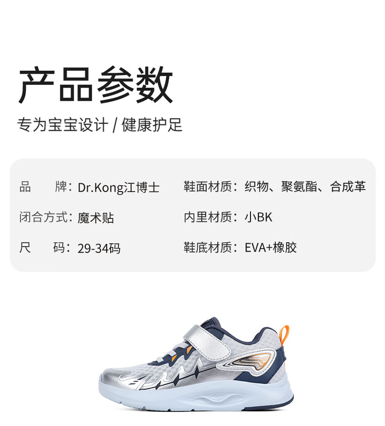 江博士春季男女童潮流运动儿童鞋免系鞋带魔术贴透气舒适学步鞋 银/蓝 34 脚长约20.9-21.5