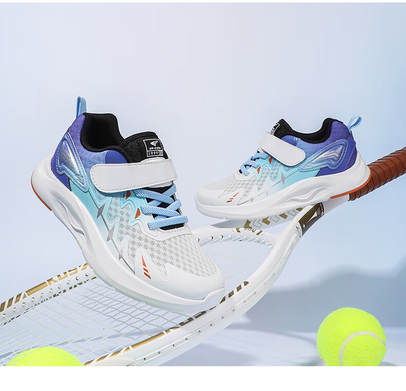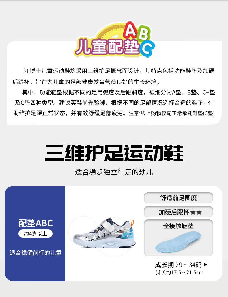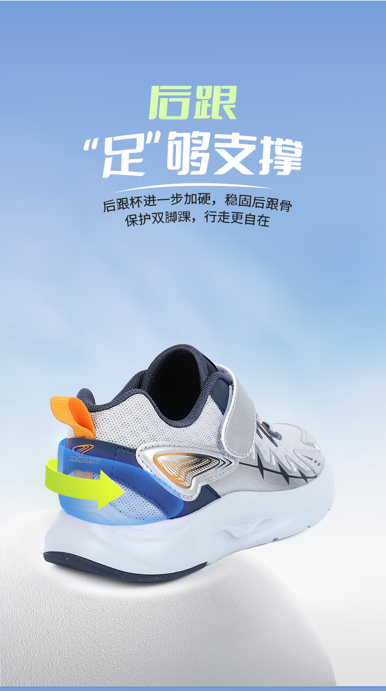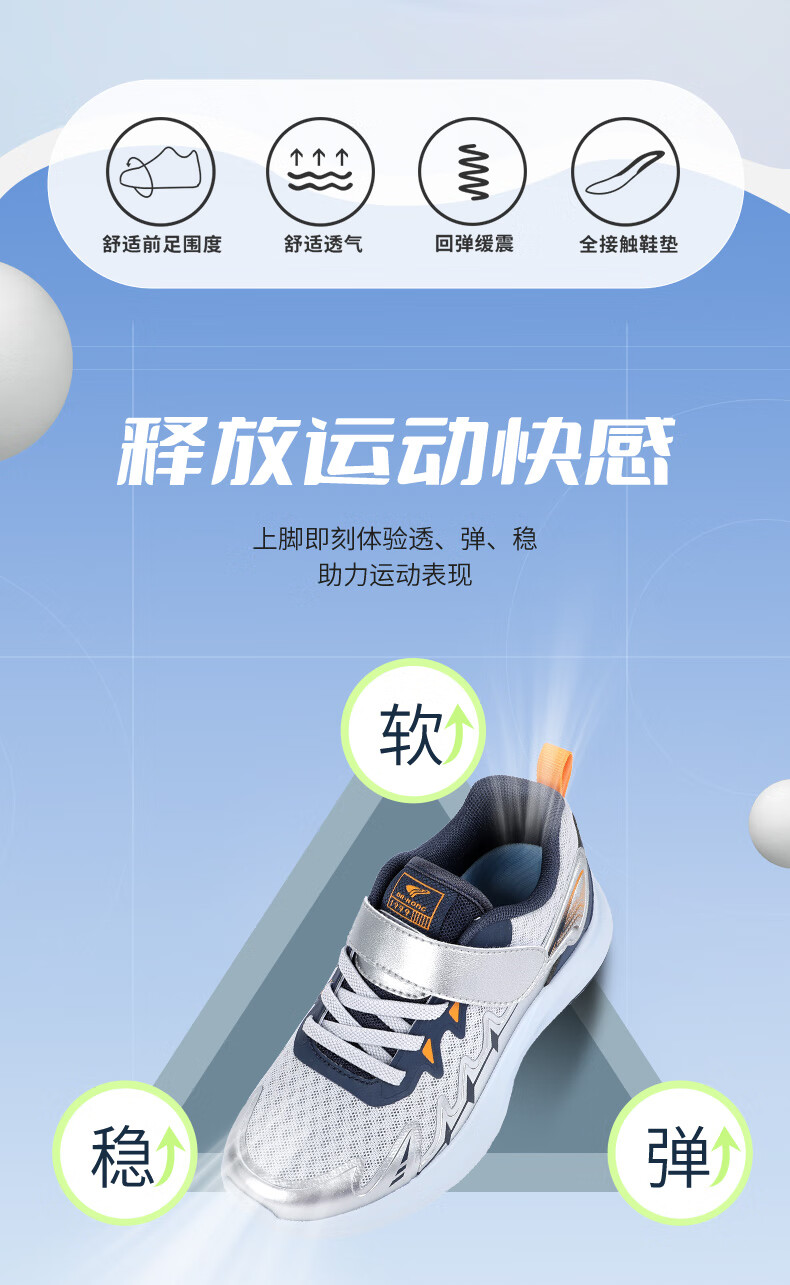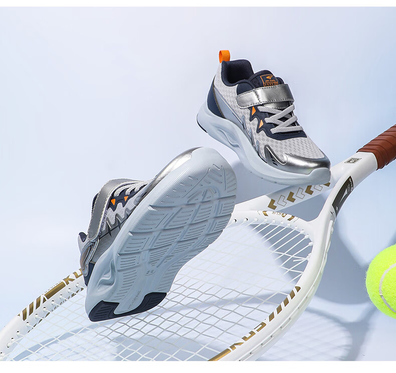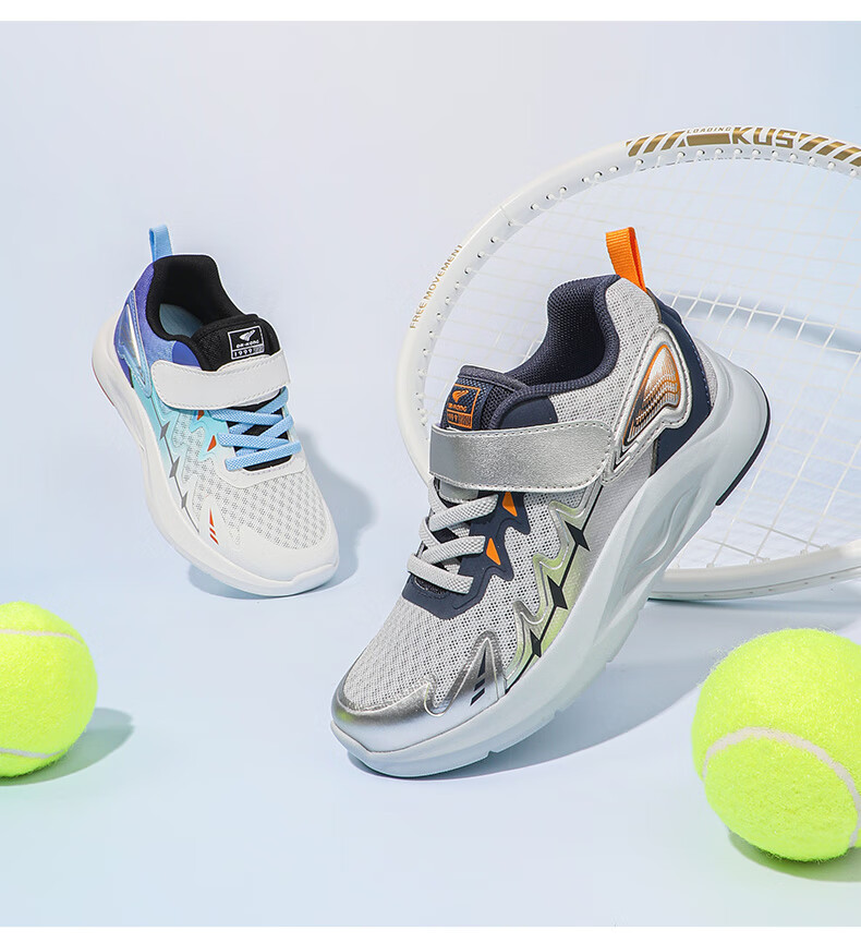 江博士春季男女童潮流运动儿童鞋免系鞋带魔术贴透气舒适学步鞋 银/蓝 34 脚长约20.9-21.5