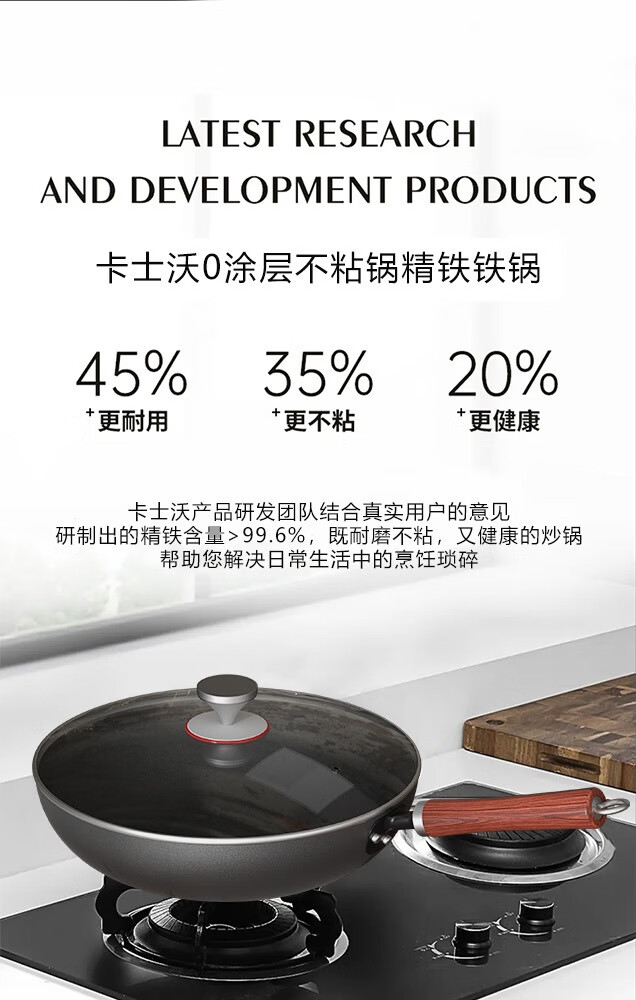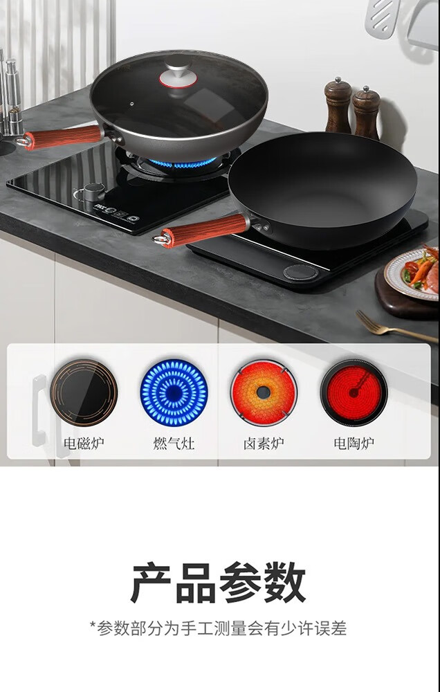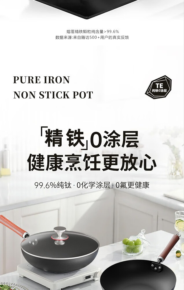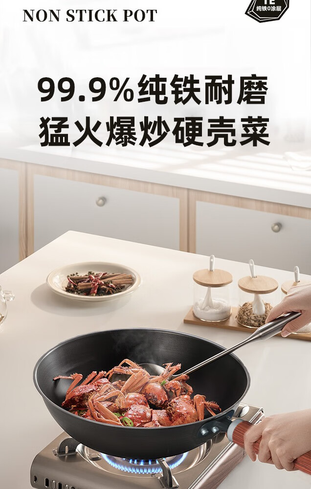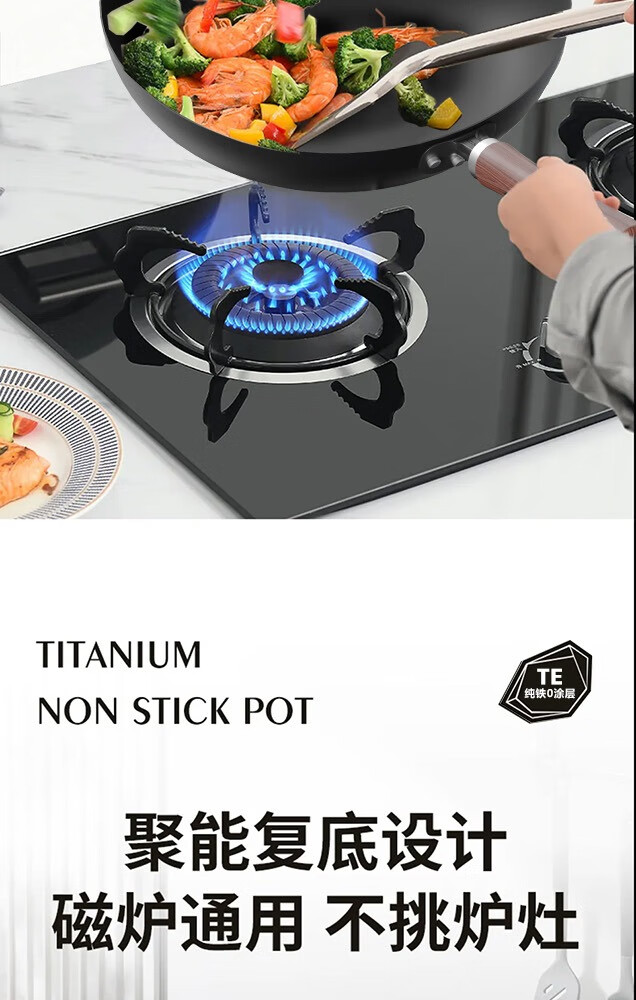 Lovefamily德国品牌精铁锤纹铁锅炒锅0涂层不粘锅免开锅 古法手工锻打传家锅 免开锅 传承版【圆底无耳】+玻璃盖 32cm