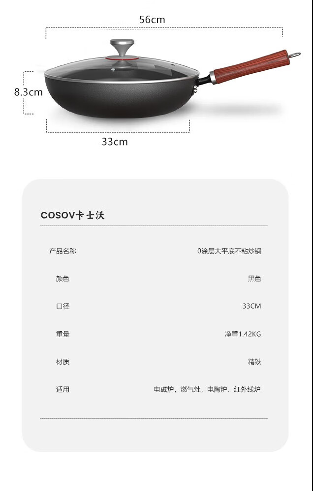 COSOVO炒菜锅无涂层不粘锅家用炒锅爆炒锅大平底锅轻便电磁炉燃气灶通用 【旗舰款】大平底锅 33cm 33cm