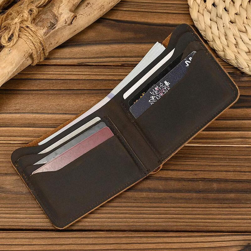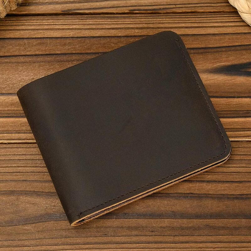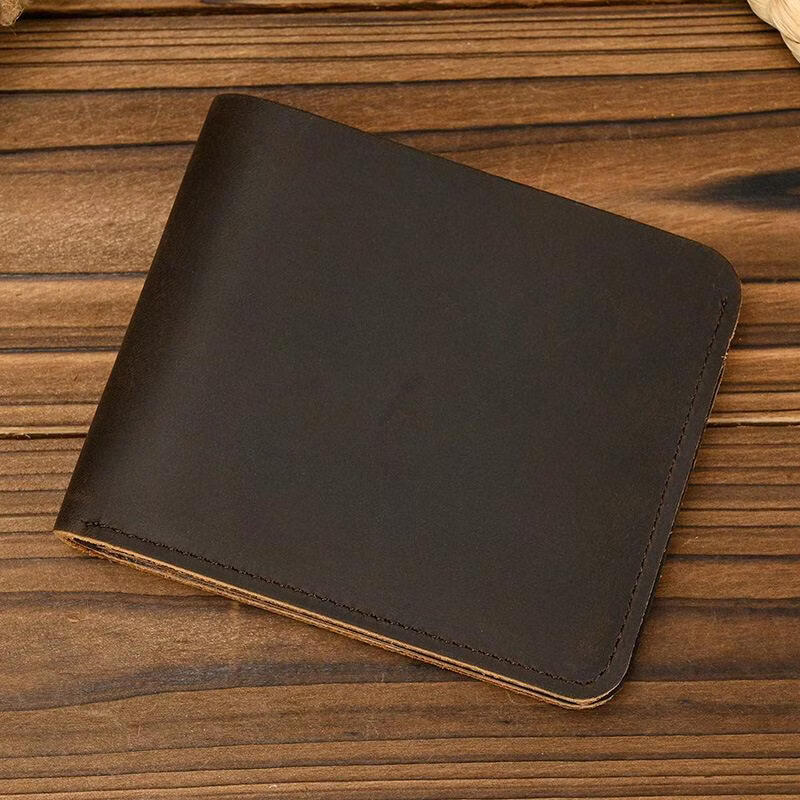 EKK日本进口品牌钱包男短款真皮耐磨复古轻薄大容量卡位驾驶证头层牛 深棕色