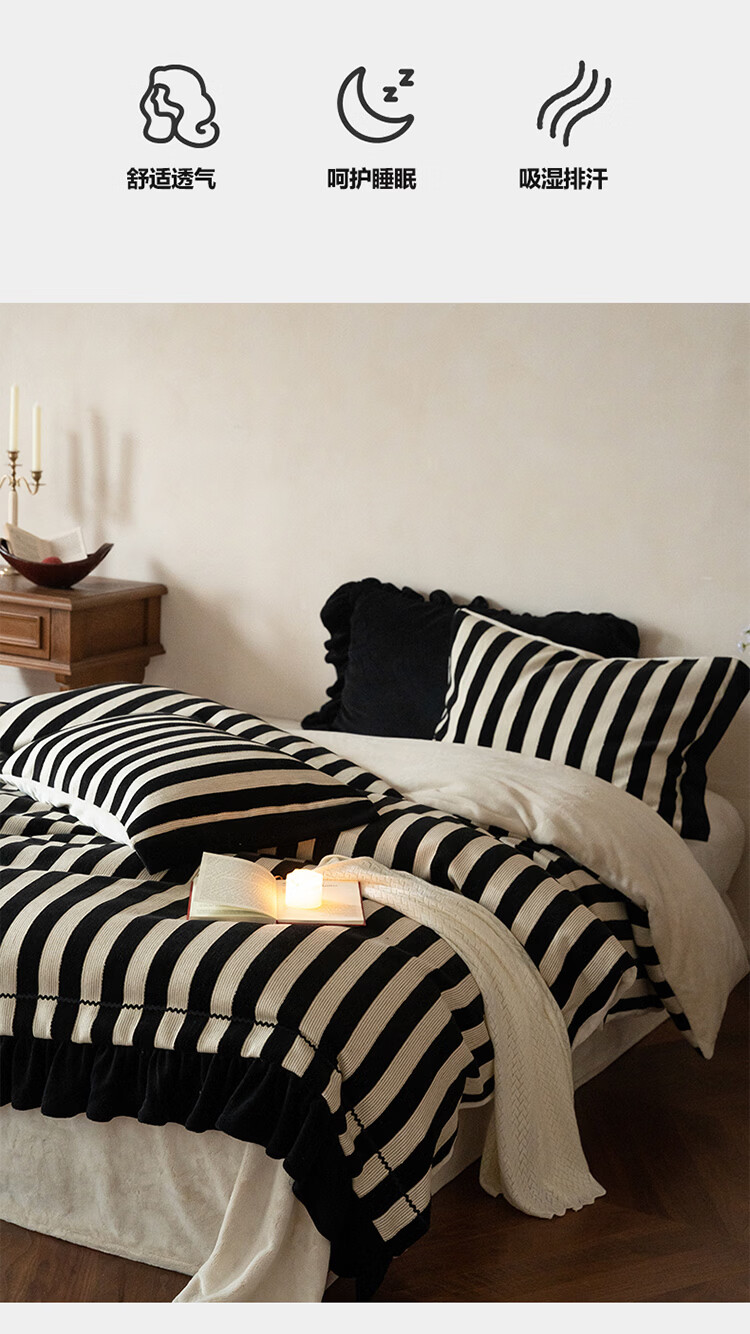 ROLAND LIVE秋冬加厚保暖绒四件套牛奶绒雪呢绒被套床单冬季柔软床上用品 YM 牛奶绒雪呢绒四件套-安缇 1.5米床 床单款 【被套200*230cm】