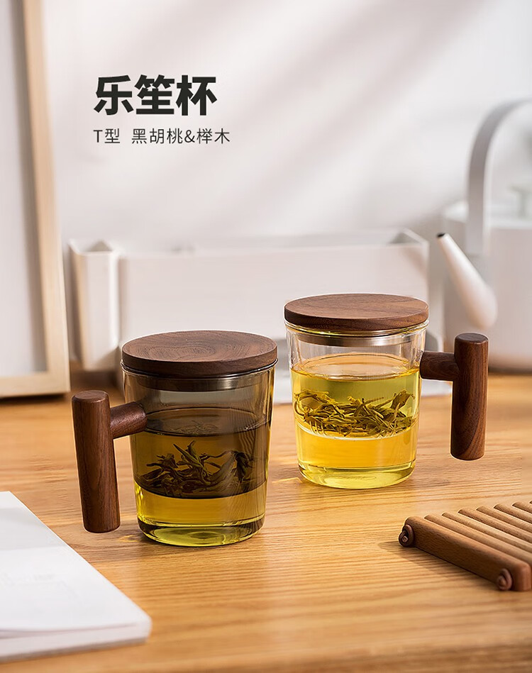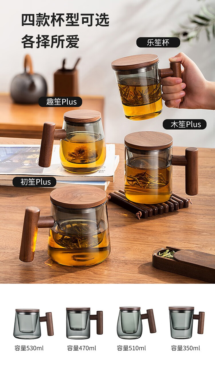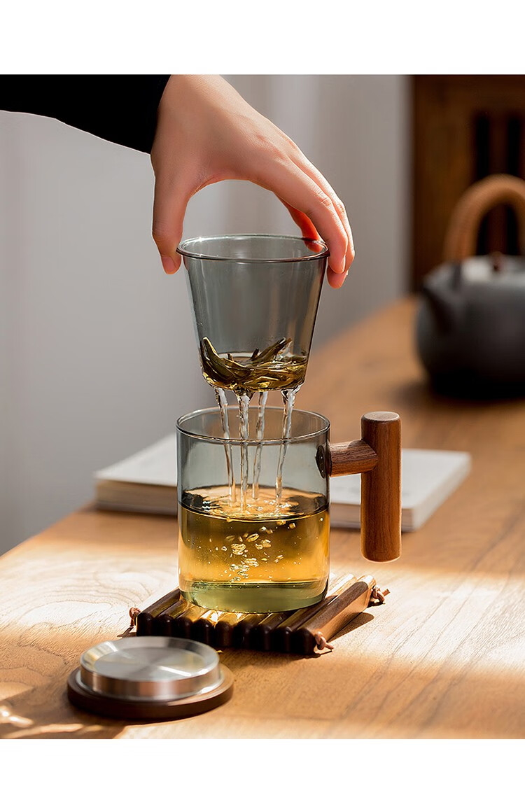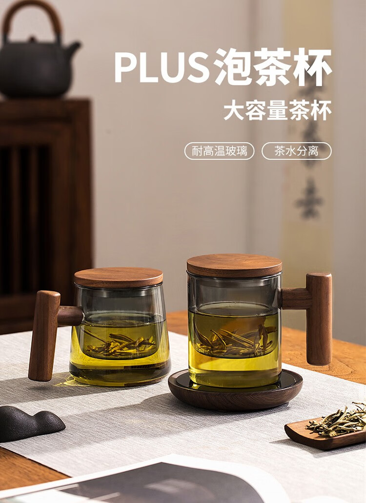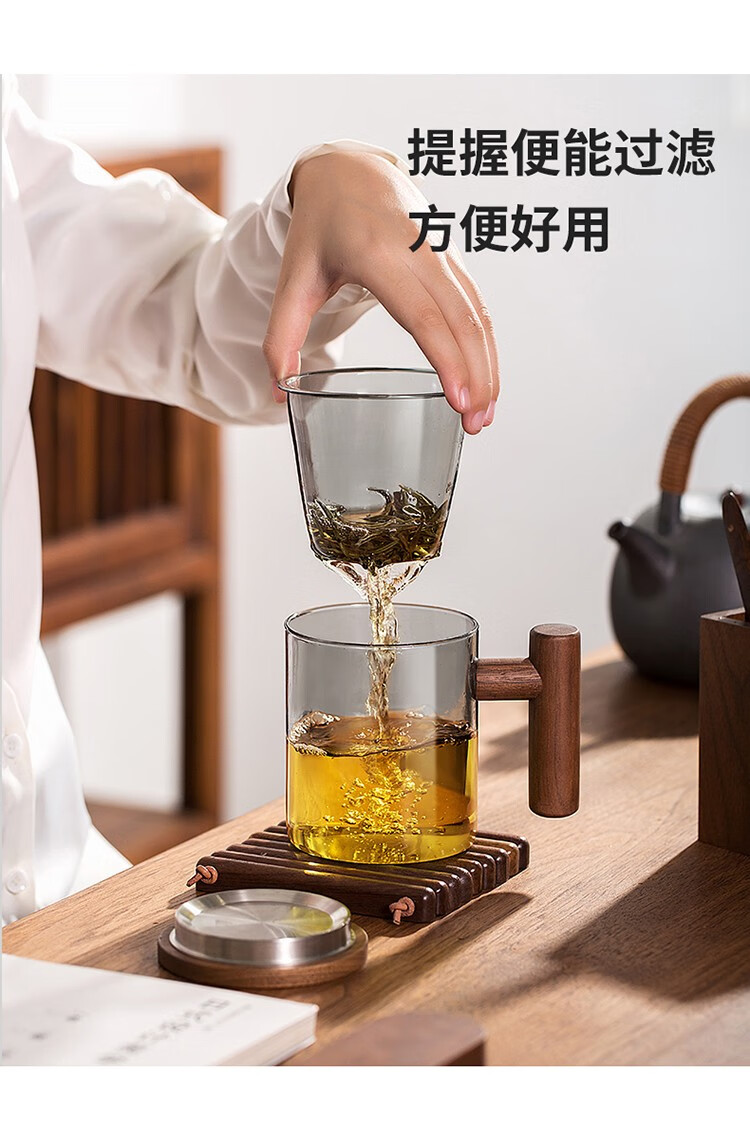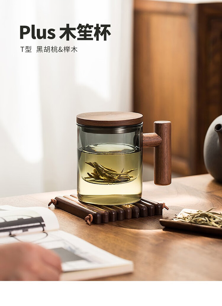 木笙玩物(MUSHENGWANWU) 玻璃泡茶杯带盖过滤水杯男士简约大容量茶水分离茶道杯子 透明乐笙杯T型7A-黑胡桃