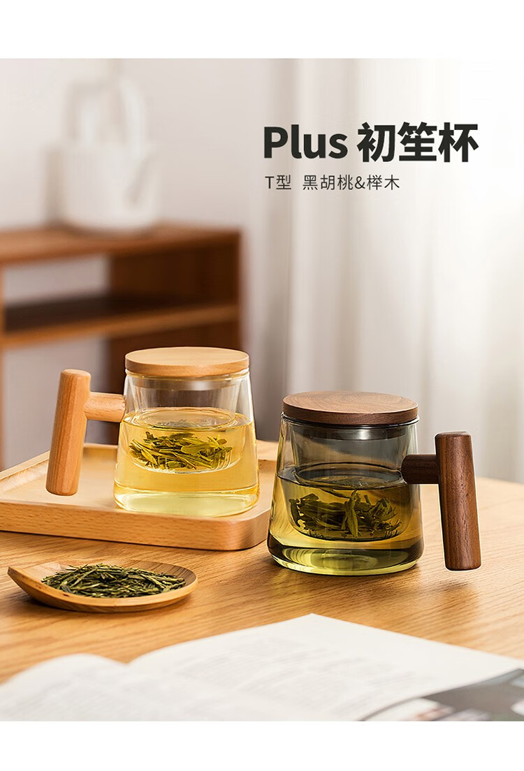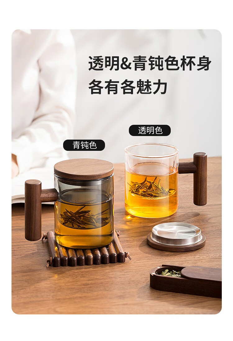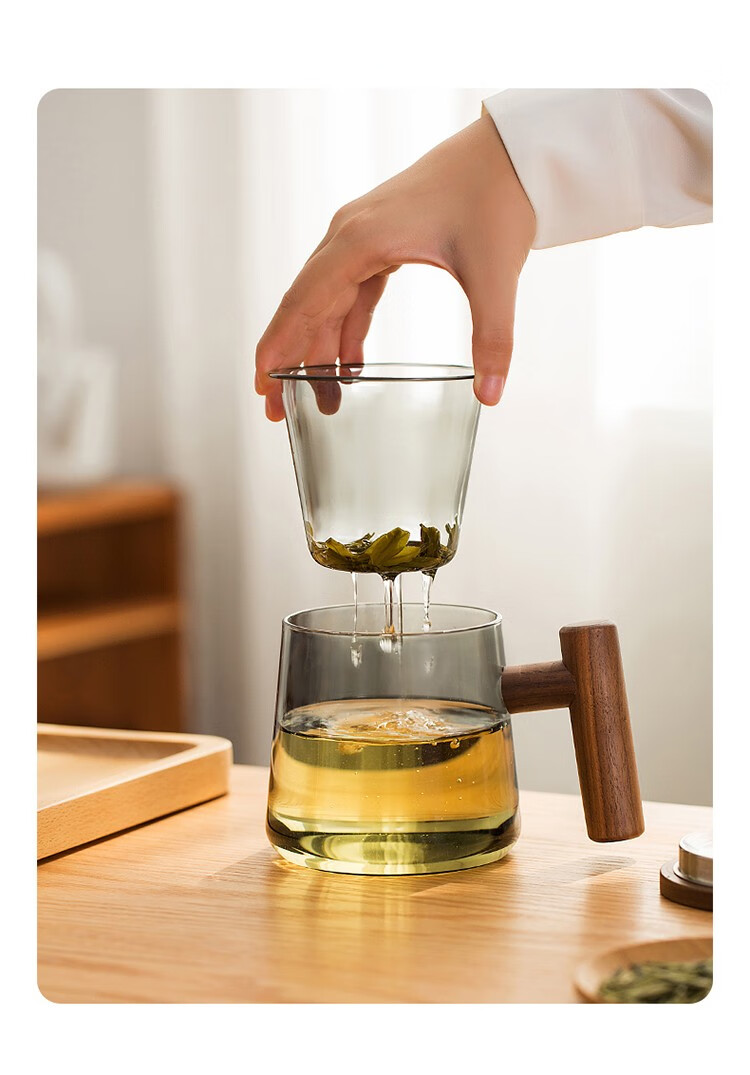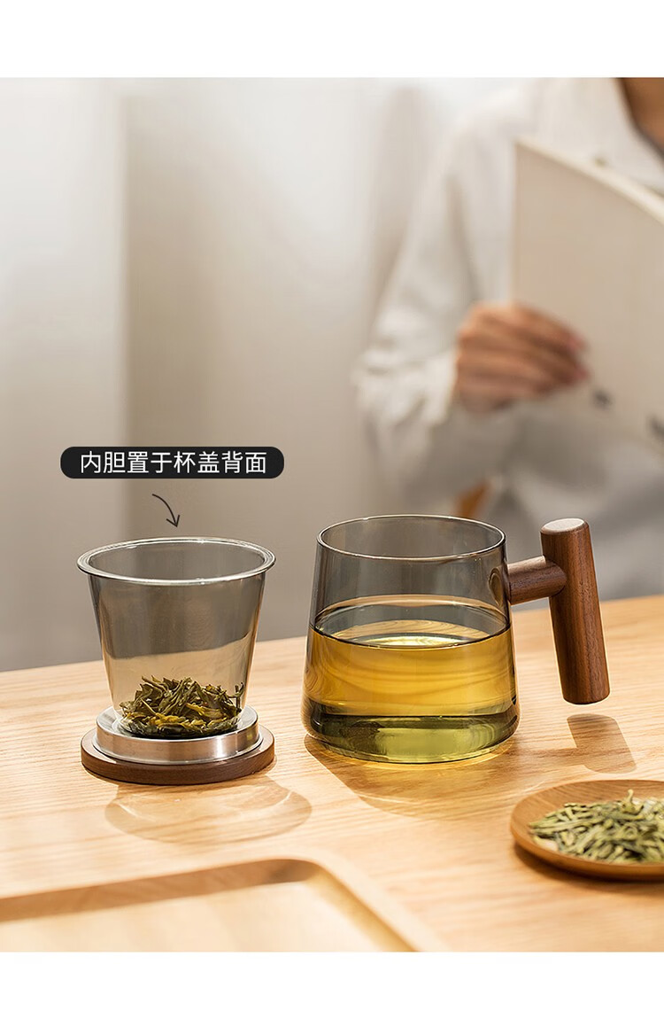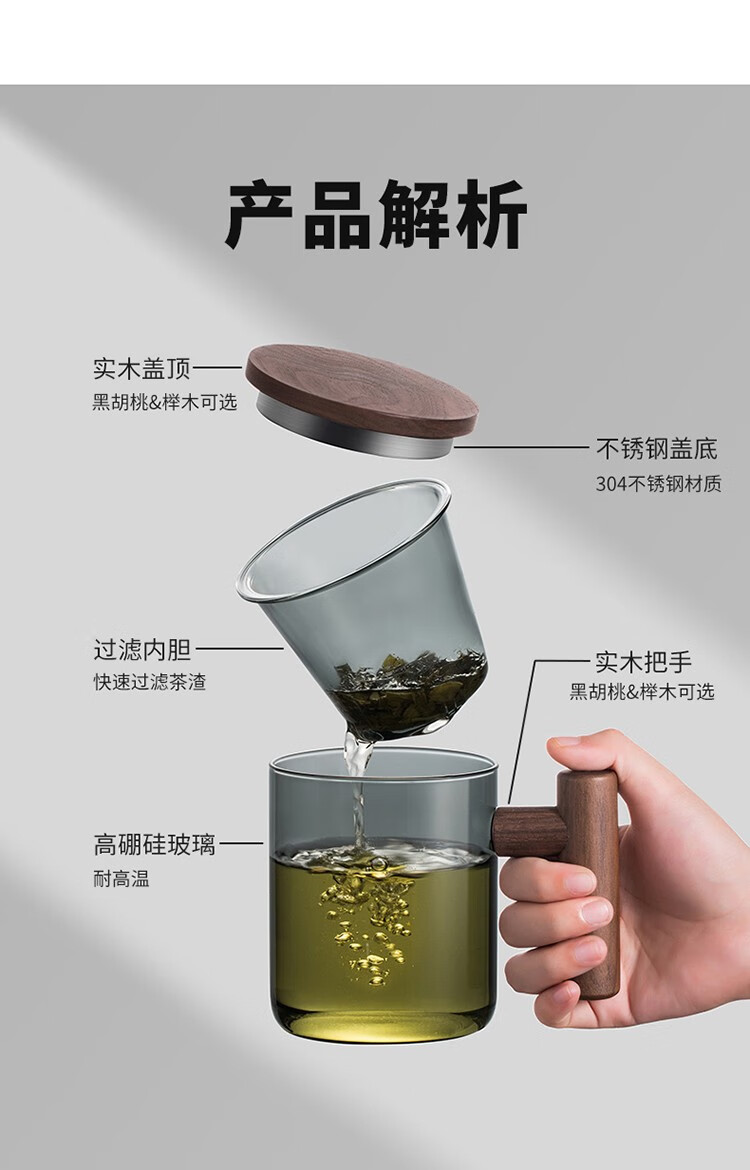 木笙玩物(MUSHENGWANWU) 玻璃泡茶杯带盖过滤水杯男士简约大容量茶水分离茶道杯子 透明乐笙杯T型7A-黑胡桃