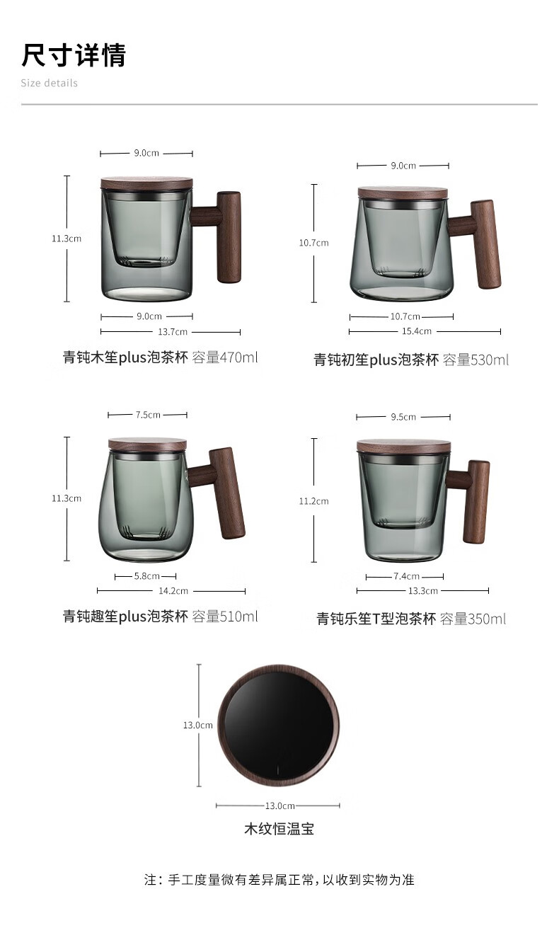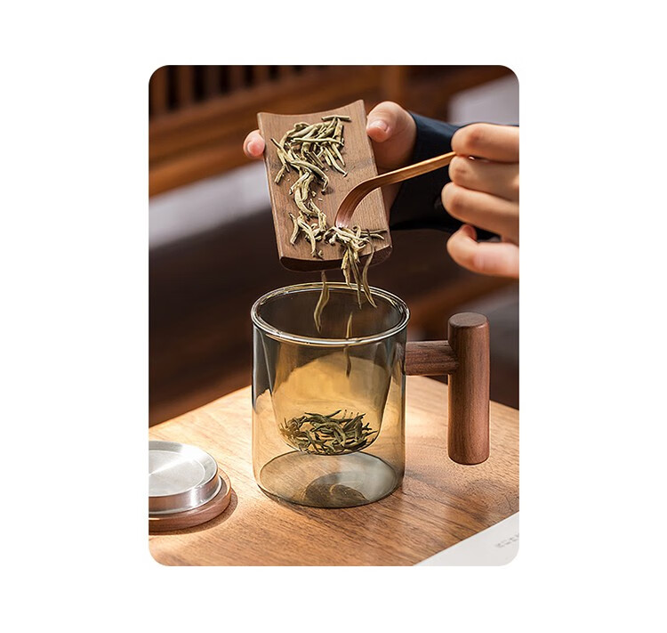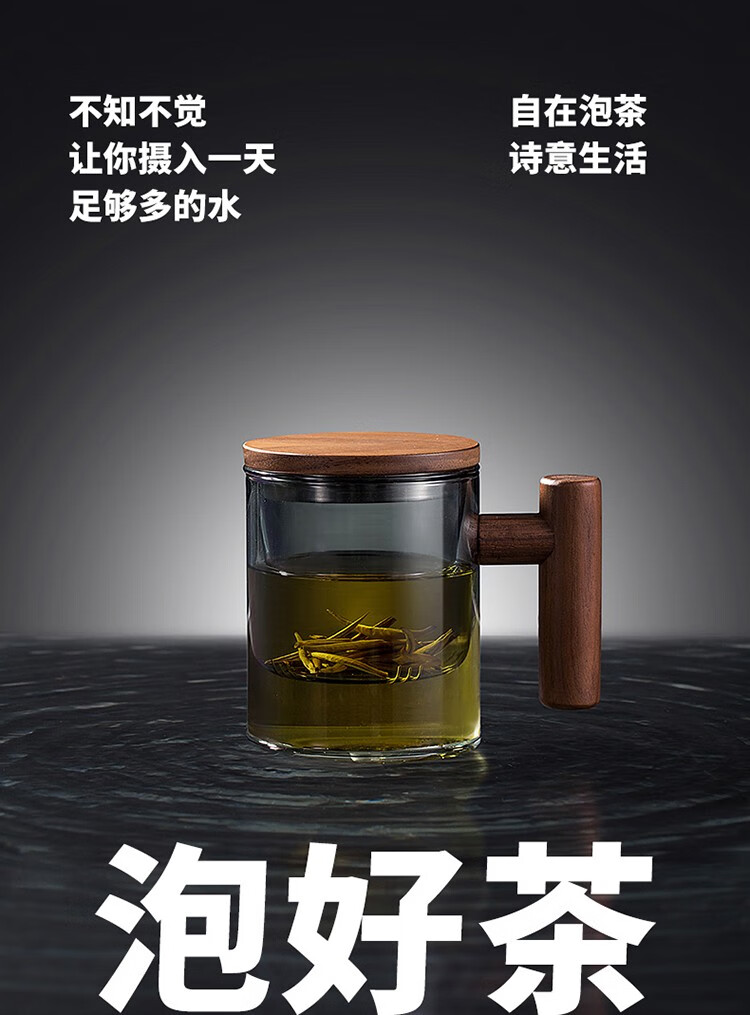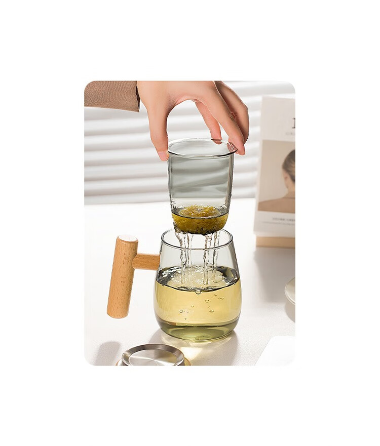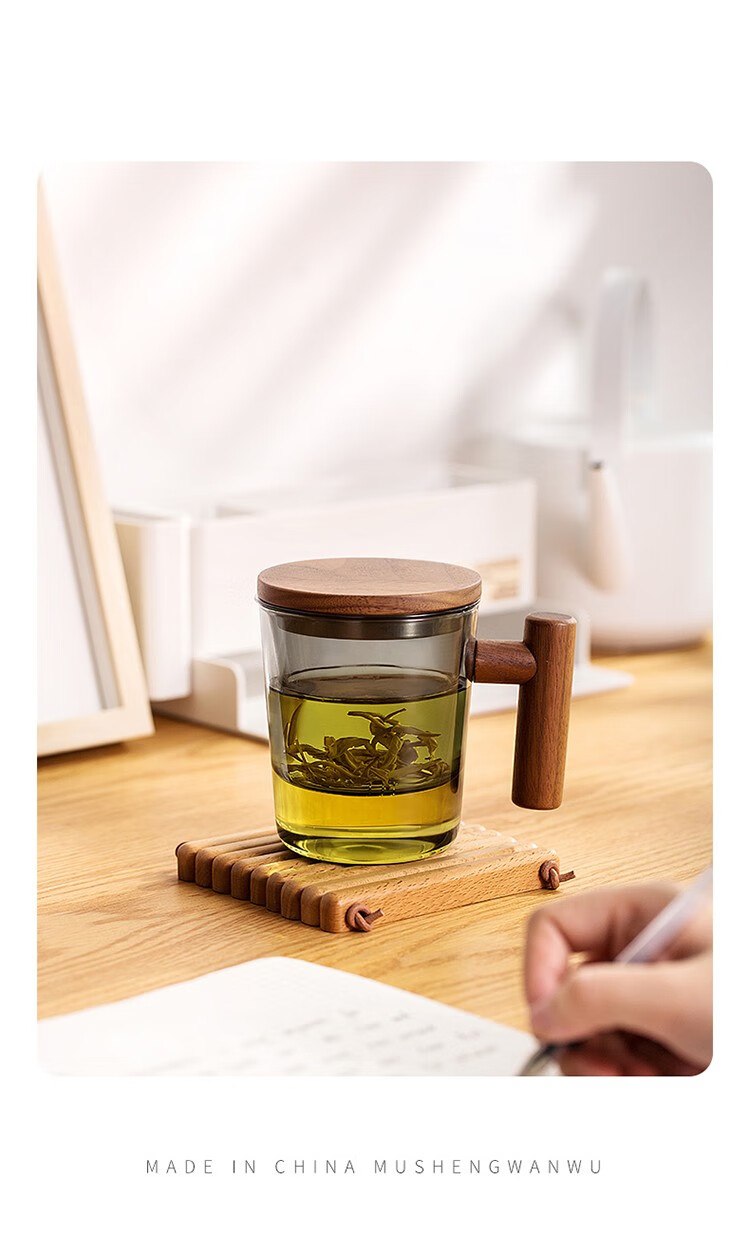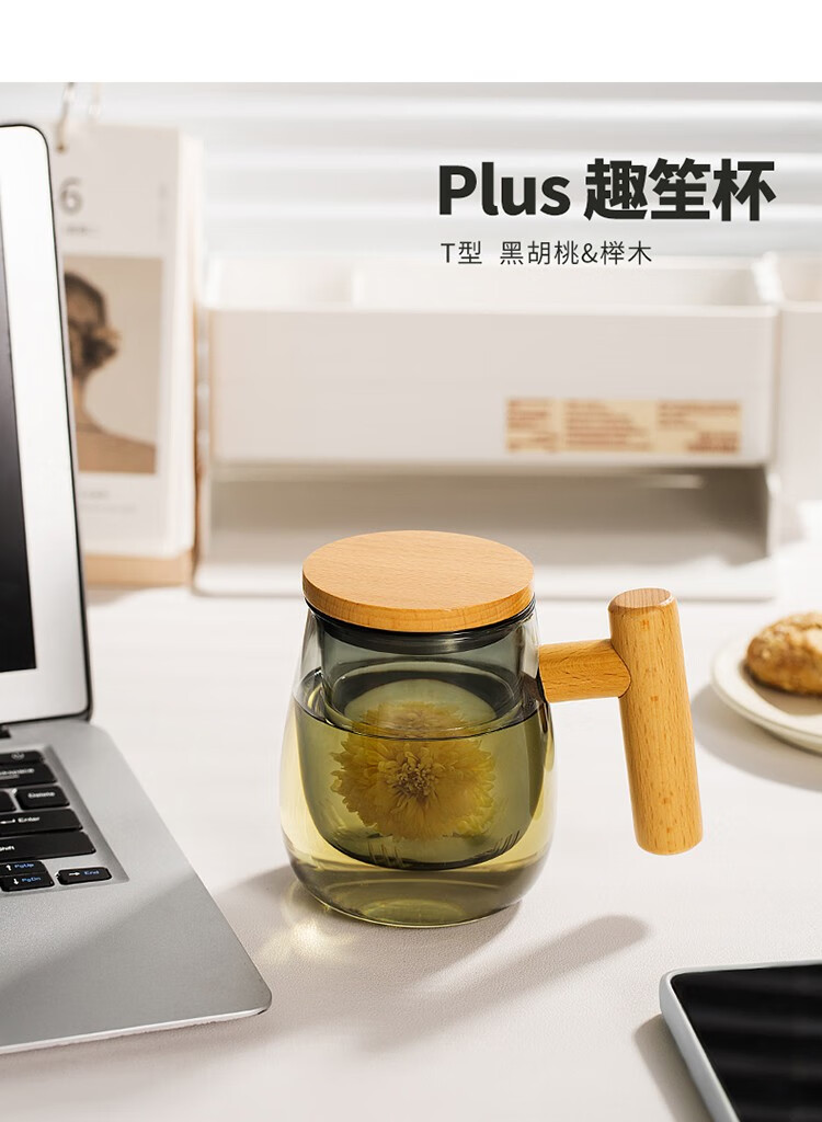 木笙玩物(MUSHENGWANWU) 玻璃泡茶杯带盖过滤水杯男士简约大容量茶水分离茶道杯子 透明乐笙杯T型7A-黑胡桃