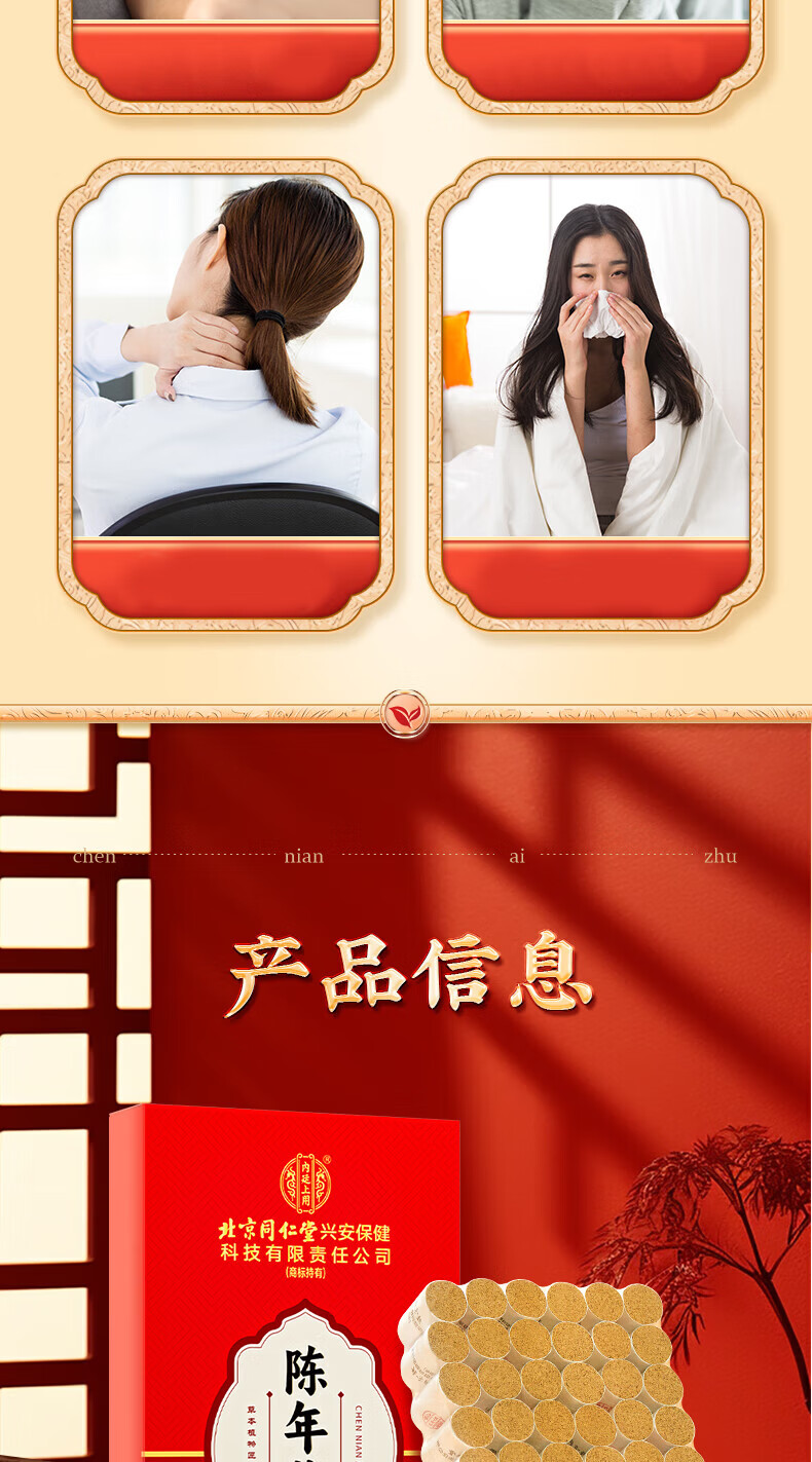 内廷上用北京同仁堂陈年艾灸柱家用熏灸纯艾条养生艾灸艾绒柱66粒/盒 1盒装