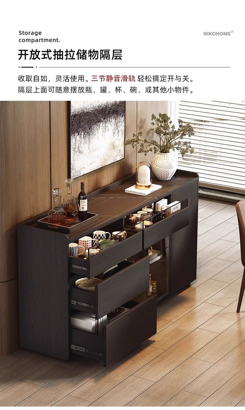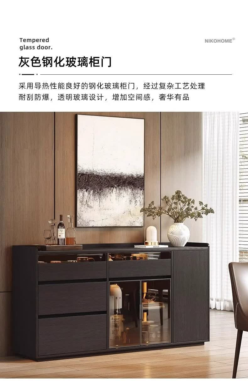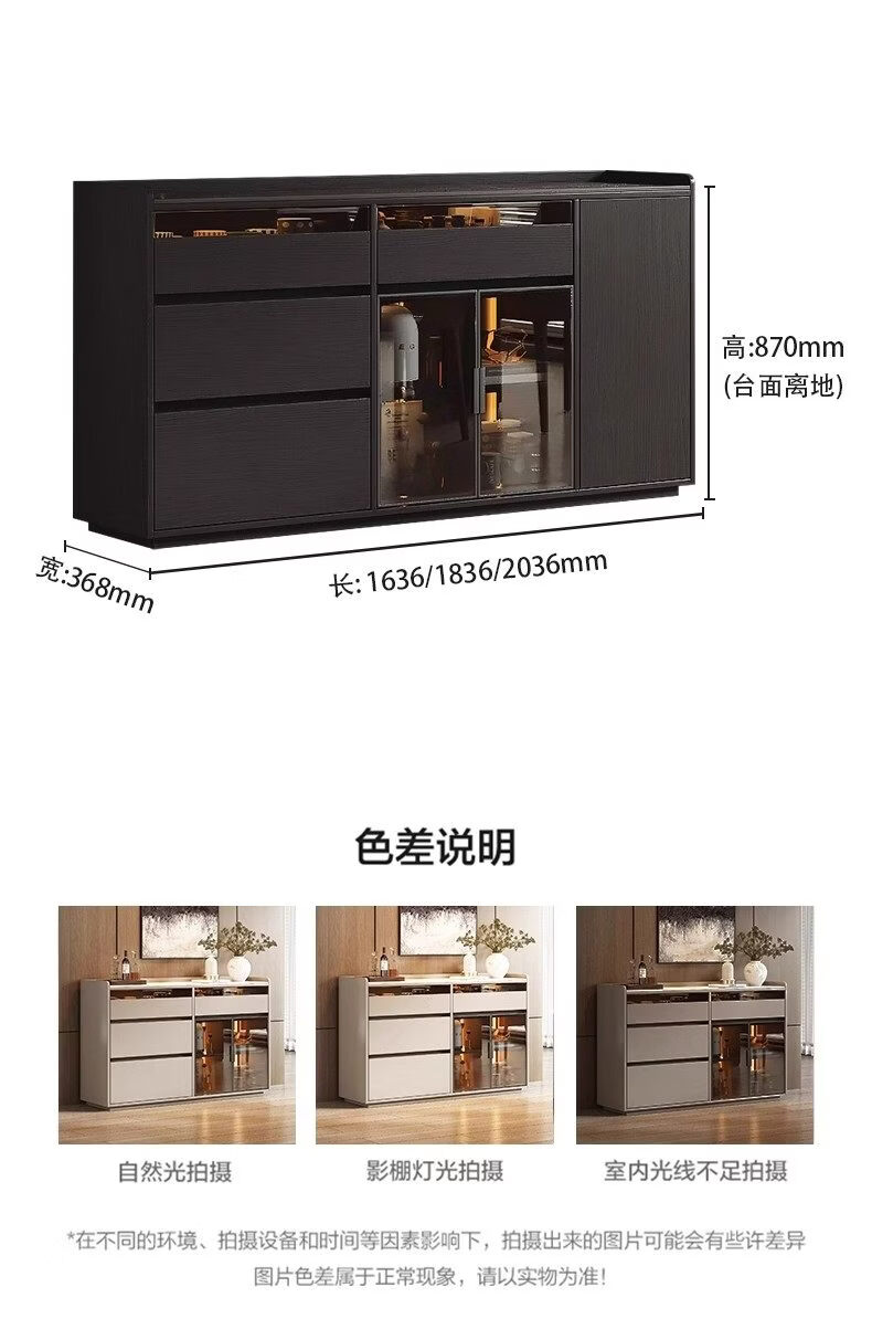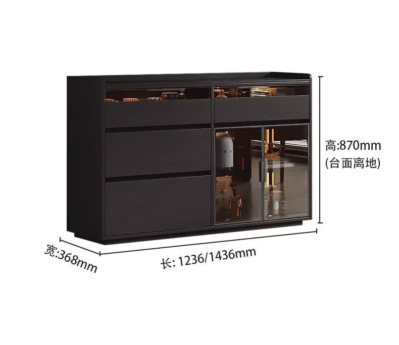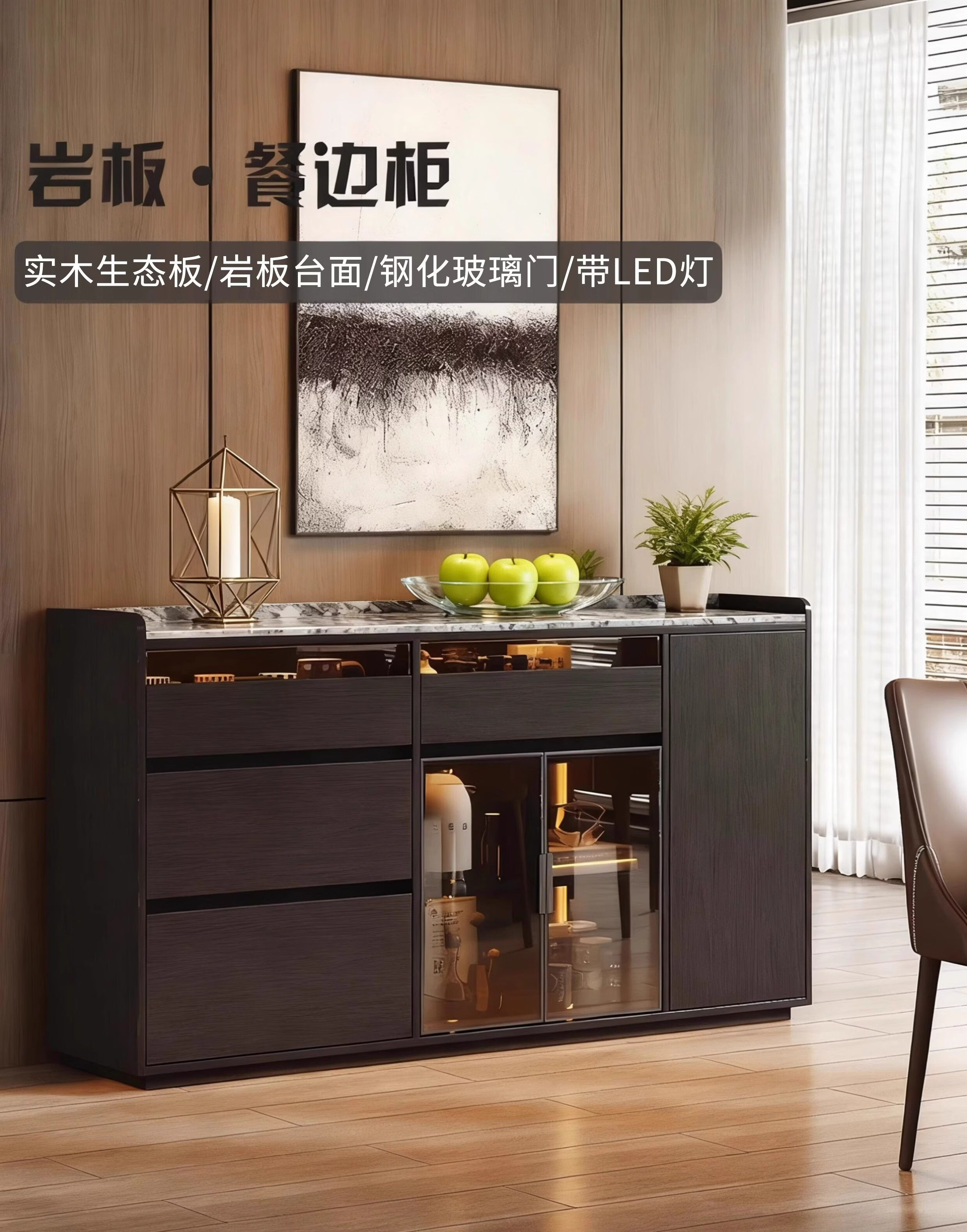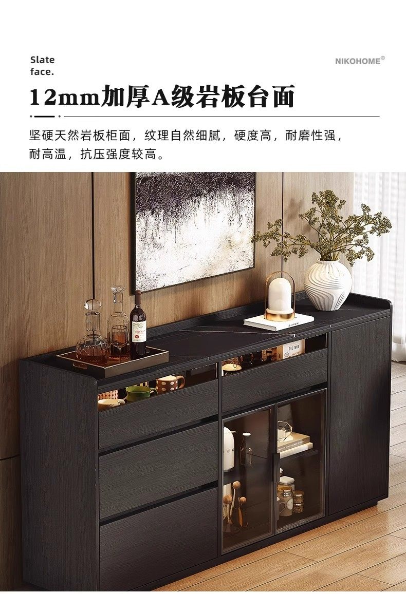 速派岩板餐边柜靠墙一体落地柜简约轻奢置物架客厅厨房边柜茶水柜 【轻奢黑+黑金岩板】120*40*87【包安装】