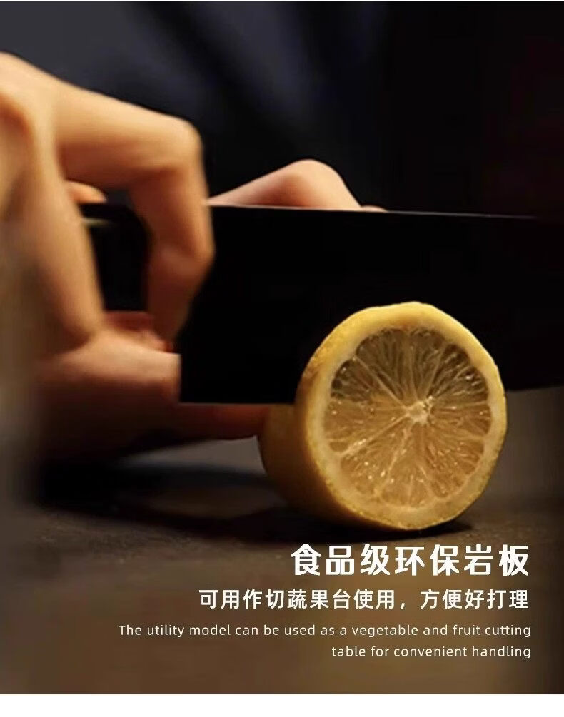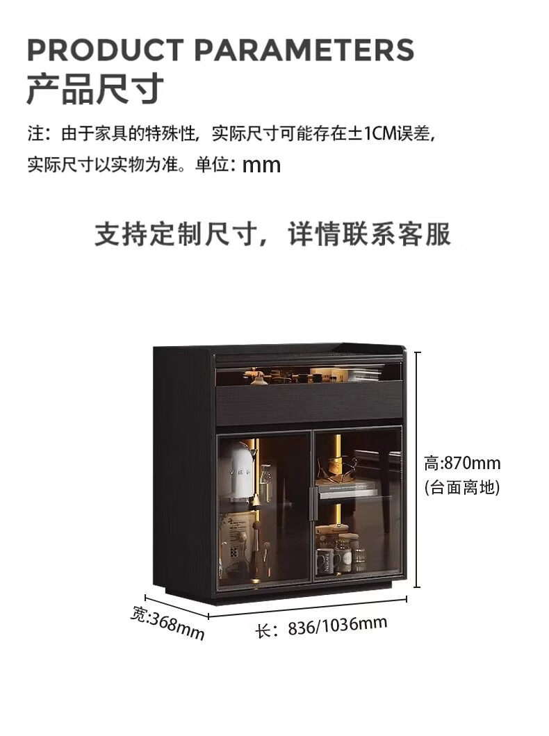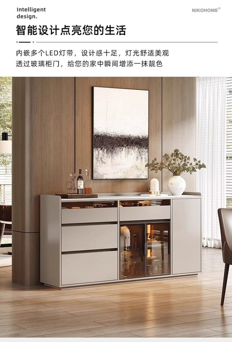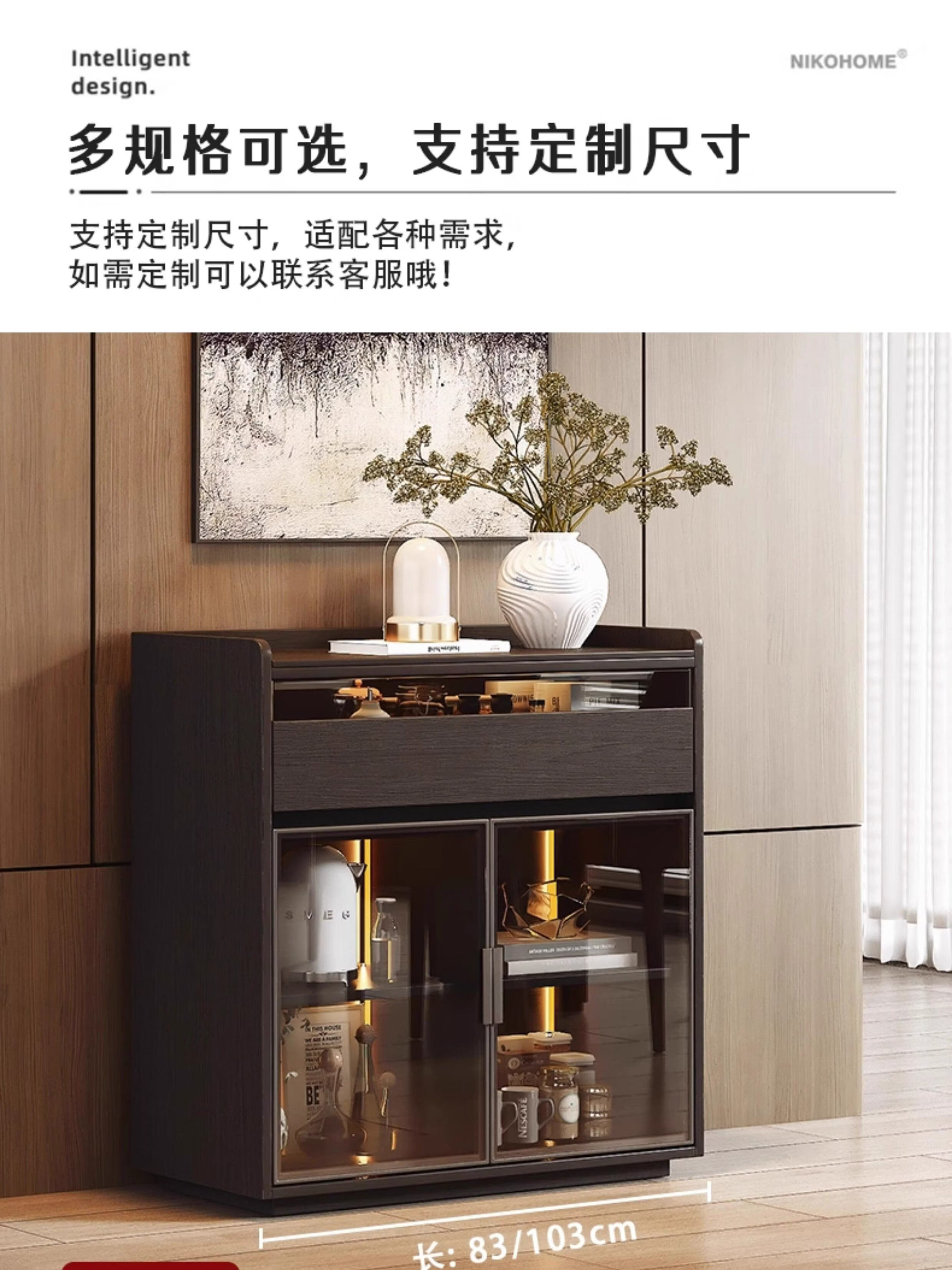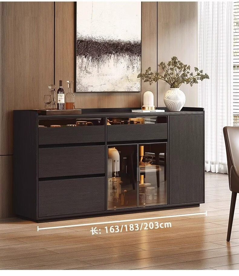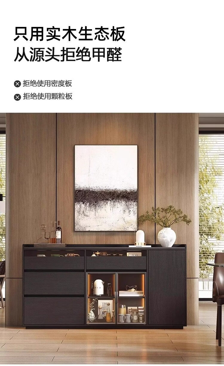 速派岩板餐边柜靠墙一体落地柜简约轻奢置物架客厅厨房边柜茶水柜 【轻奢黑+黑金岩板】120*40*87【包安装】
