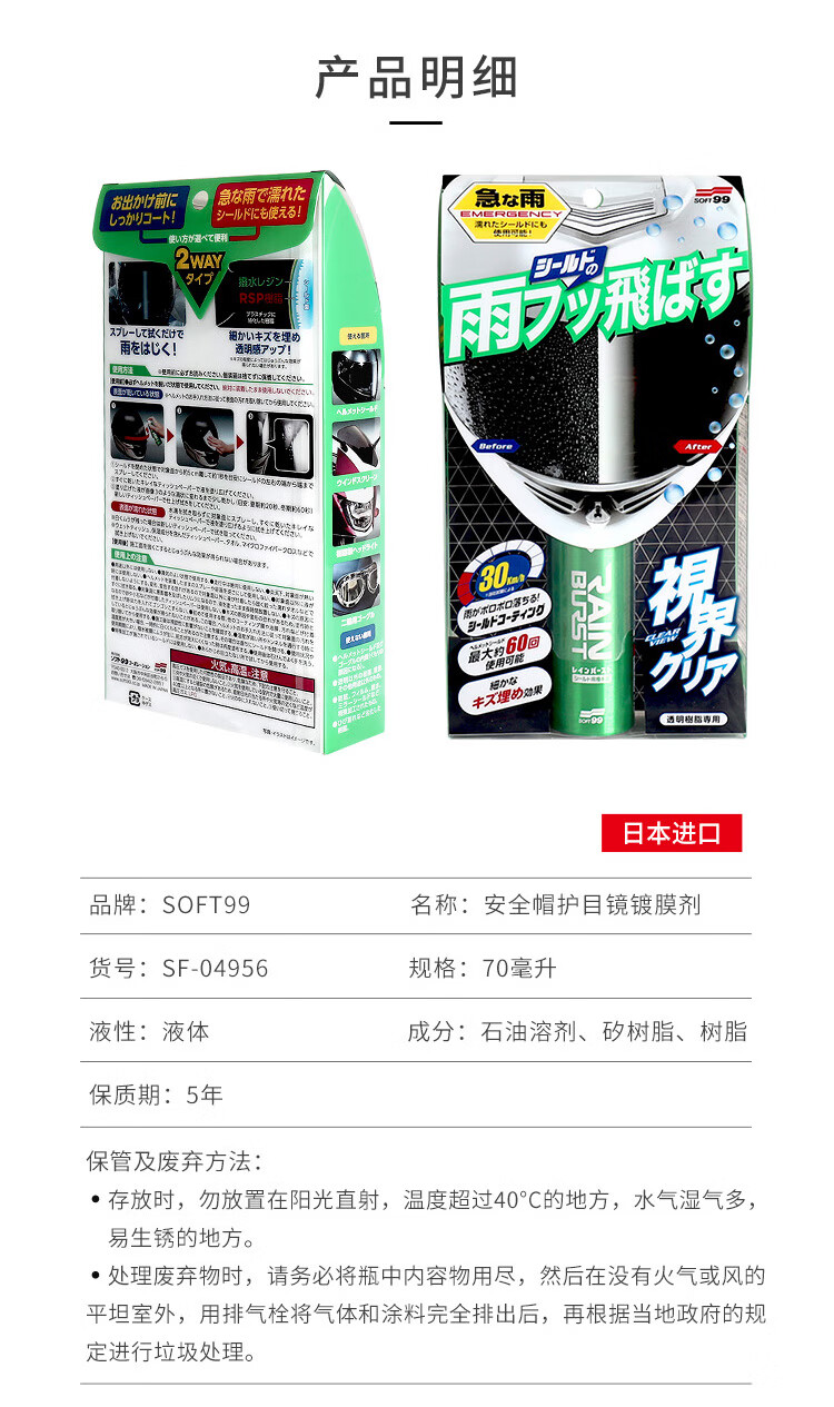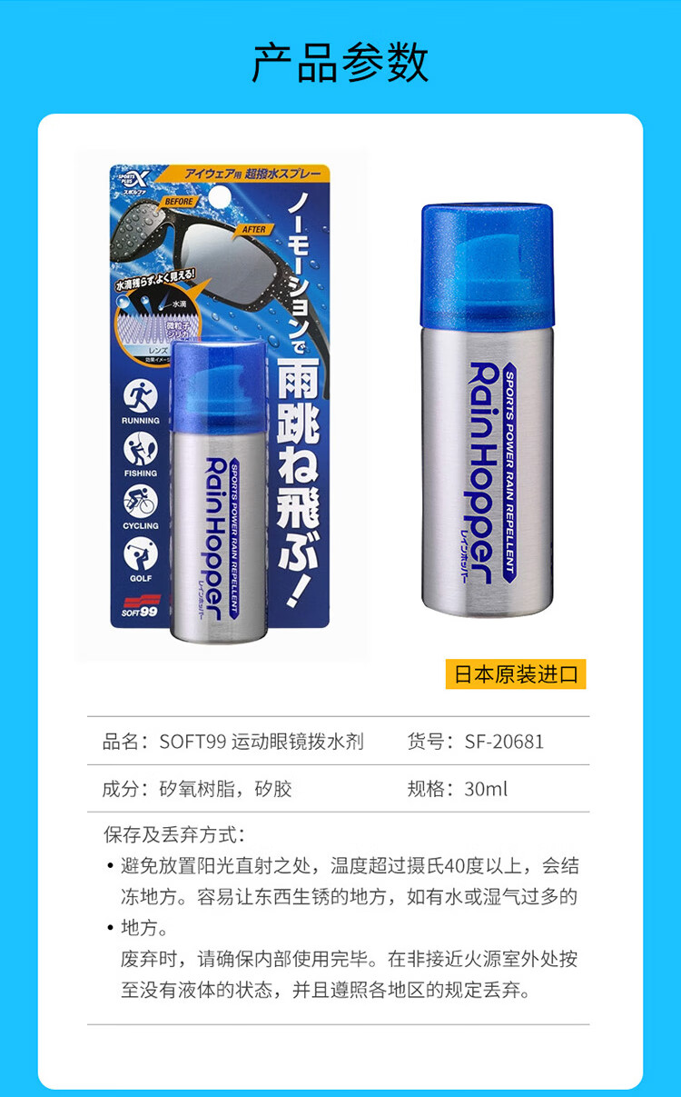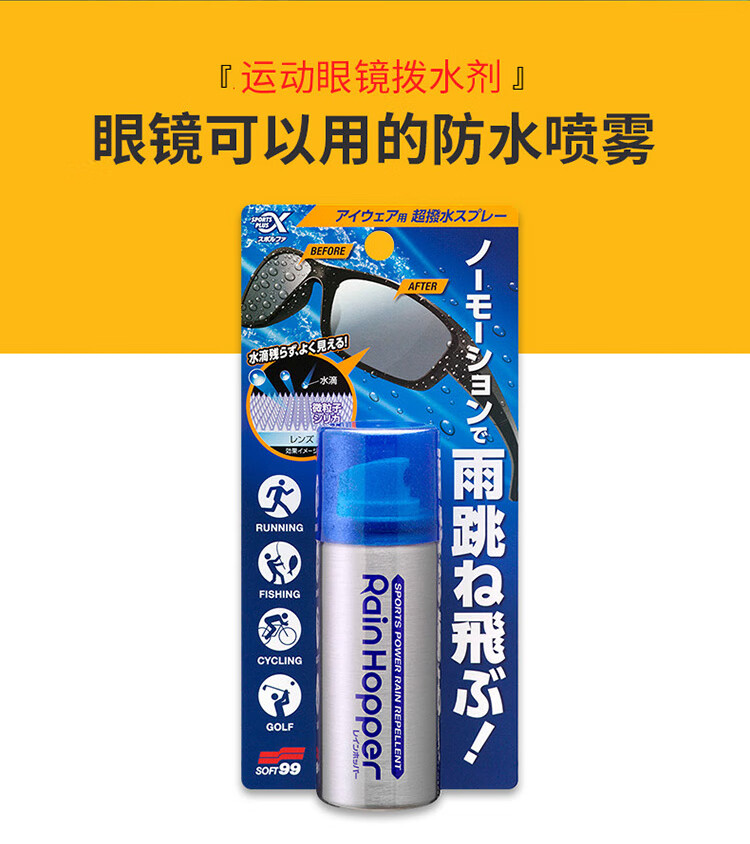 SOFT99原装进口眼镜防雨剂镀膜驱水剂 骑行太阳镜跑步墨镜运动眼镜雨敌 护目镜头盔挡风喷雾防雨防雾剂