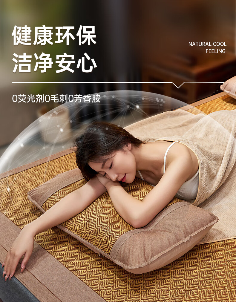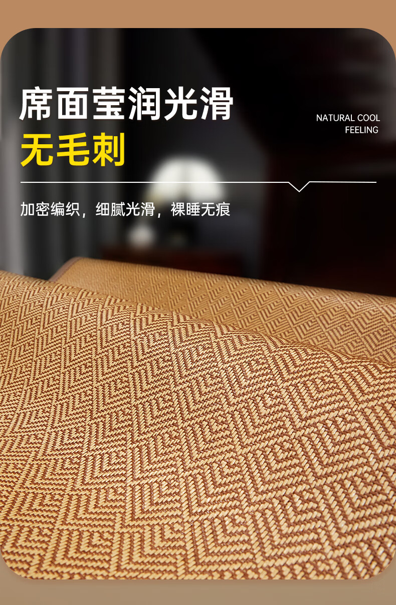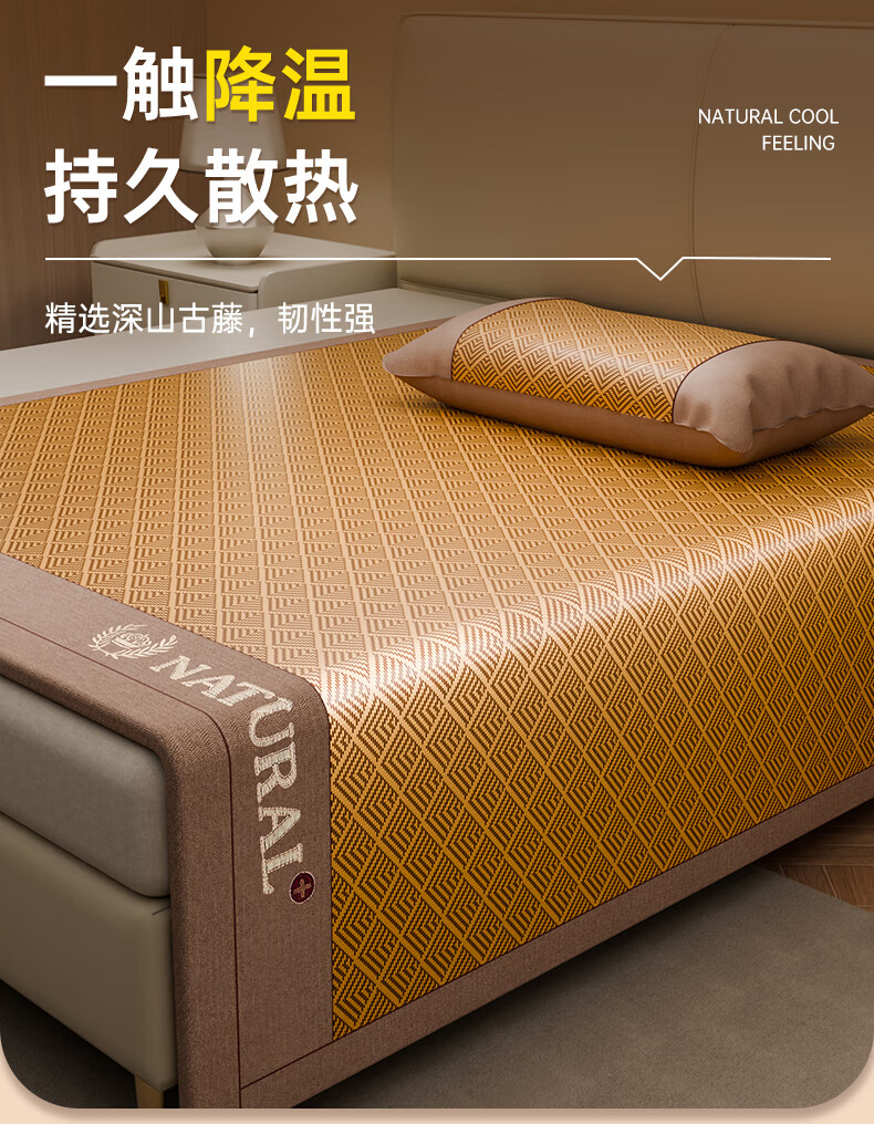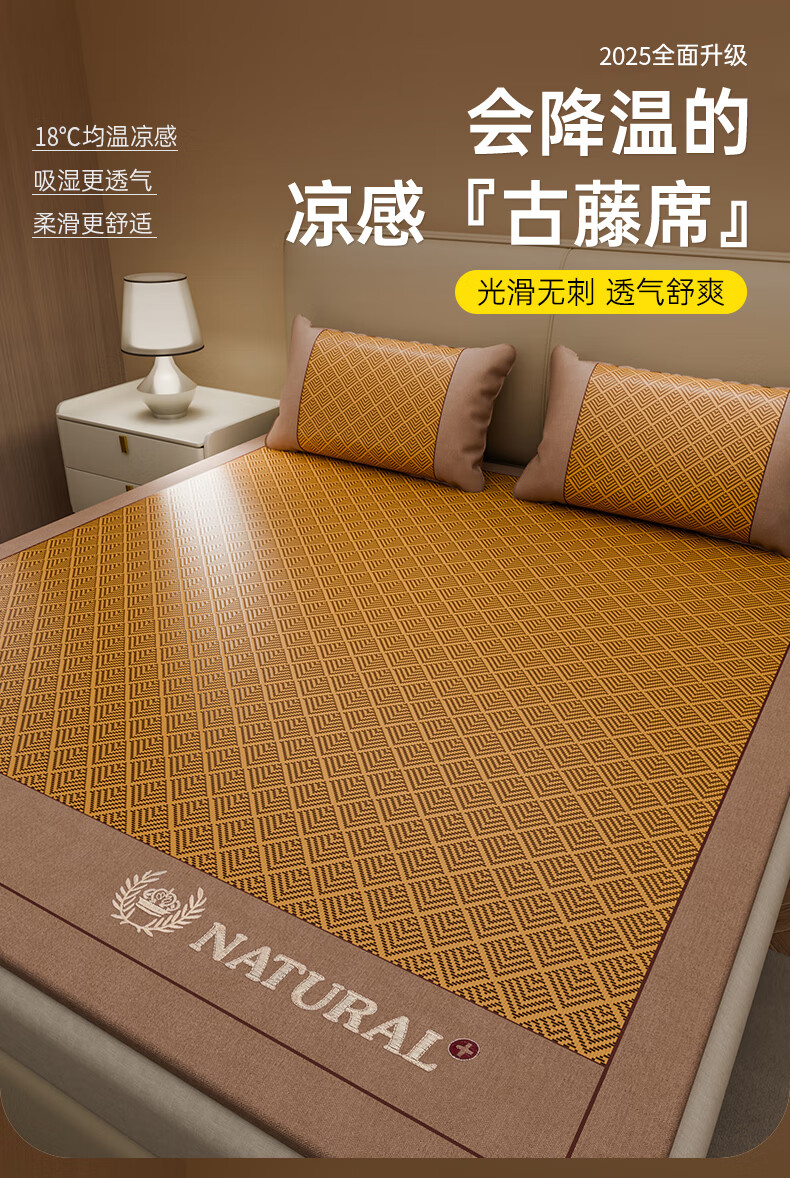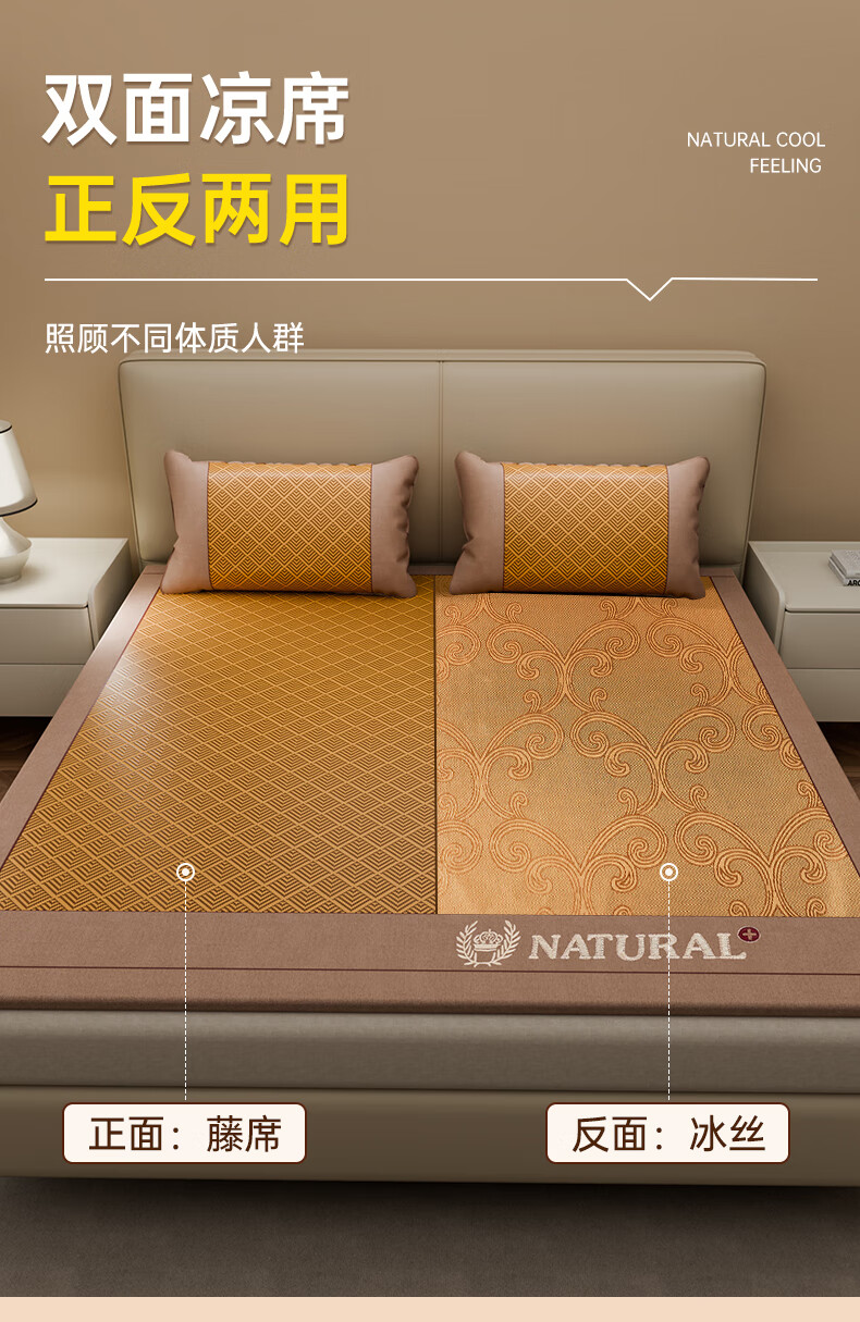 席师傅雅致凉席1.8x2米藤席双人三件套冰丝席子【可折叠 双面可用】