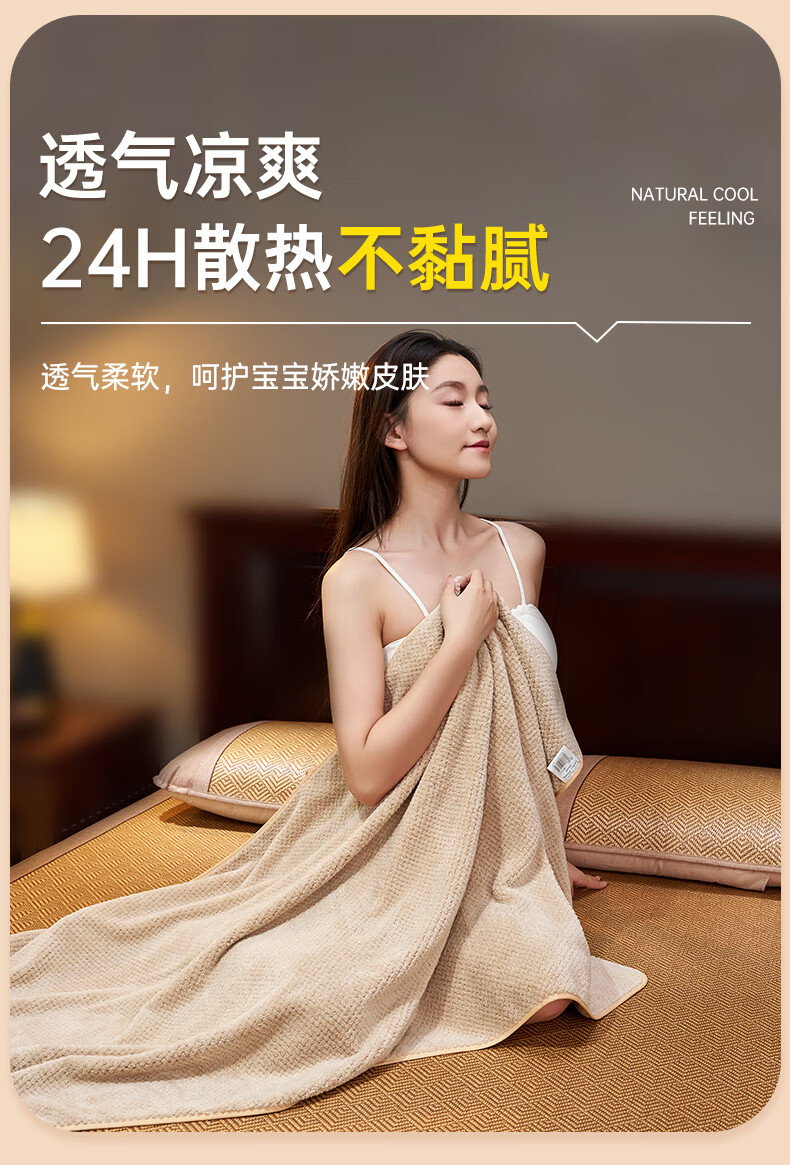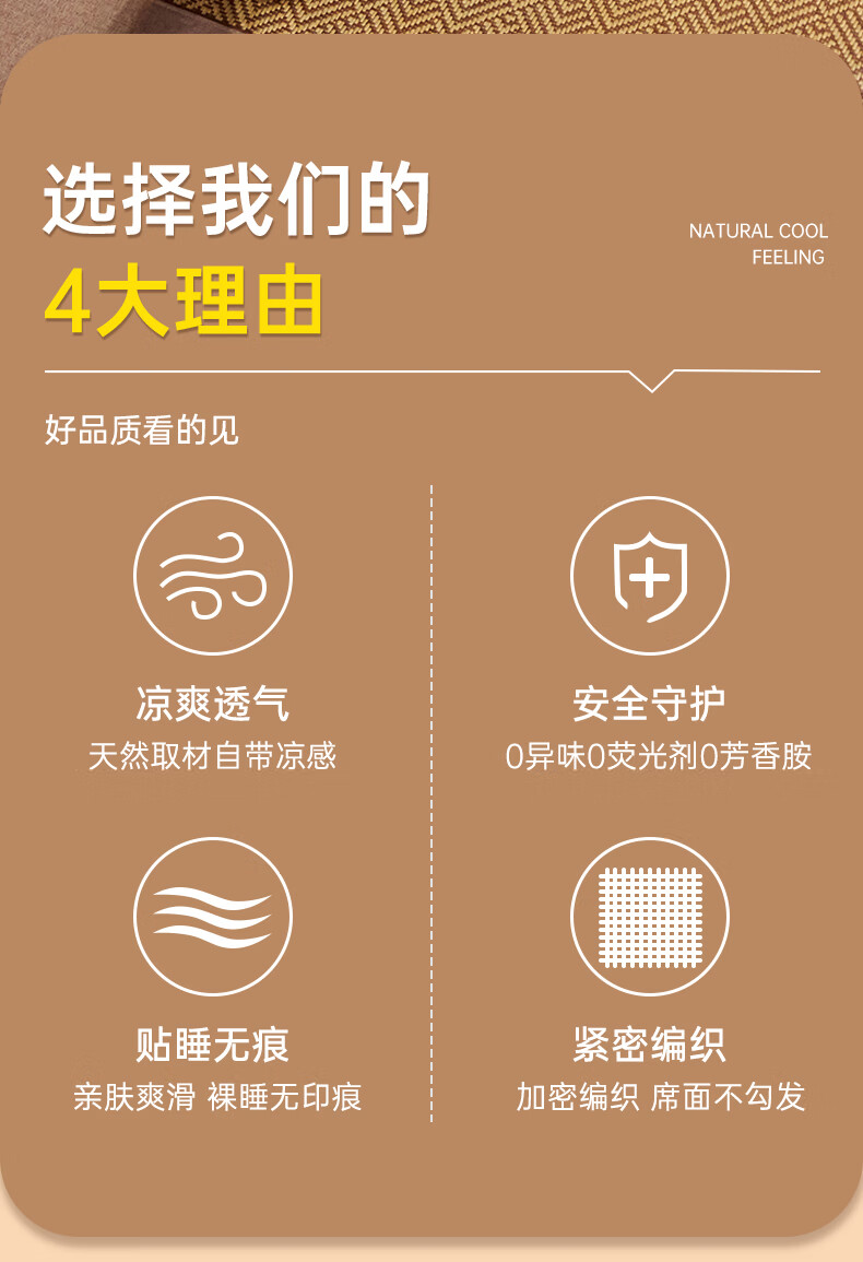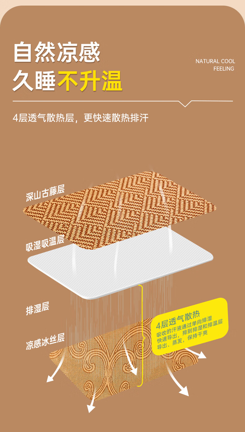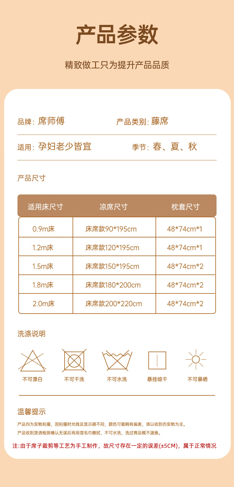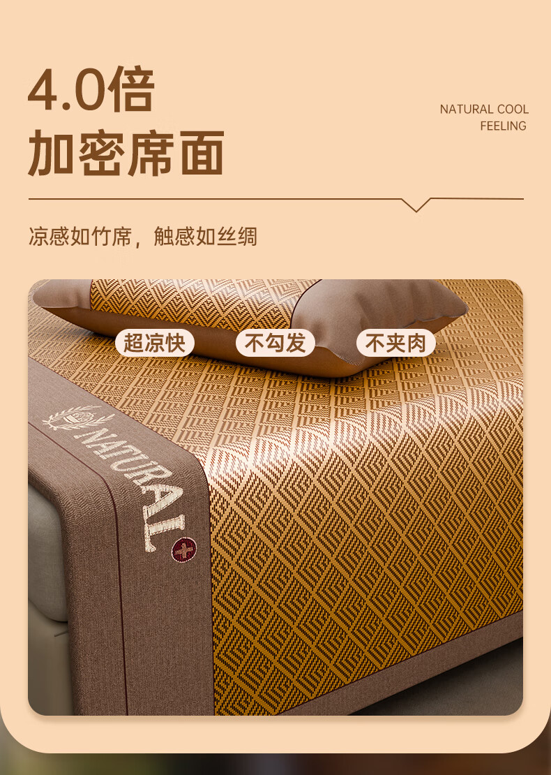 席师傅雅致凉席1.8x2米藤席双人三件套冰丝席子【可折叠 双面可用】